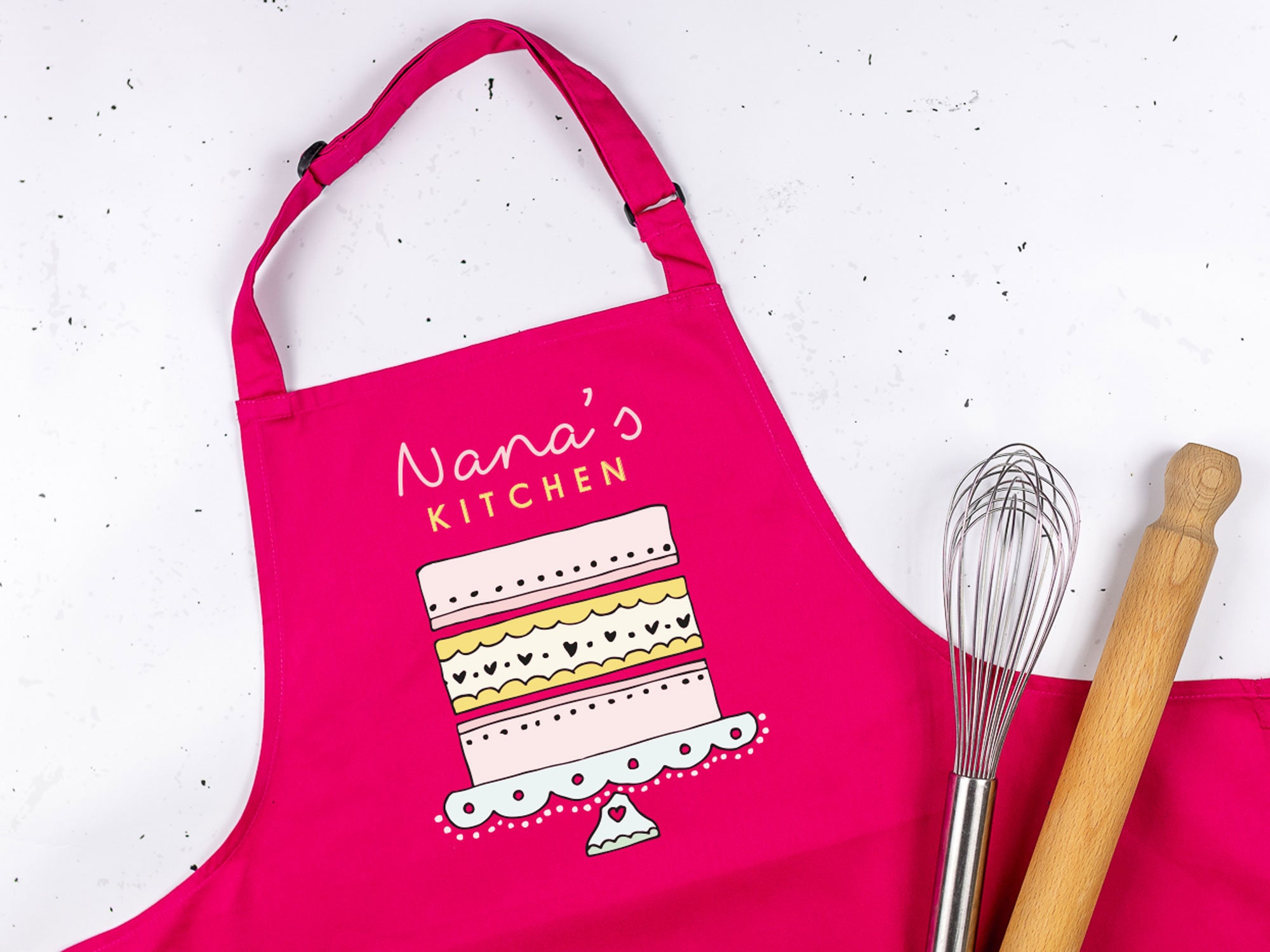 There are a number of name options to choose from, however, the apron can be personalised with a custom name. Simply select the 'Custom' name option and add your desired name into the personalisation box. Please note that a '' will automatically be added to the name unless requested not to be added.