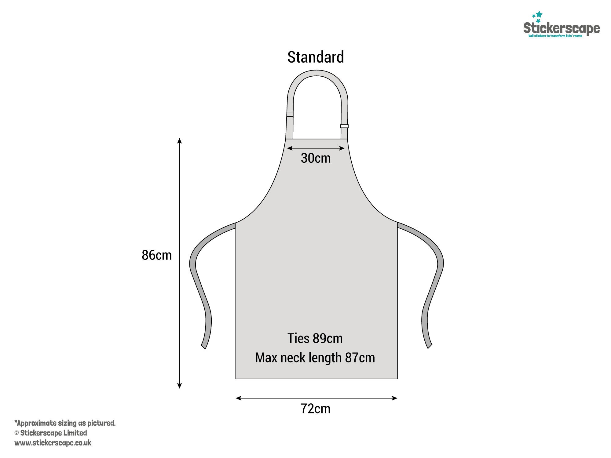This apron is made from high quality, heavyweight polyester/cotton fabric, making it perfect for protecting clothing in the kitchen. It has a sliding adjustable neck clasp to ensure the perfect fit. It is approximately 85cm long and is approximately 30cm wide at the top 'bib' section of the apron and approximately 70cm wide at the bottom section.