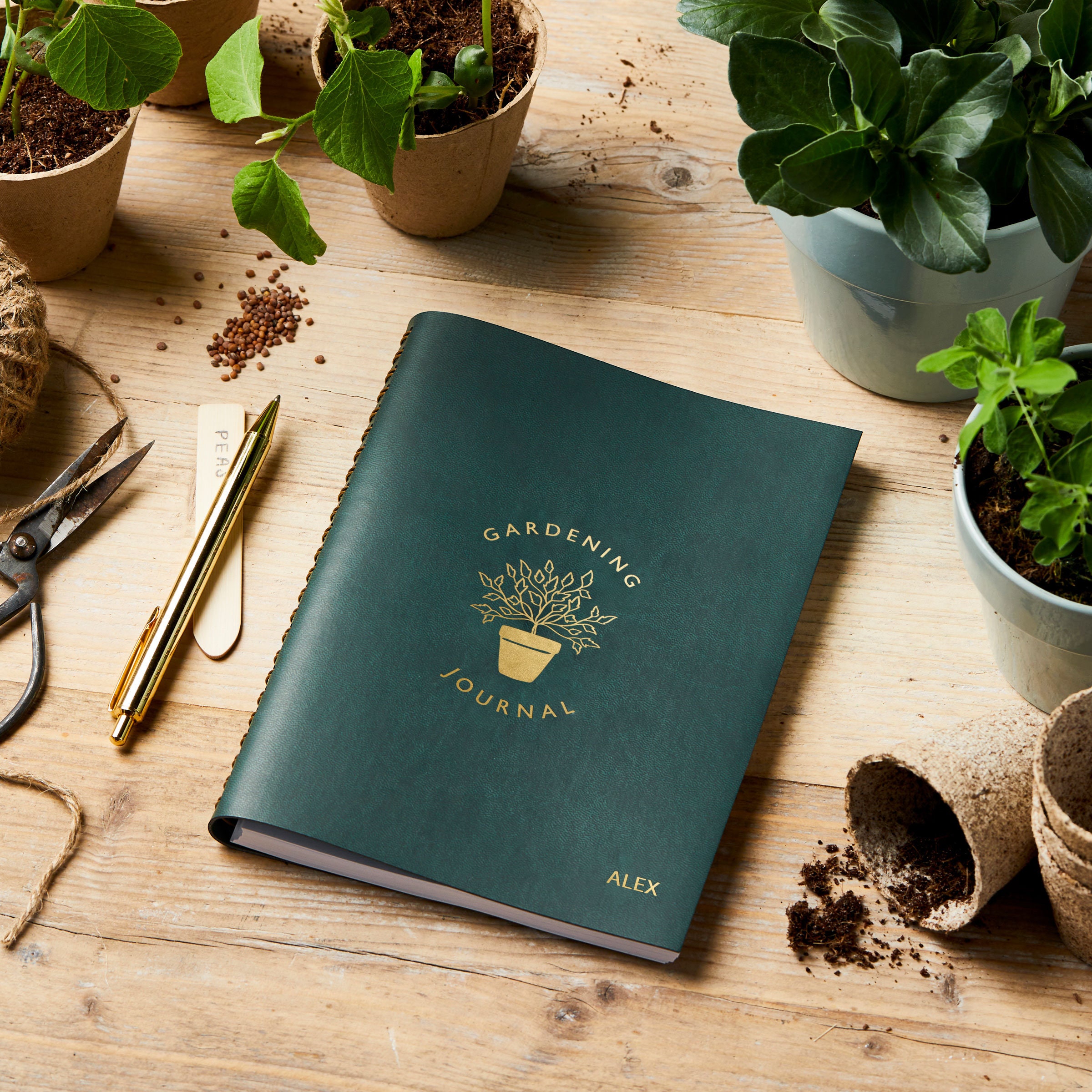 Printed with gold foil and your chosen personalised name on the cover, this leather effect gardening journal features a unique binding that allows it to lay flat while you wander the garden, and will keep your gardening notes safe and secure for years to come.