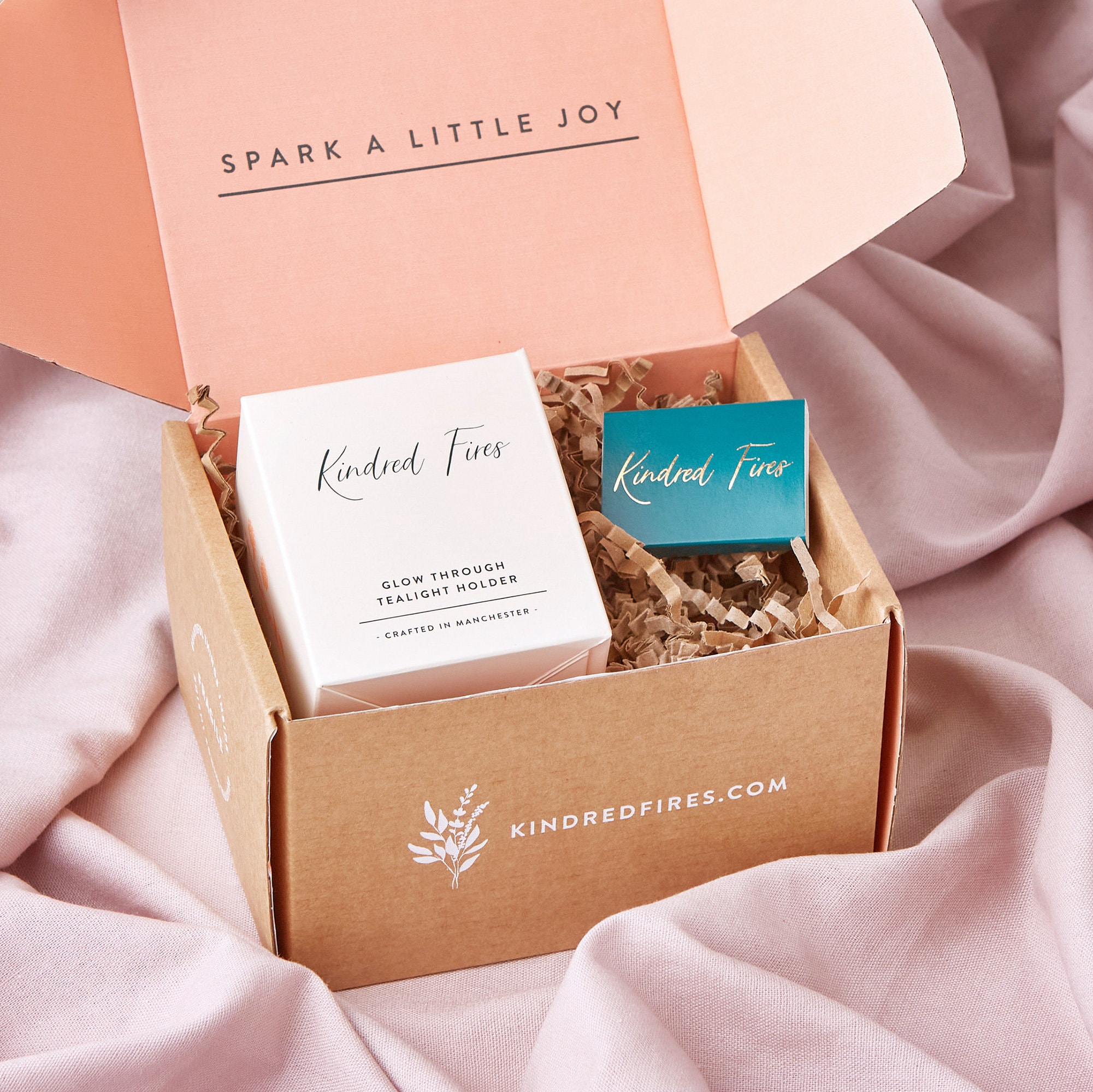 When the candles are lit, the designs glow, creating an enchanting look for the home. The sweet tea light holder and candle serve as a special keepsake and come in a display box. Give a set of 4 soy wax, vegan friendly tea lights in a gift box.