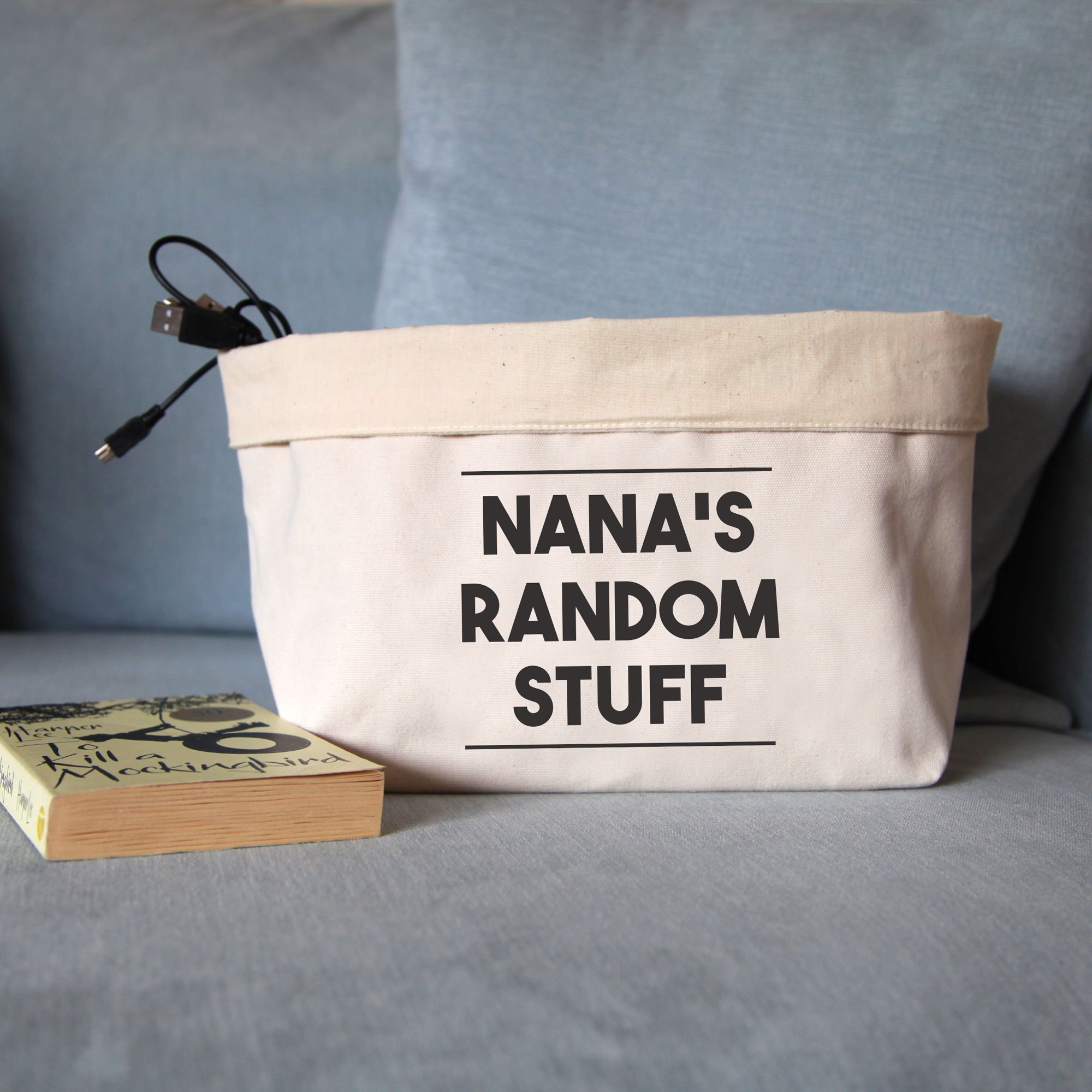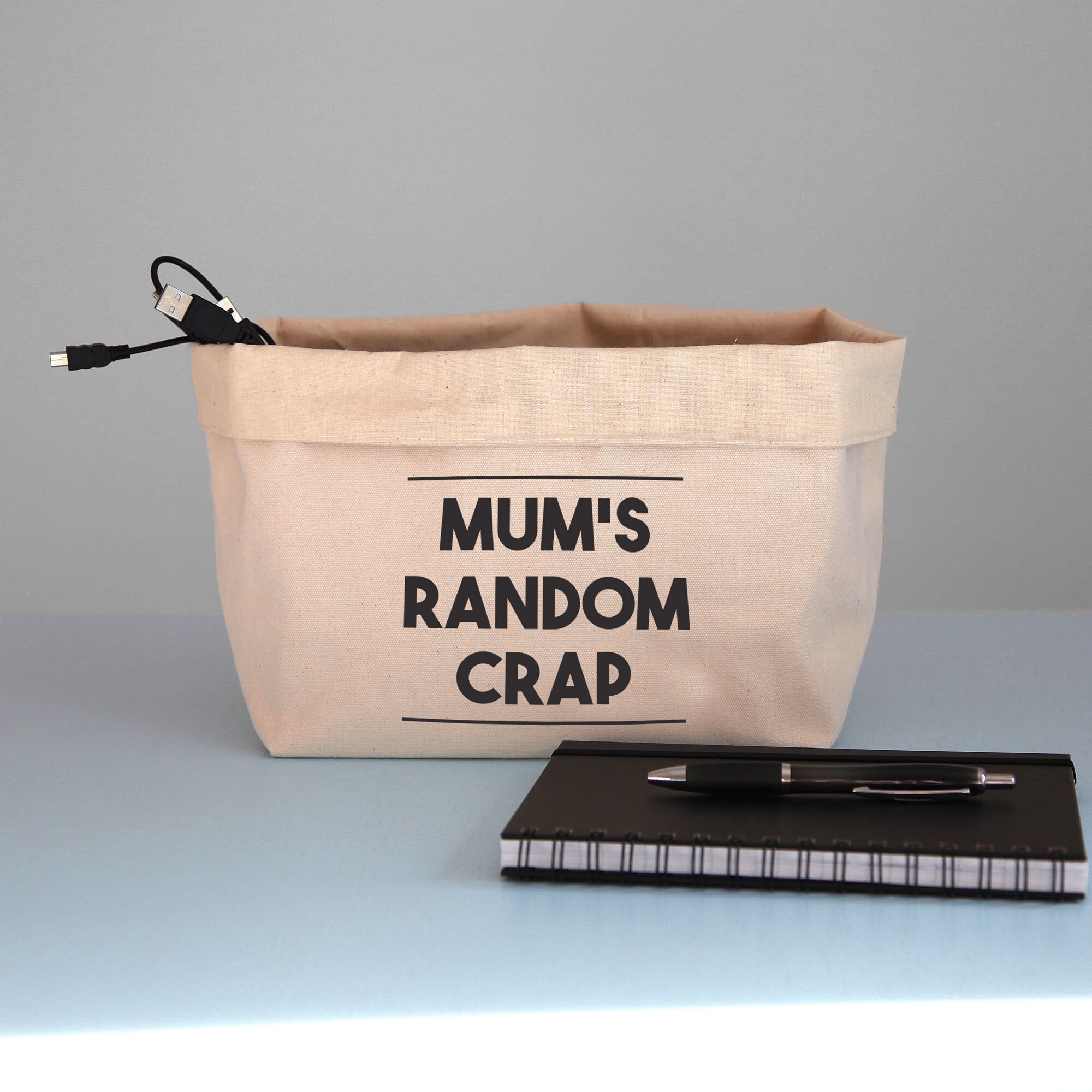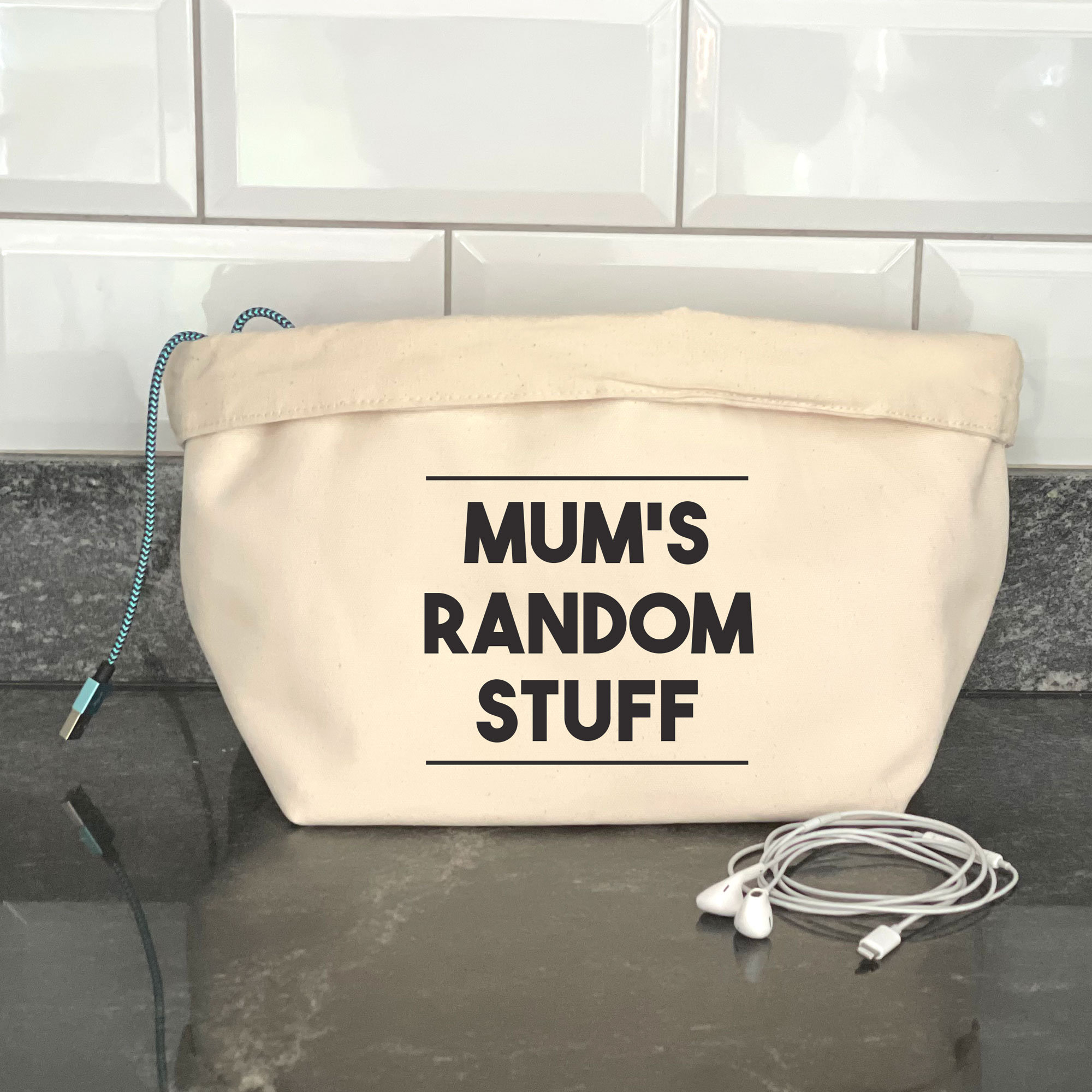 Personalised storage bag organiser. This organiser is perfect to keep any important things that just don't seem to have a place - from chargers and cables to batteries, pens or even craft supplies for any ongoing projects. The organiser makes a perfect gift for her for birthdays, Mother's Day or Christmas. This design can be personalised, making it that extra special gift, simply enter the name that you would like in the text box above and this will be added for you. You can also choose for the text to read 'random crap' or 'random stuff' - just select your choice from the dropdown above.