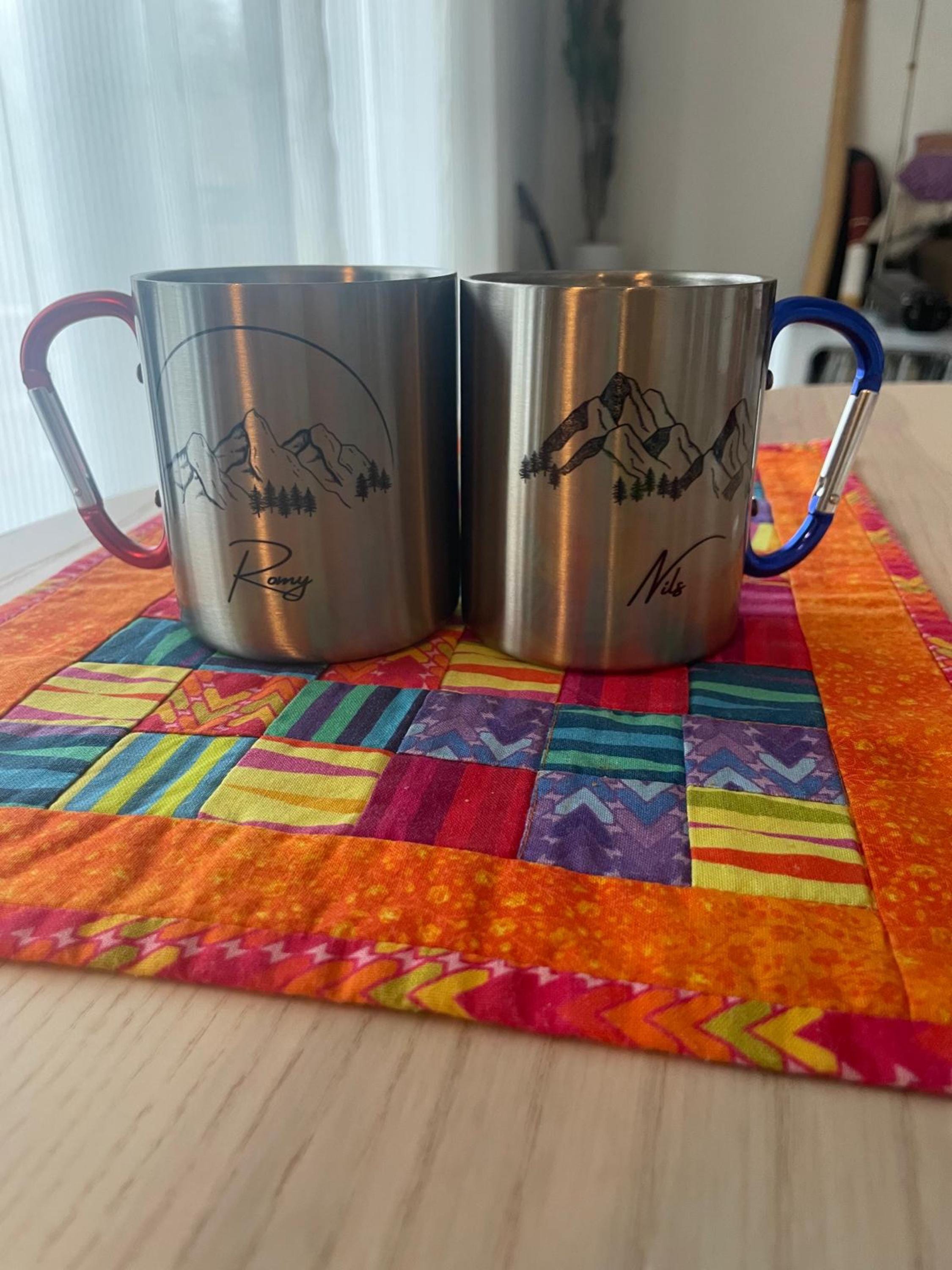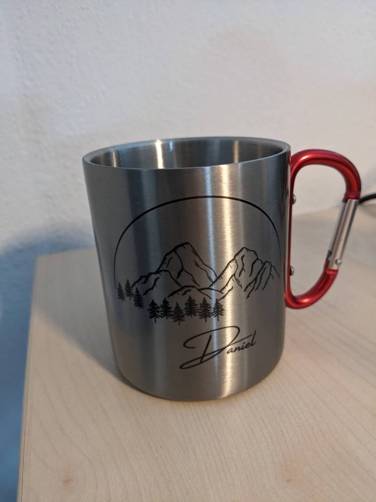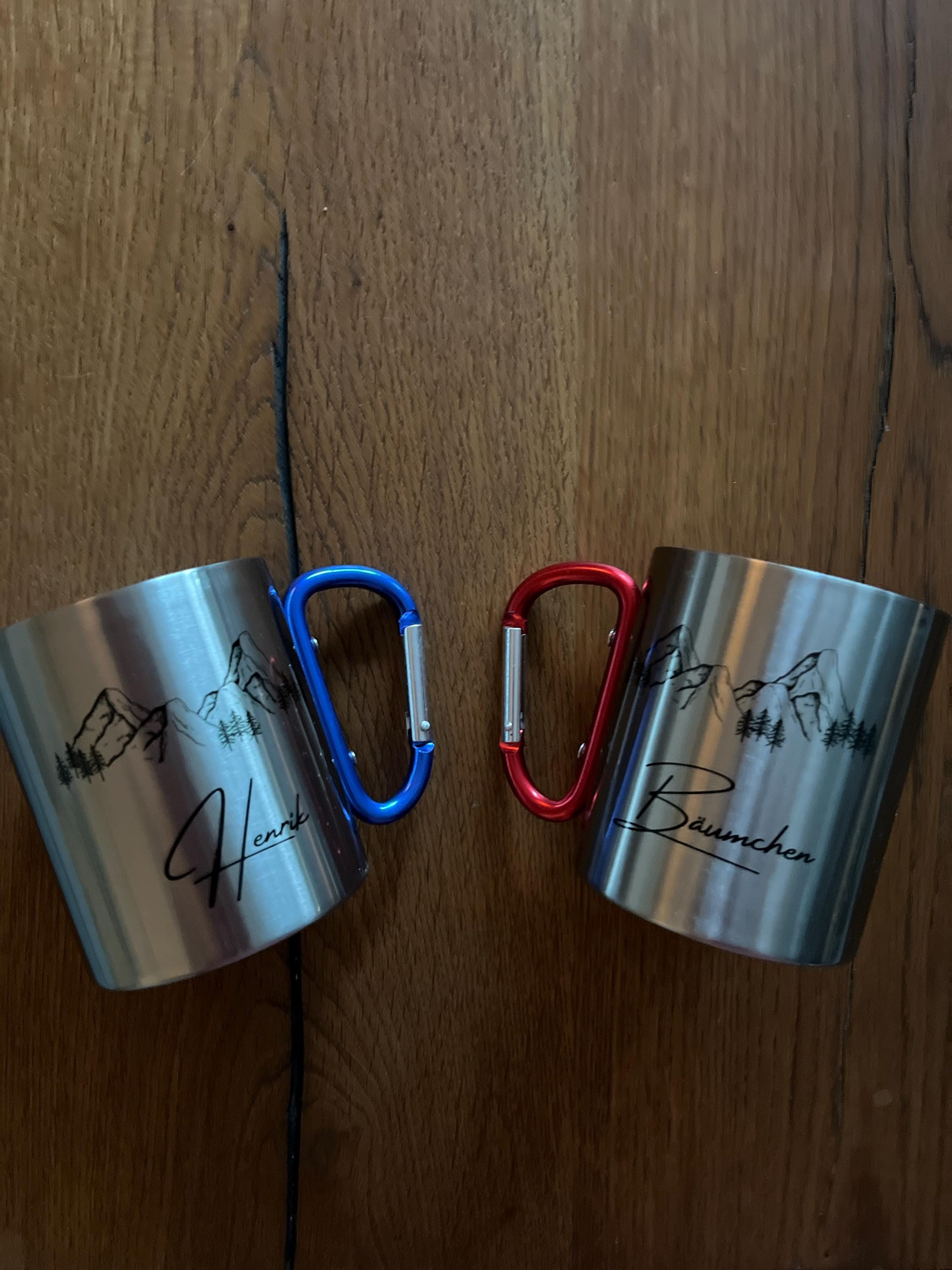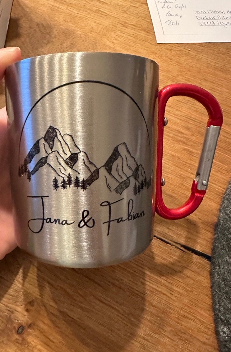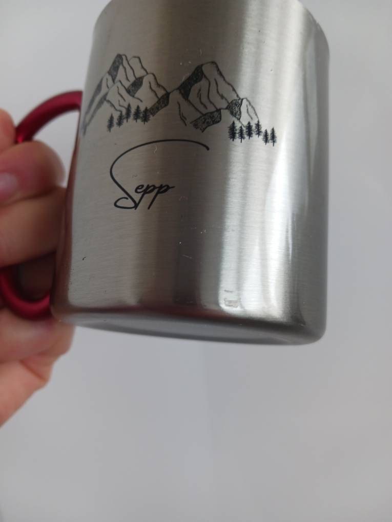 Personalizable mug (short text or name) - stainless steel mug or enamel mug