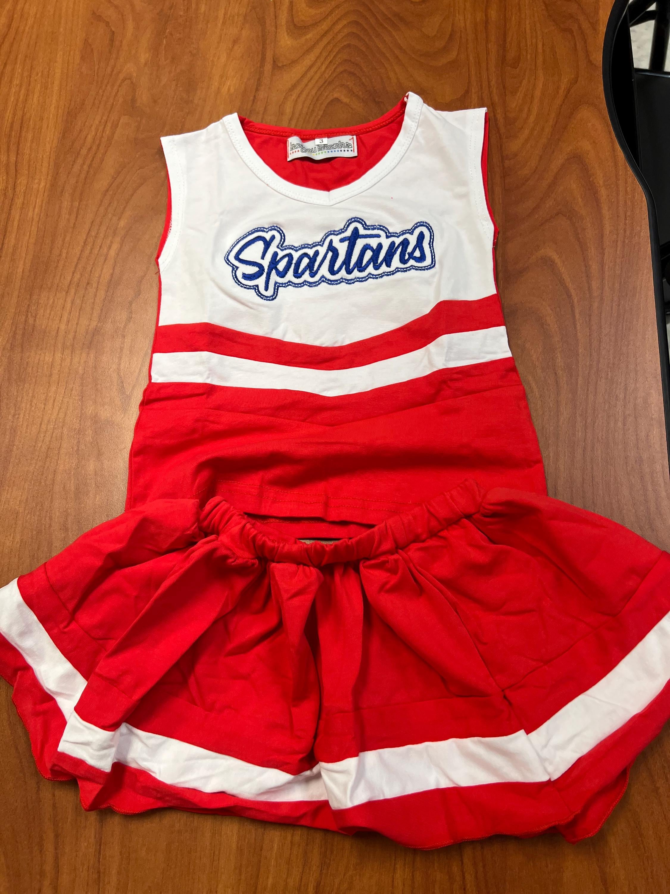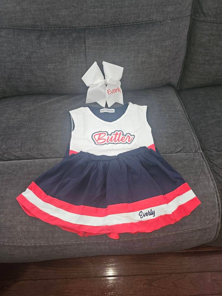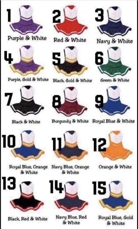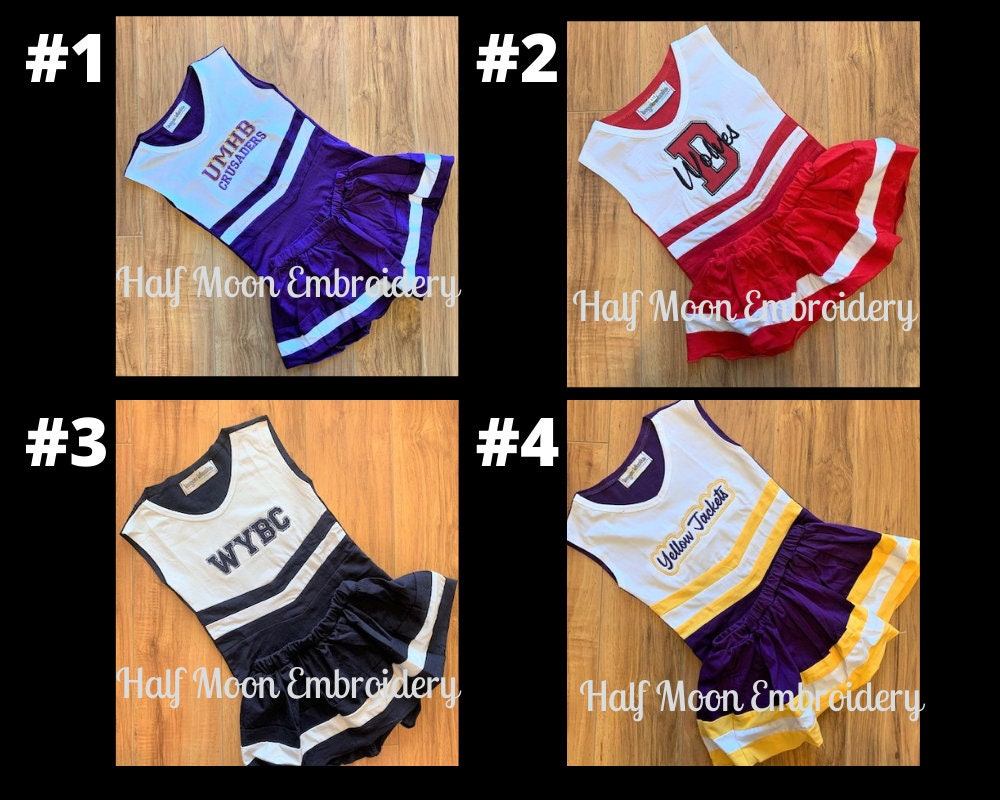 1. These adorable personalized cheerleading outfits can be embroidered with your team name!
