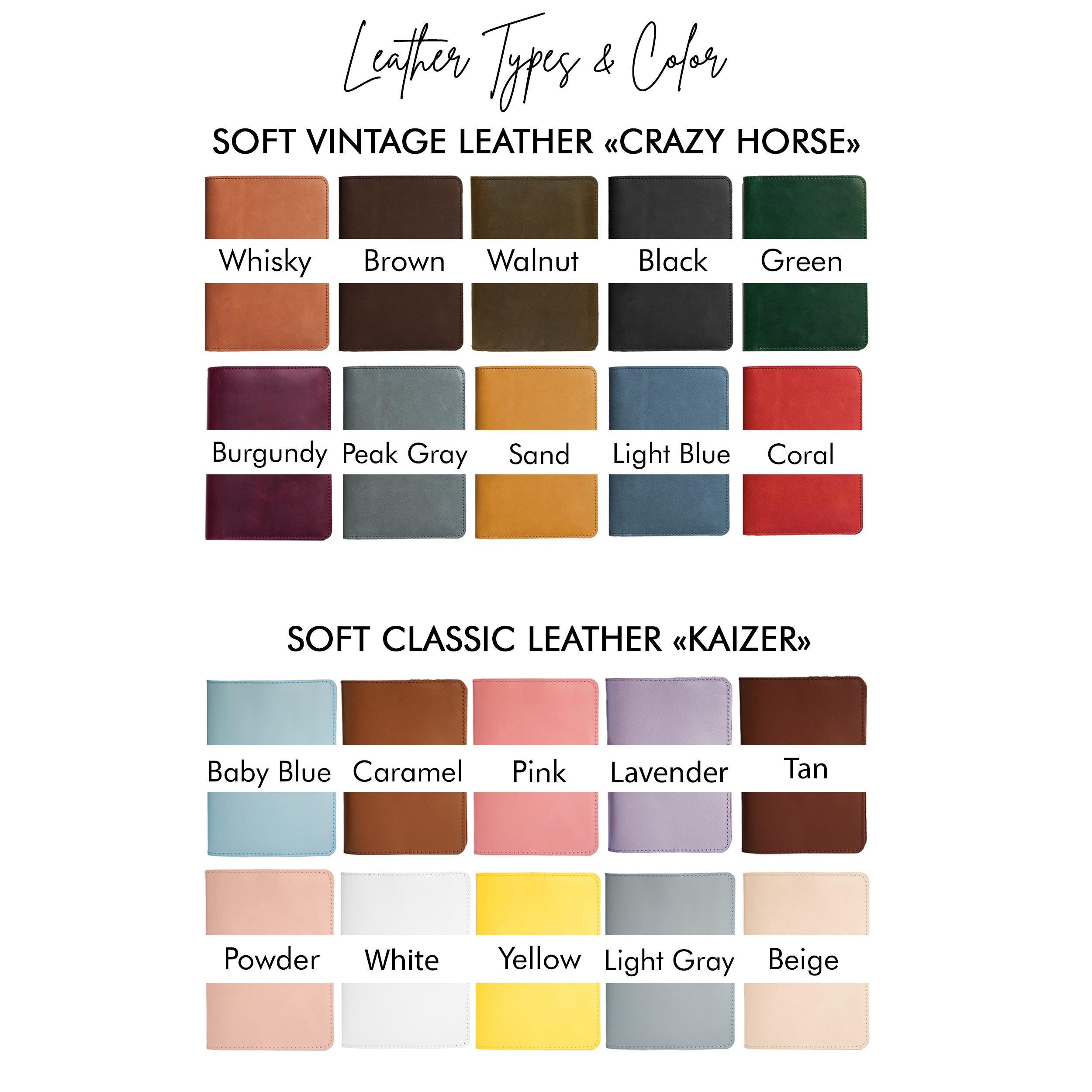 The leather that we use for our items is called "Crazy Horse". Its main feature is the effect of vintage. This type of leather is highly water-repellent and very strong, at the same time, it is smooth, soft, velvety and very pleasant to the touch.
