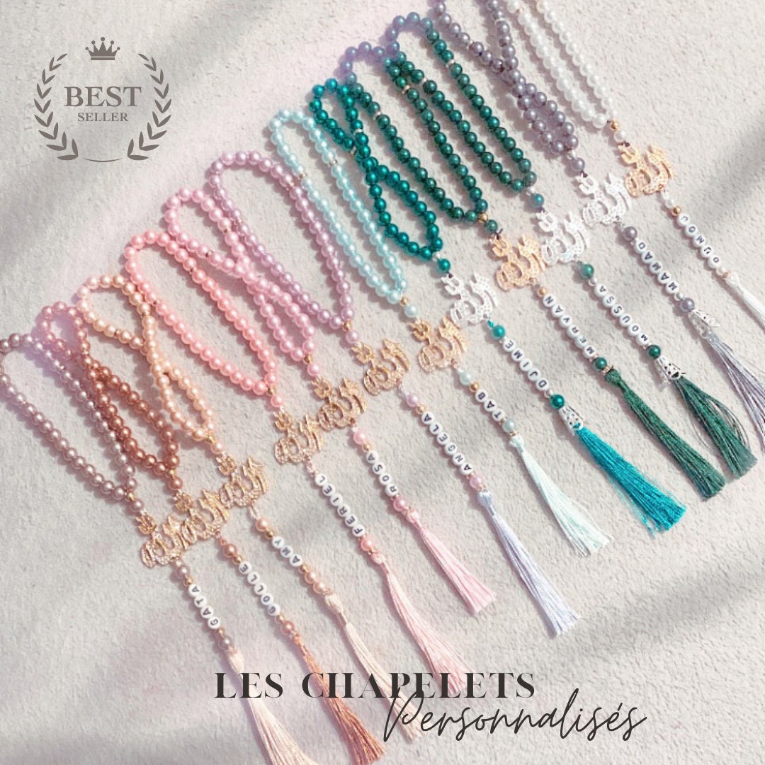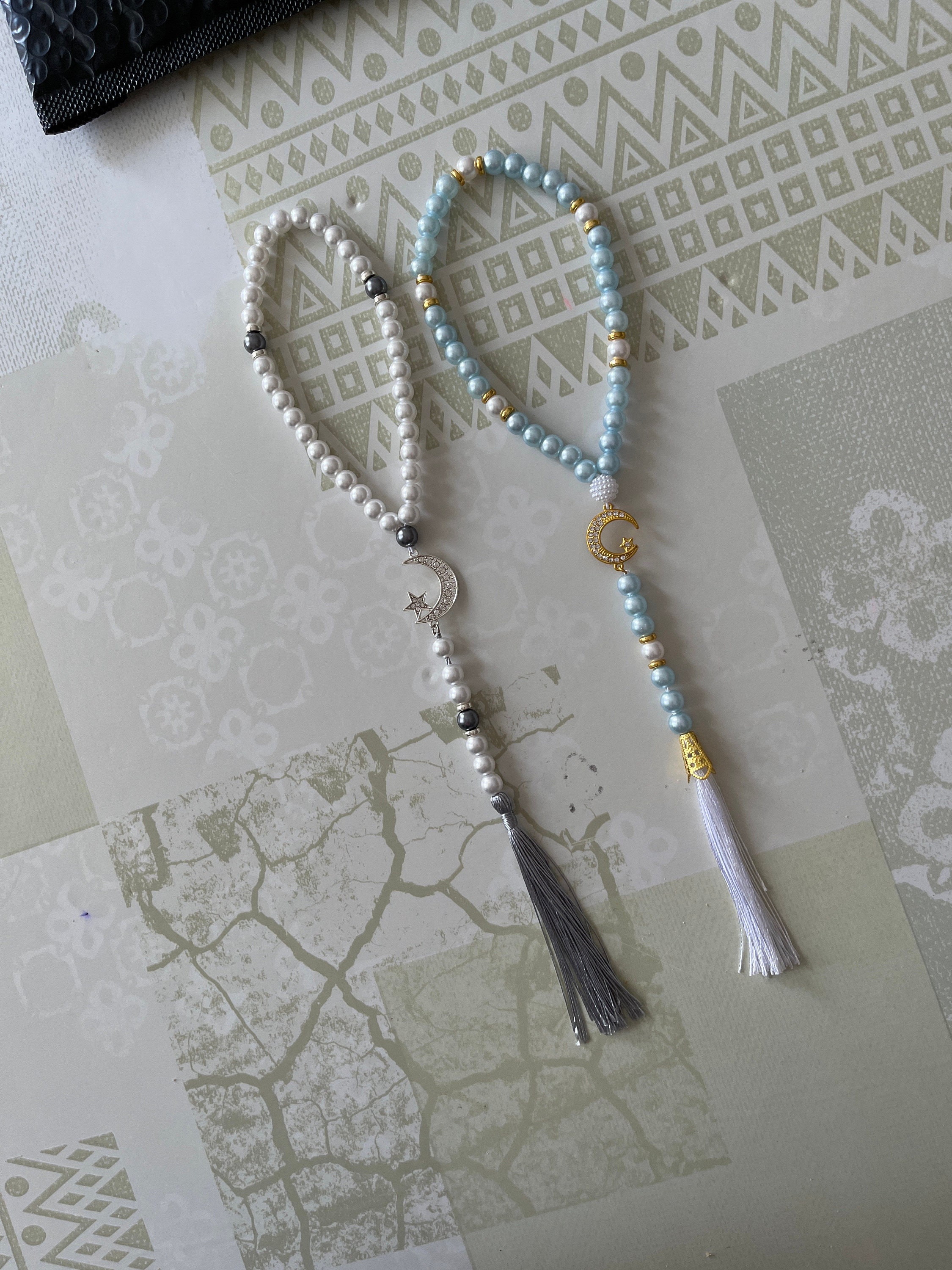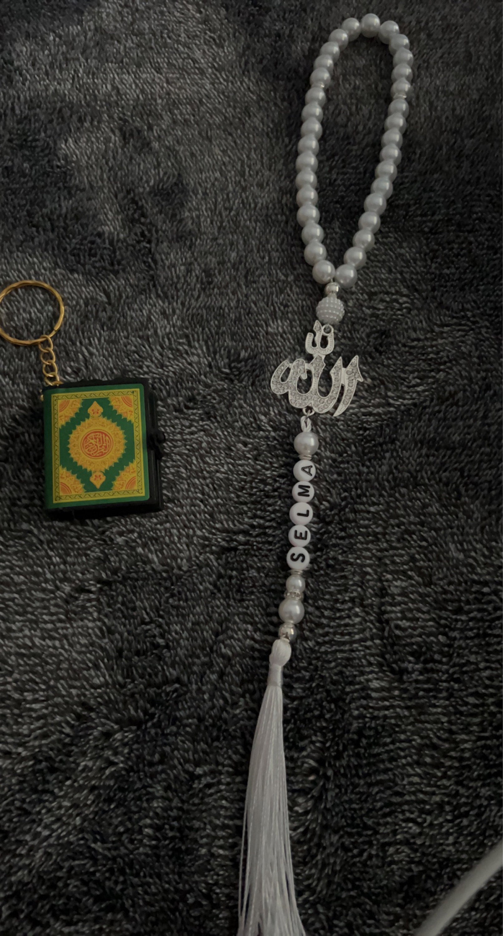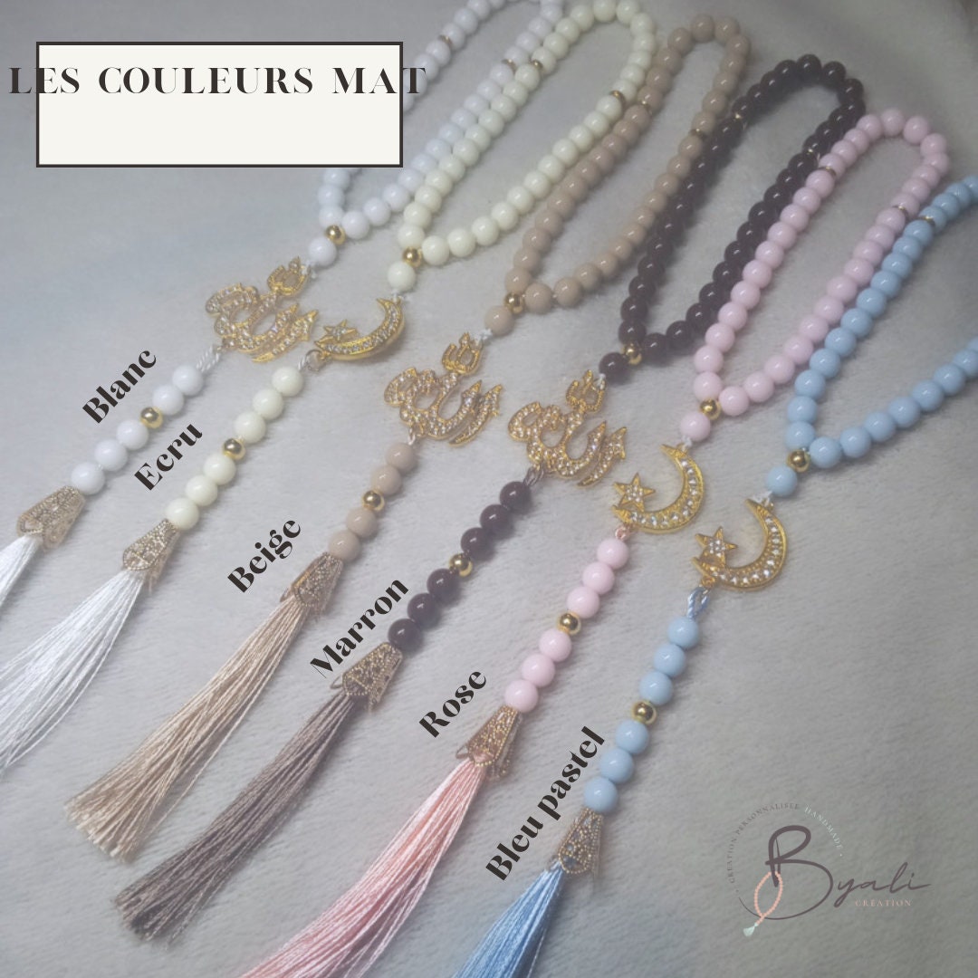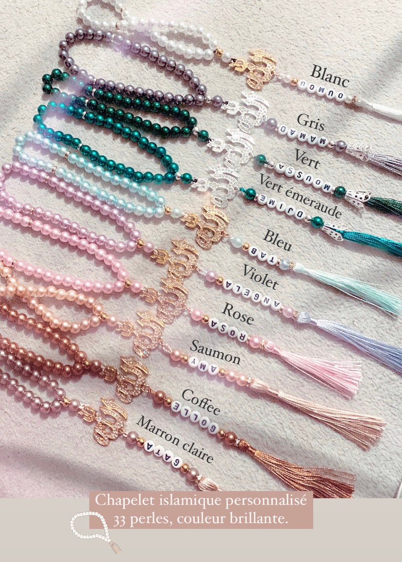 Fully customizable, you can choose the color of the pearls, the style of the pendant (Allah or Moon) and the color (silver or gold).