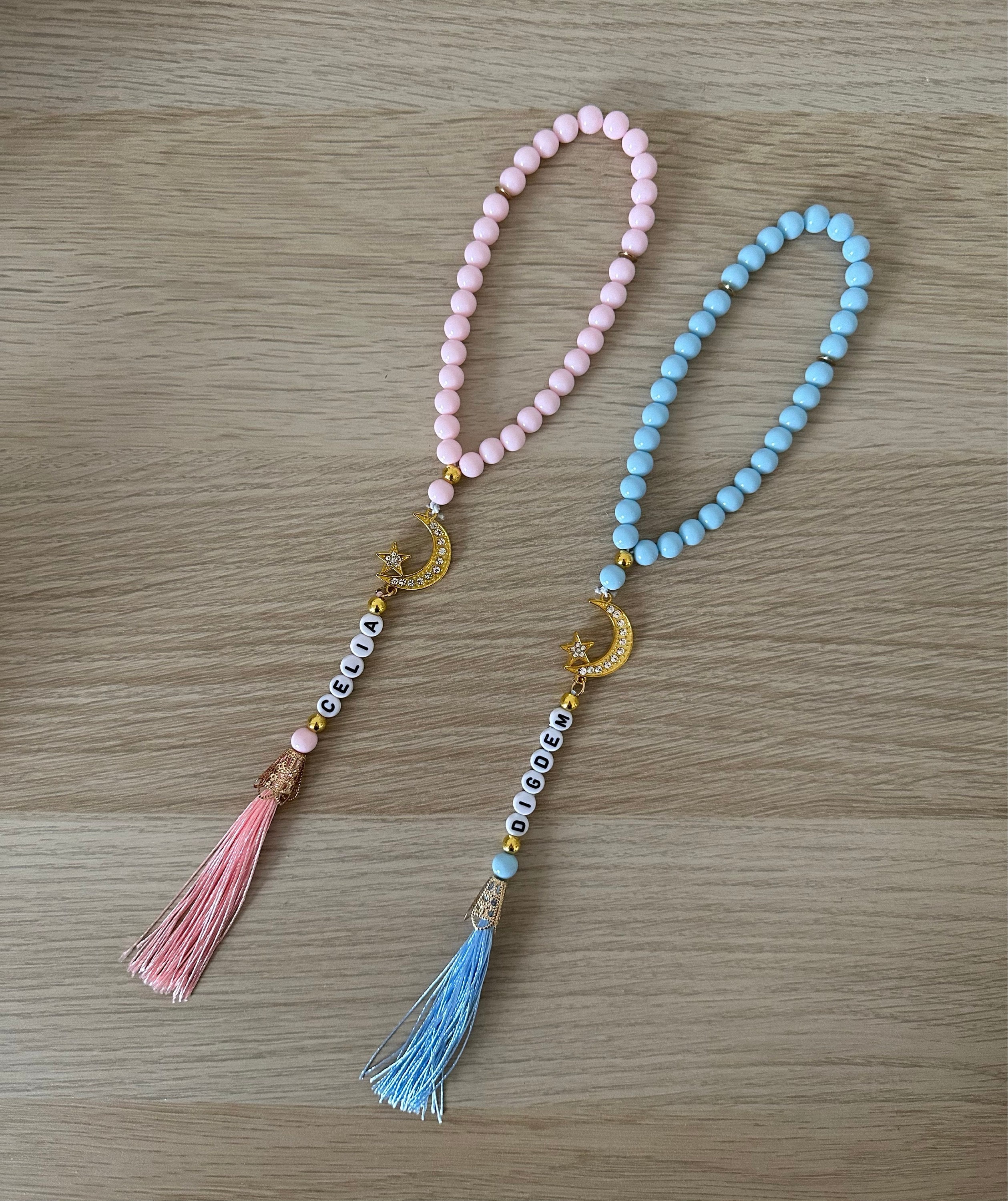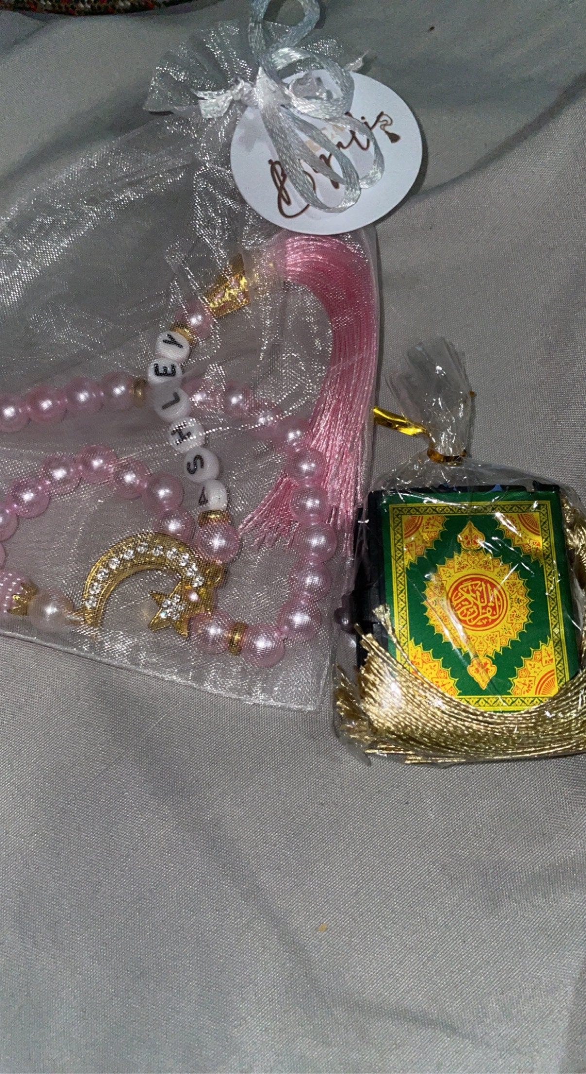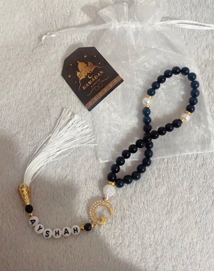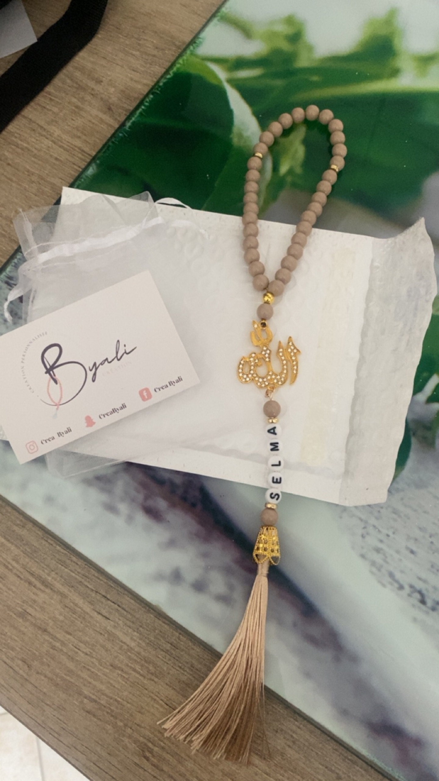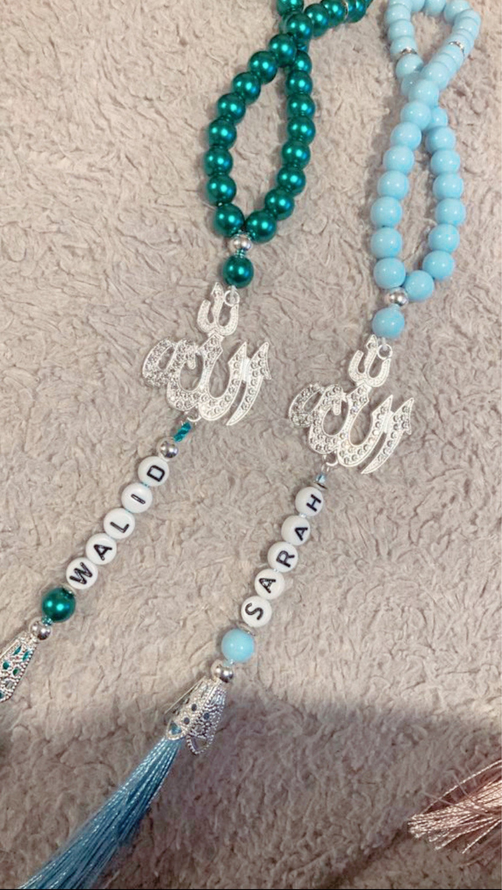 Fully customizable, you can choose the color of the pearls, the style of the pendant (Allah or Moon) and the color (silver or gold).