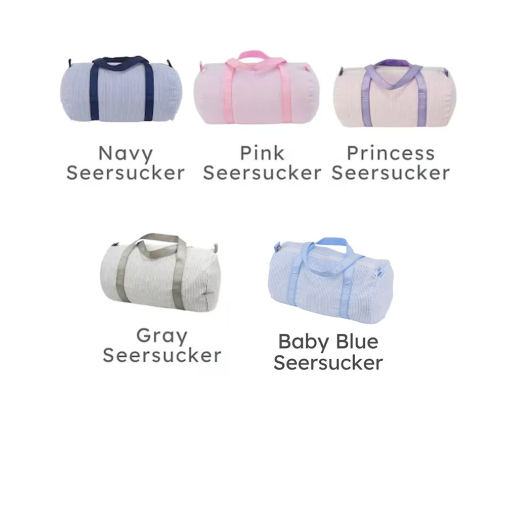 Elevate your child's travel experience with our Personalized Mini Seersucker Duffle Bag. Order now and give the gift of style, personalization, and adventure!