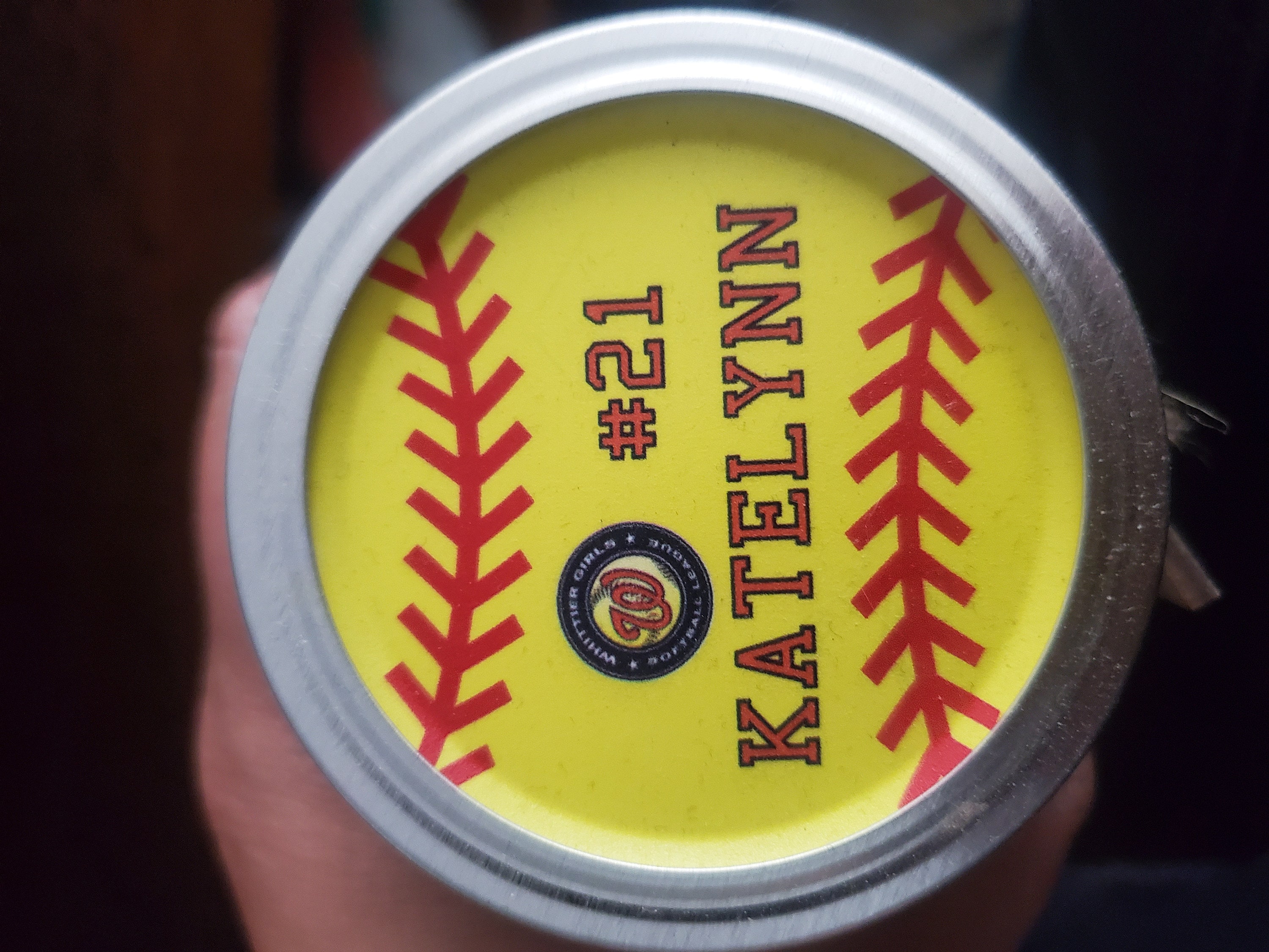 * Personalized Softball Printed Directly On Lid
