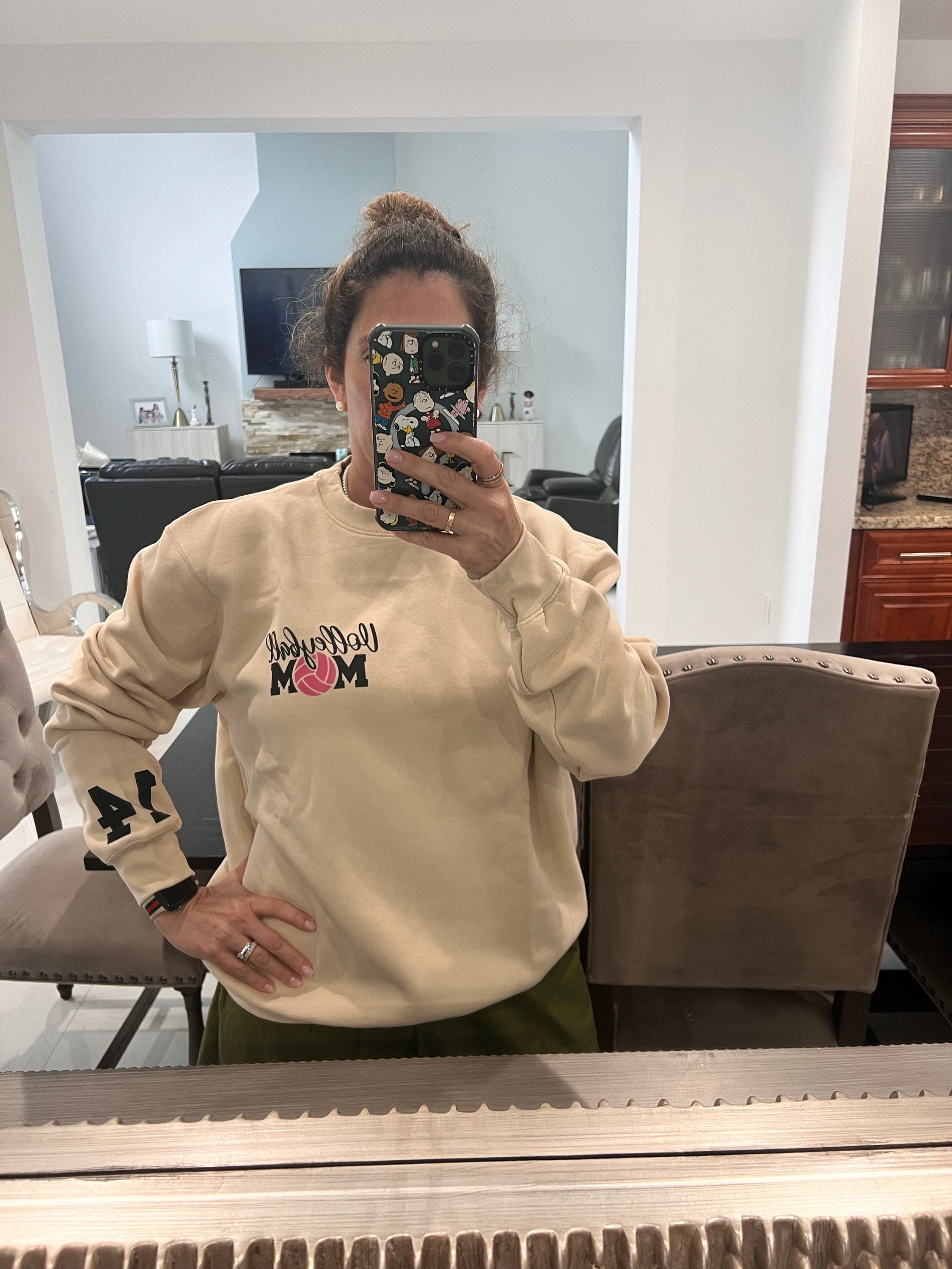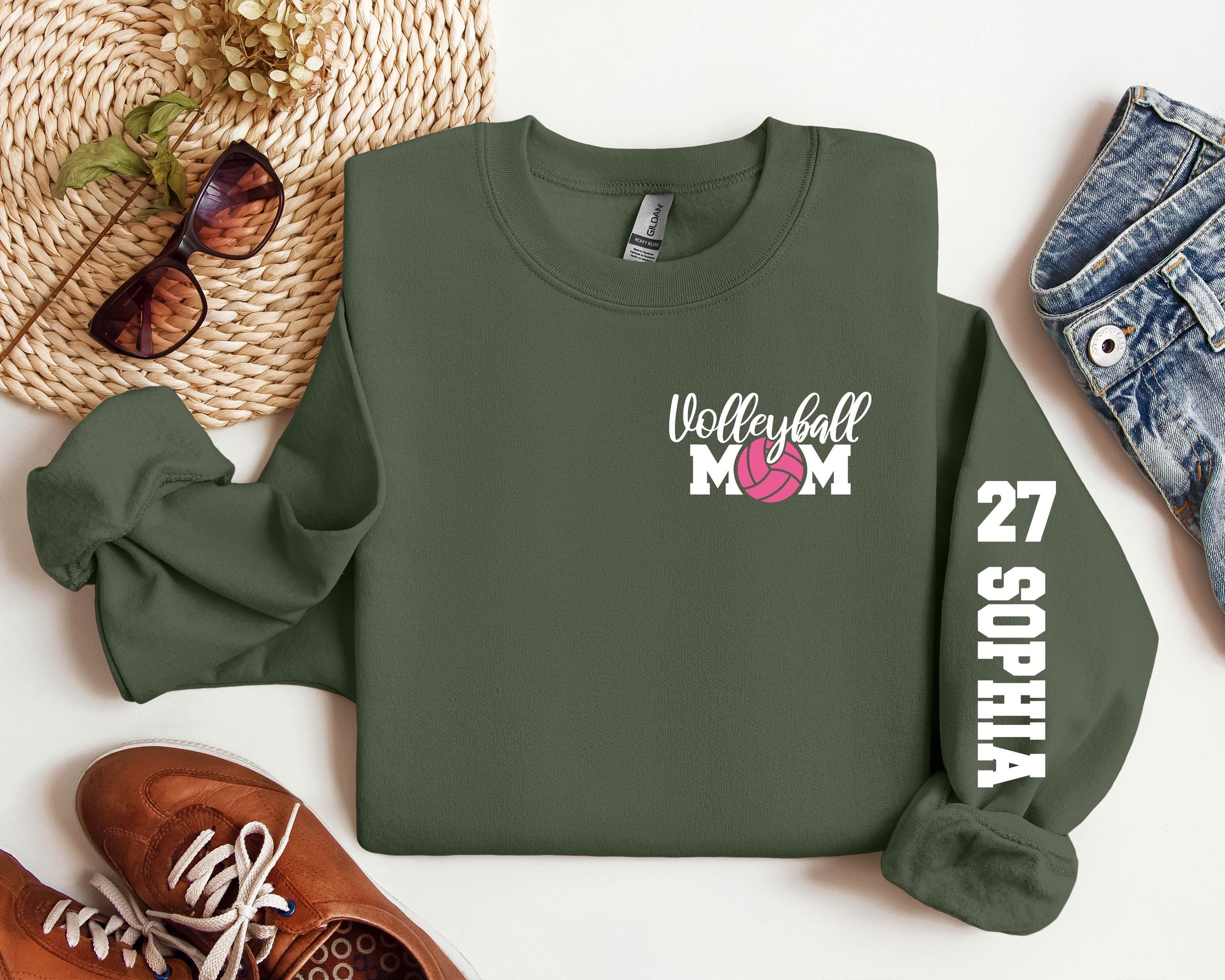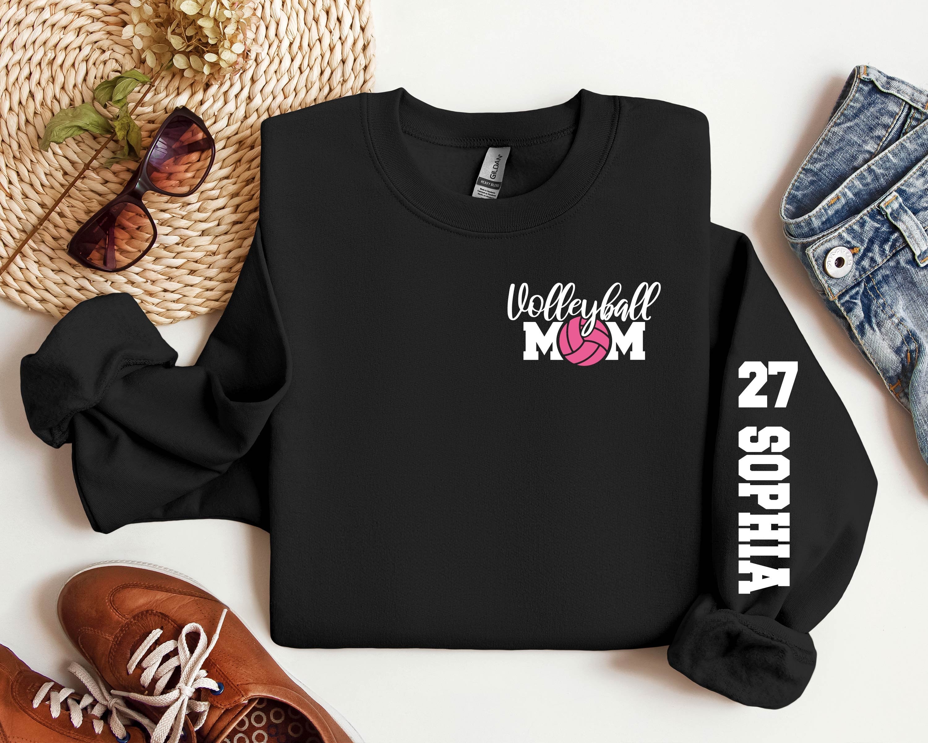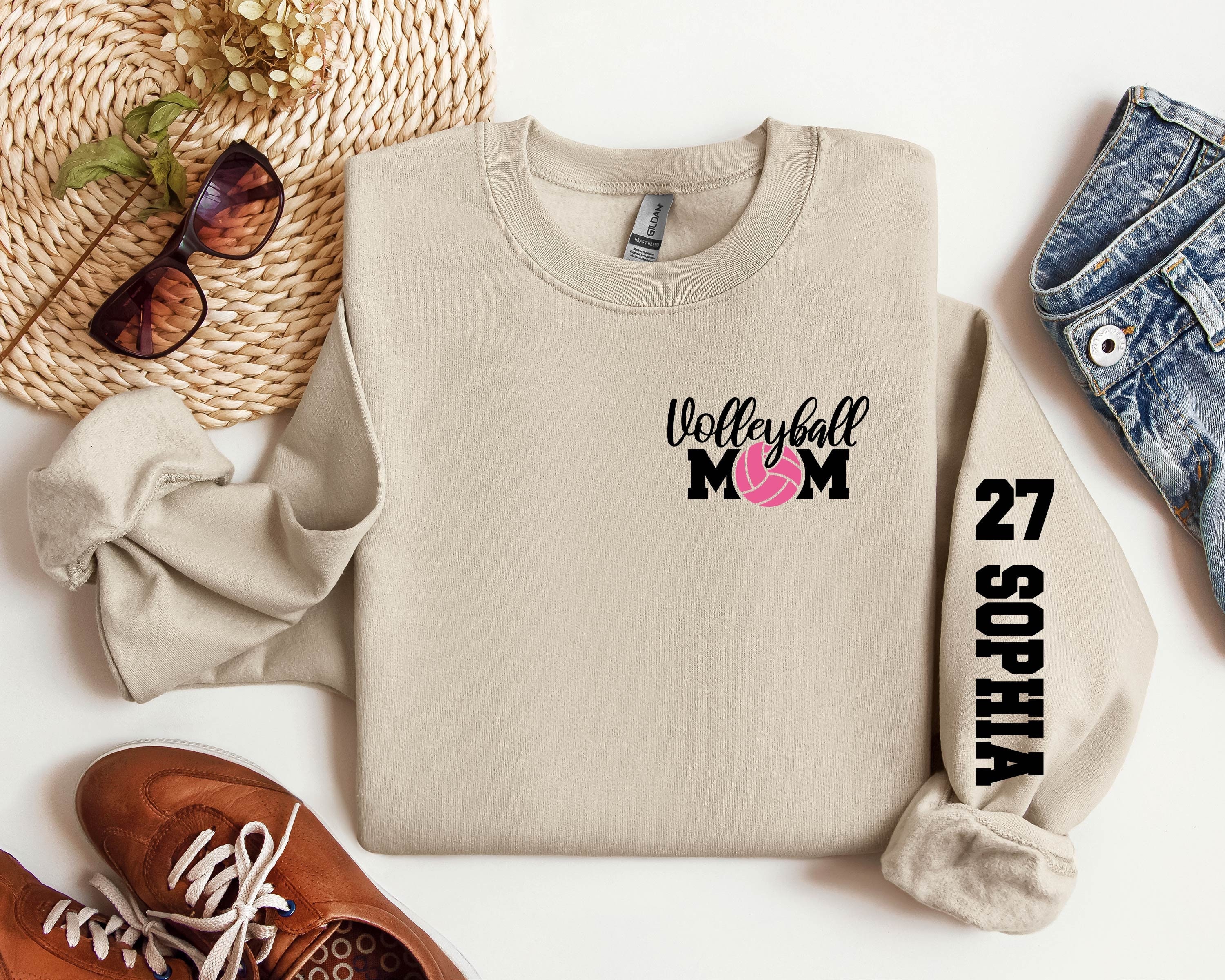 Personalized Volleyball Mom Sweater with Sleeves Game Day Volleyball Mom Custom Your Name Number Sweater, Your Name Volleyball Sweater Gift