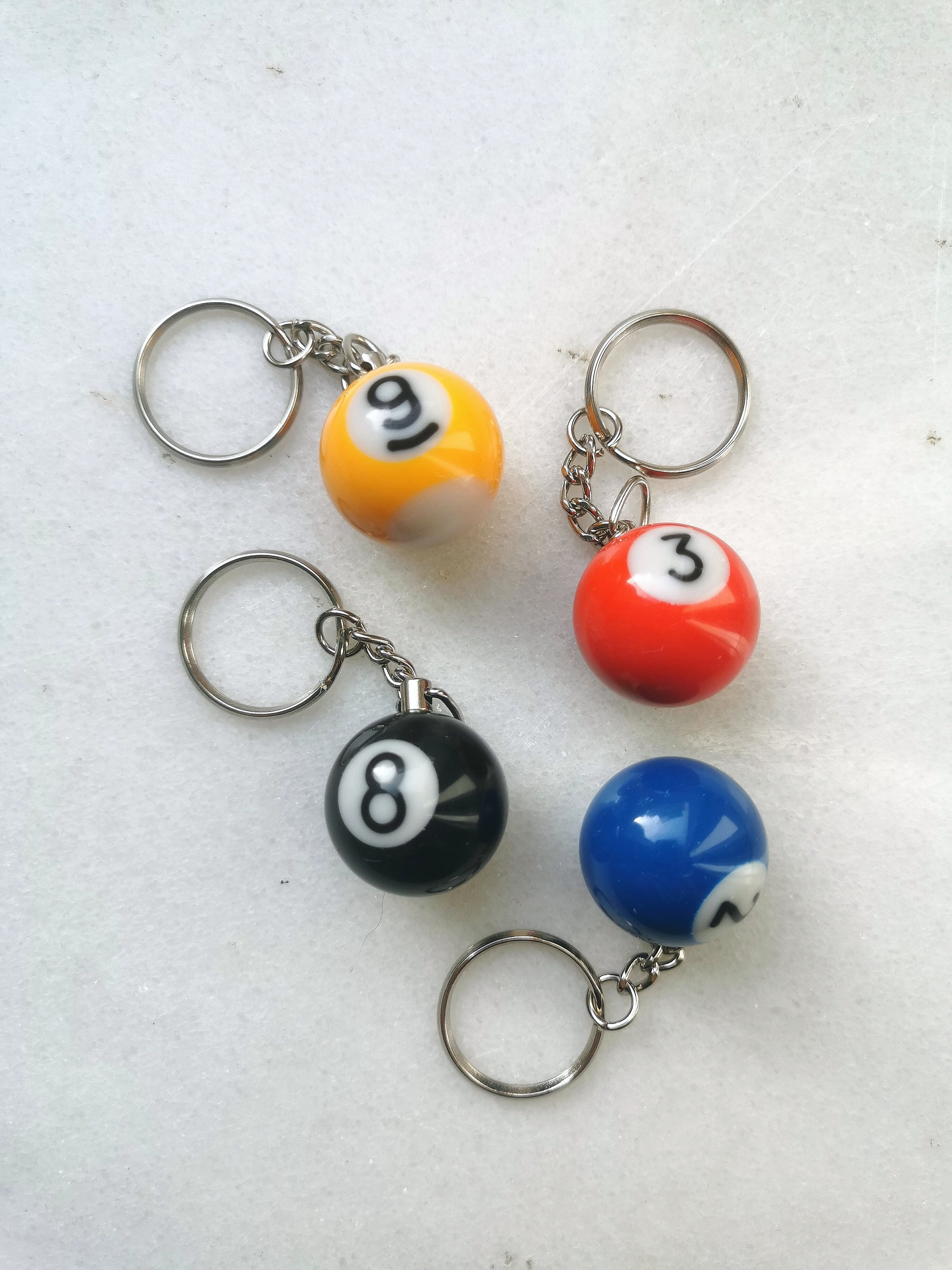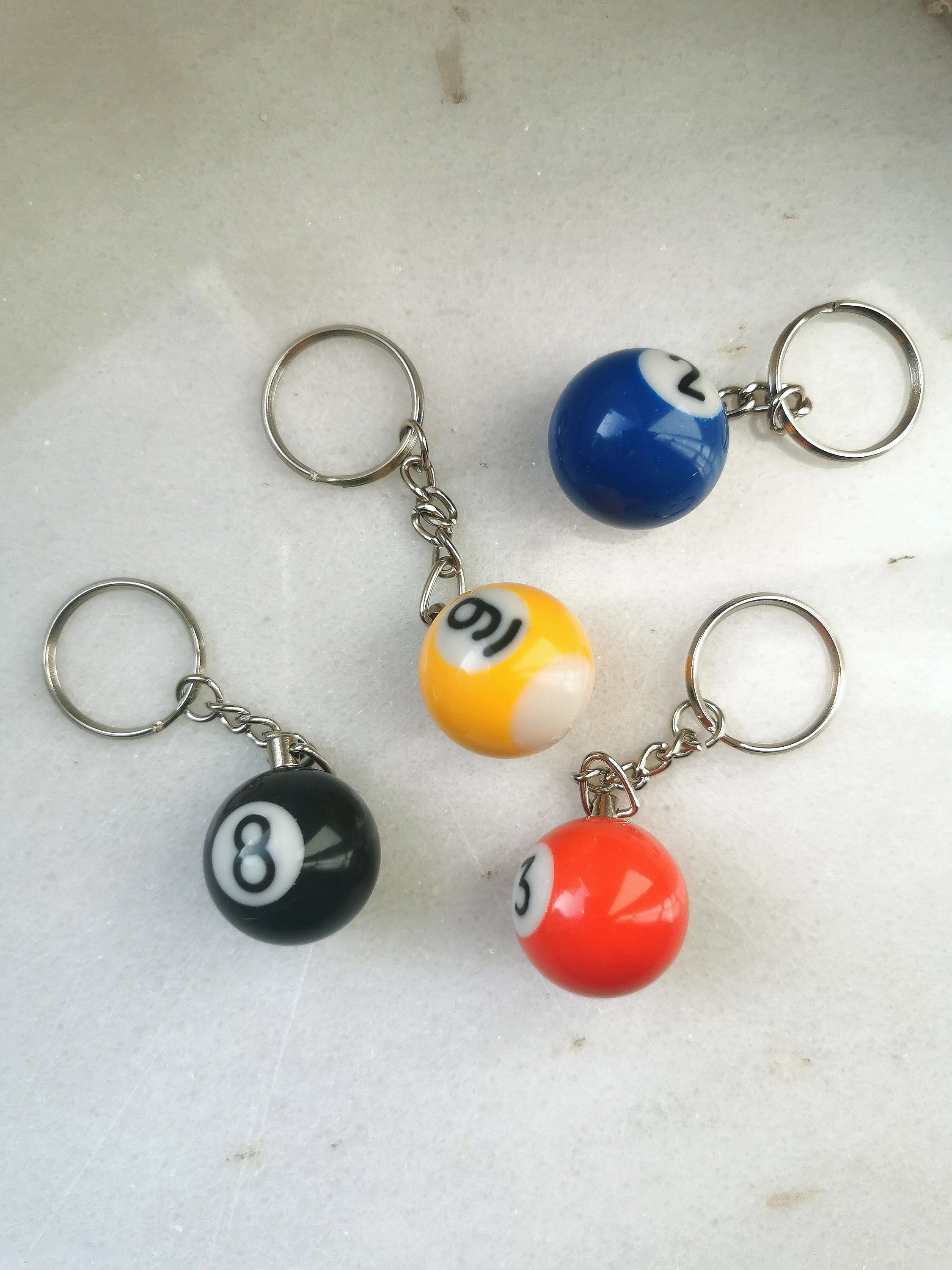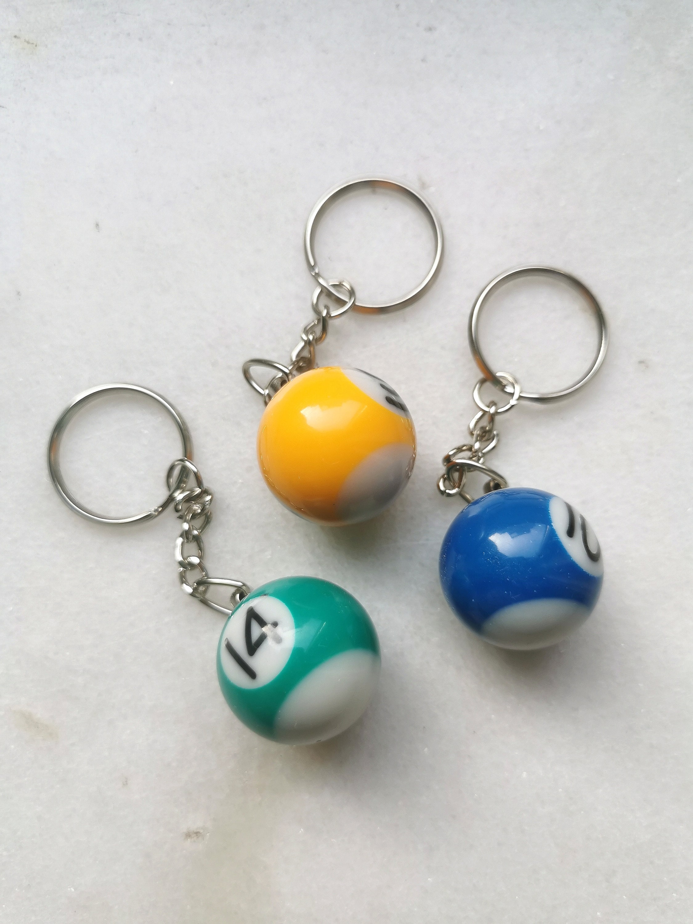 Billiards Snooker Keychain. Realistic, miniature, cute balls that excite every green table sports lover. Solid colors, stripes and lucky 8 balls. Can be used as car keys, bags, prizes. Makes a unique gift for yourself or a gaming partner.
