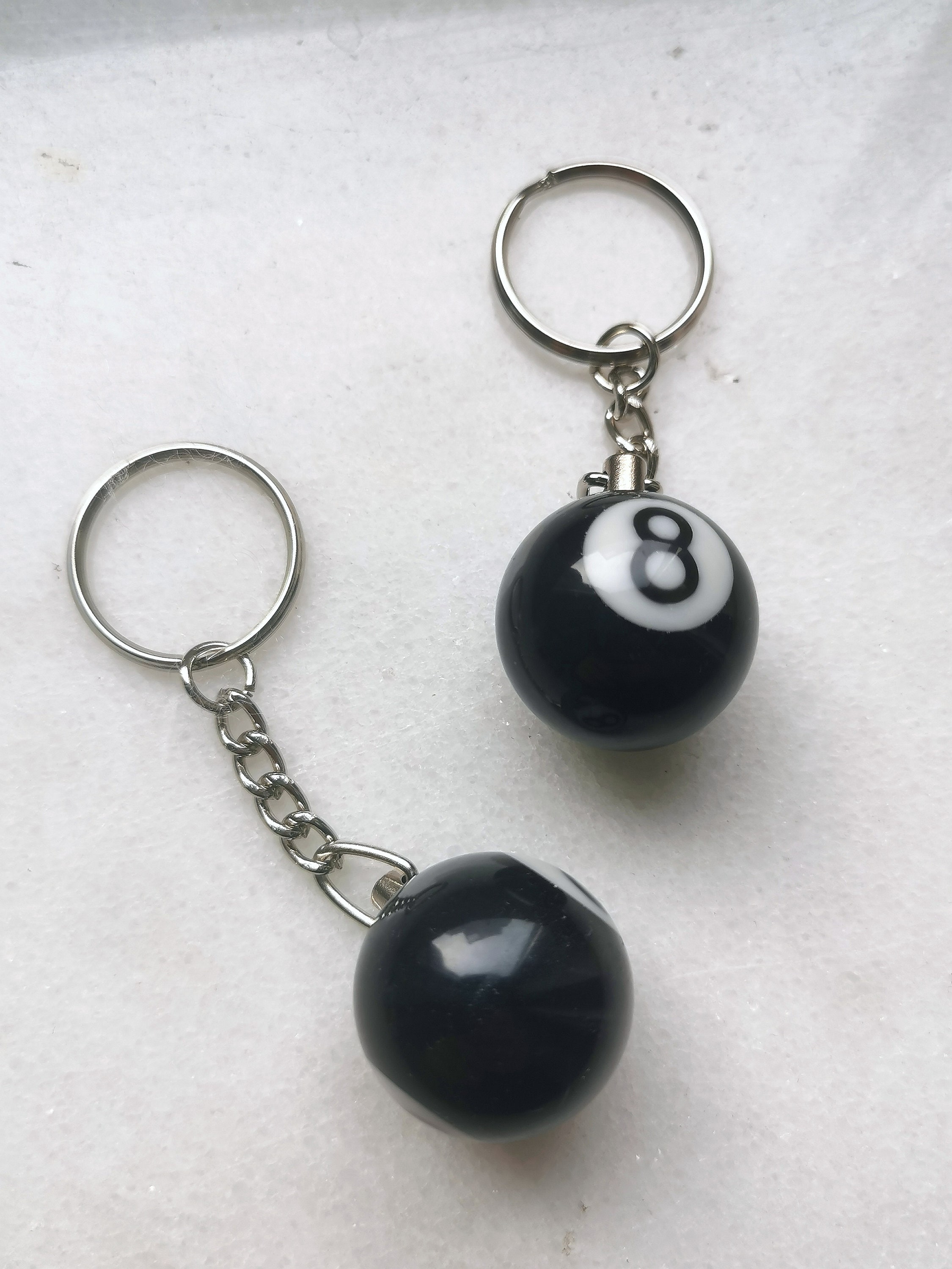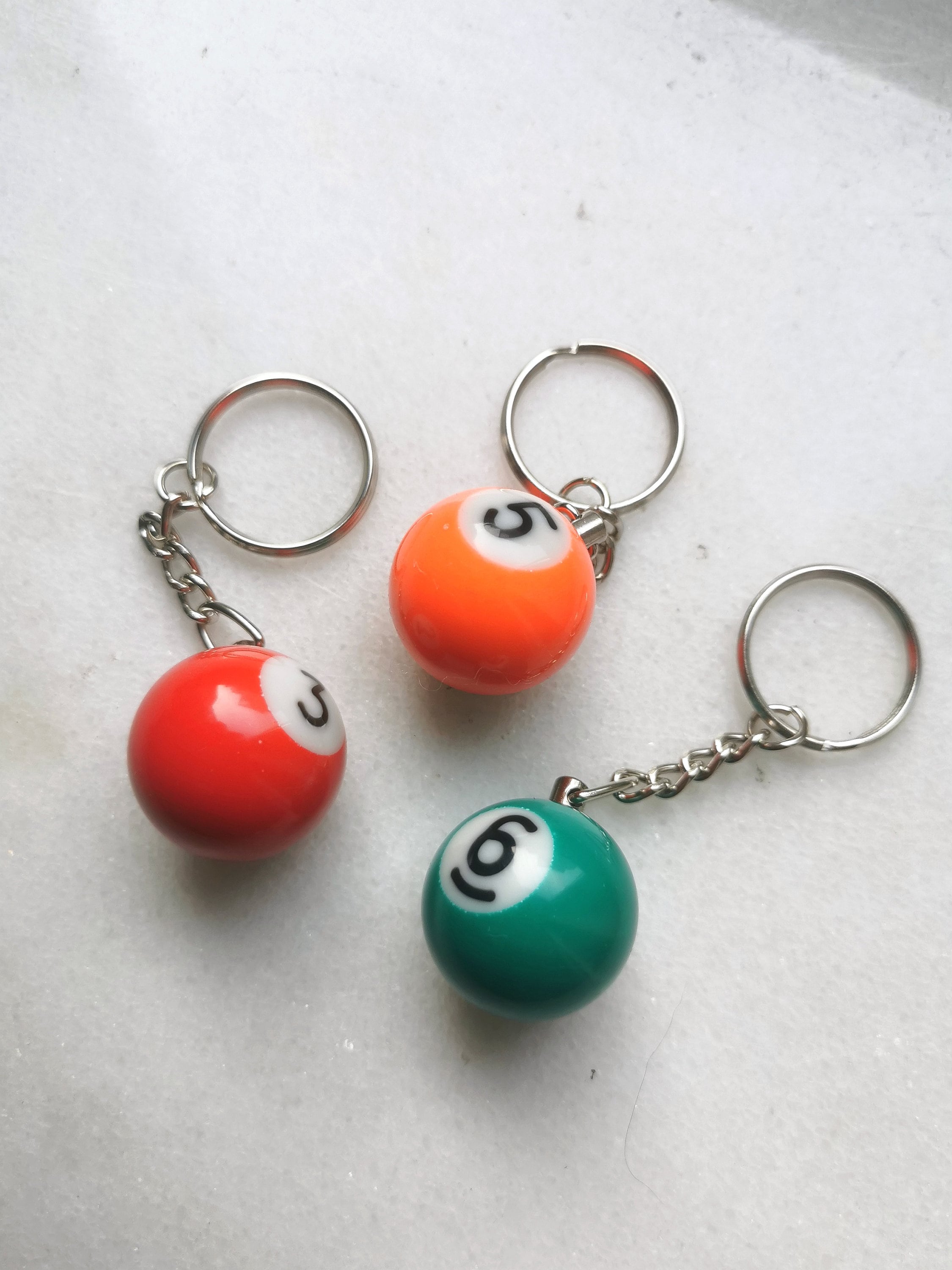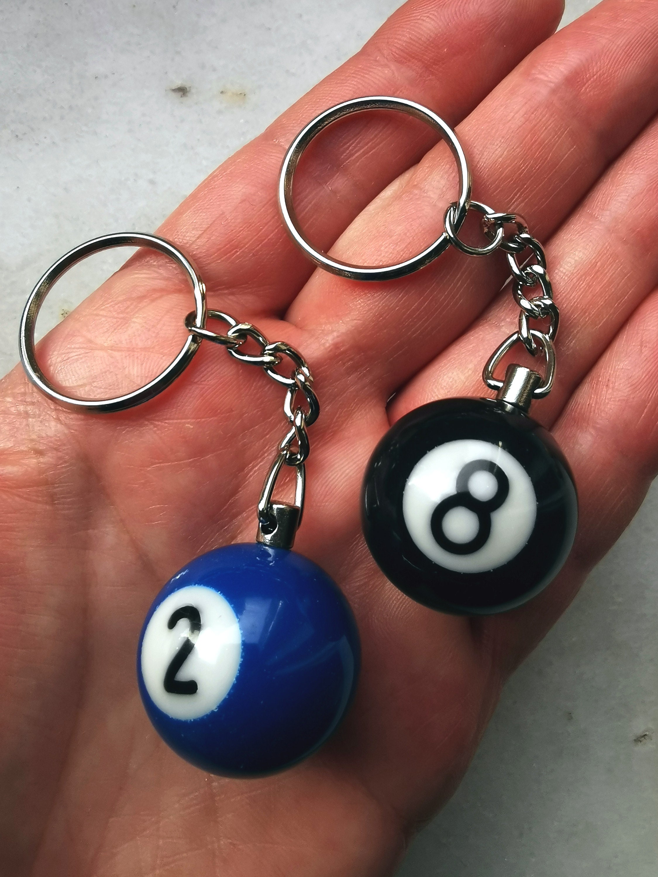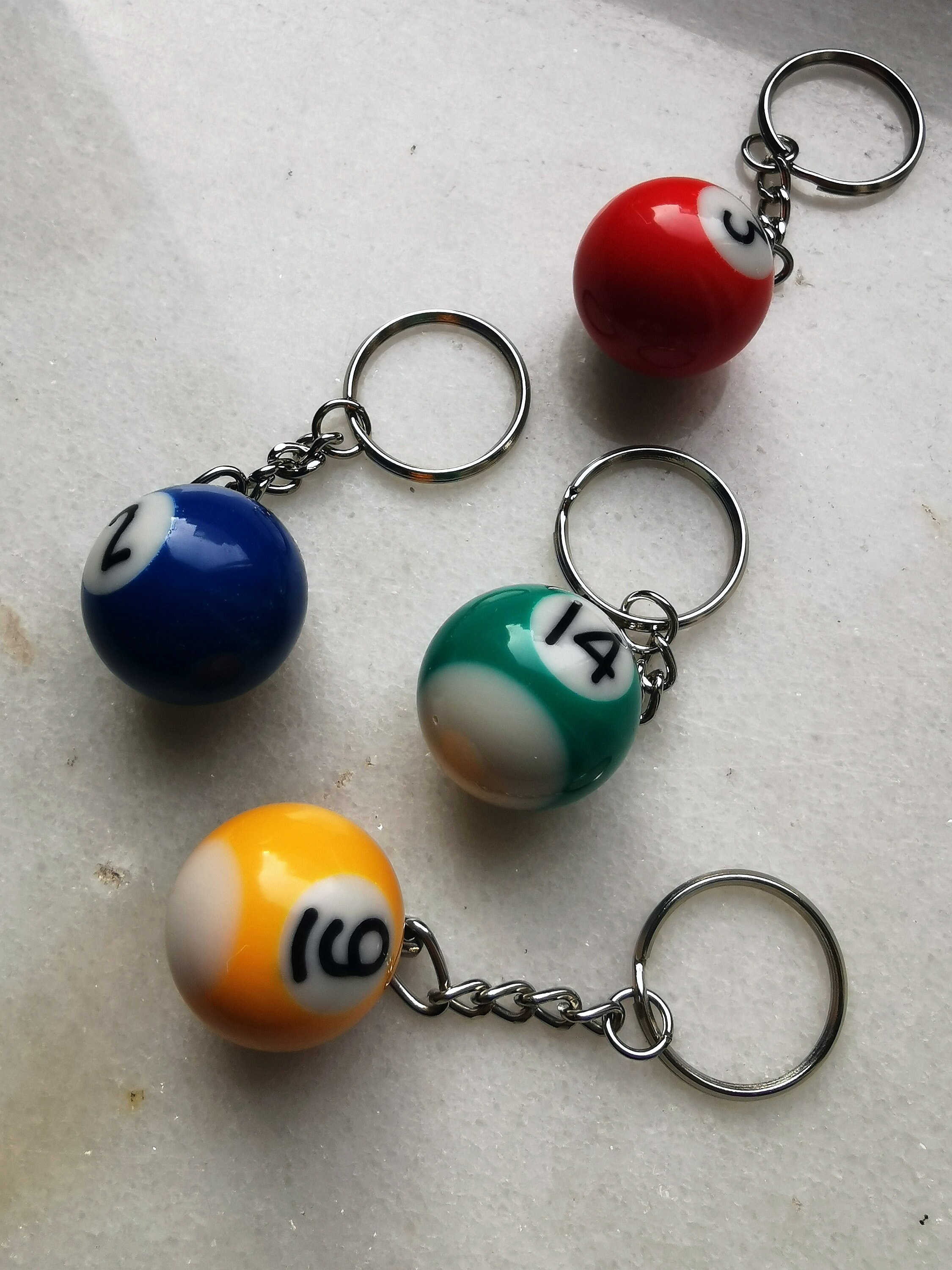 Billiards Snooker Keychain. Realistic, miniature, cute balls that excite every green table sports lover. Solid colors, stripes and lucky 8 balls. Can be used as car keys, bags, prizes. Makes a unique gift for yourself or a gaming partner.