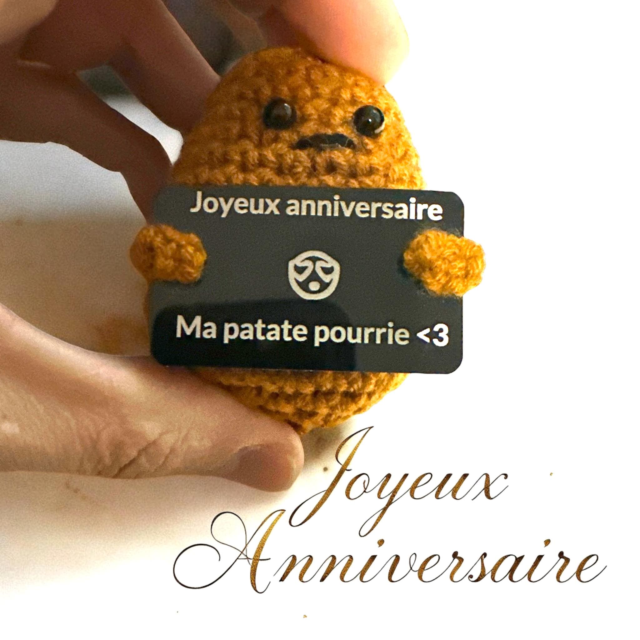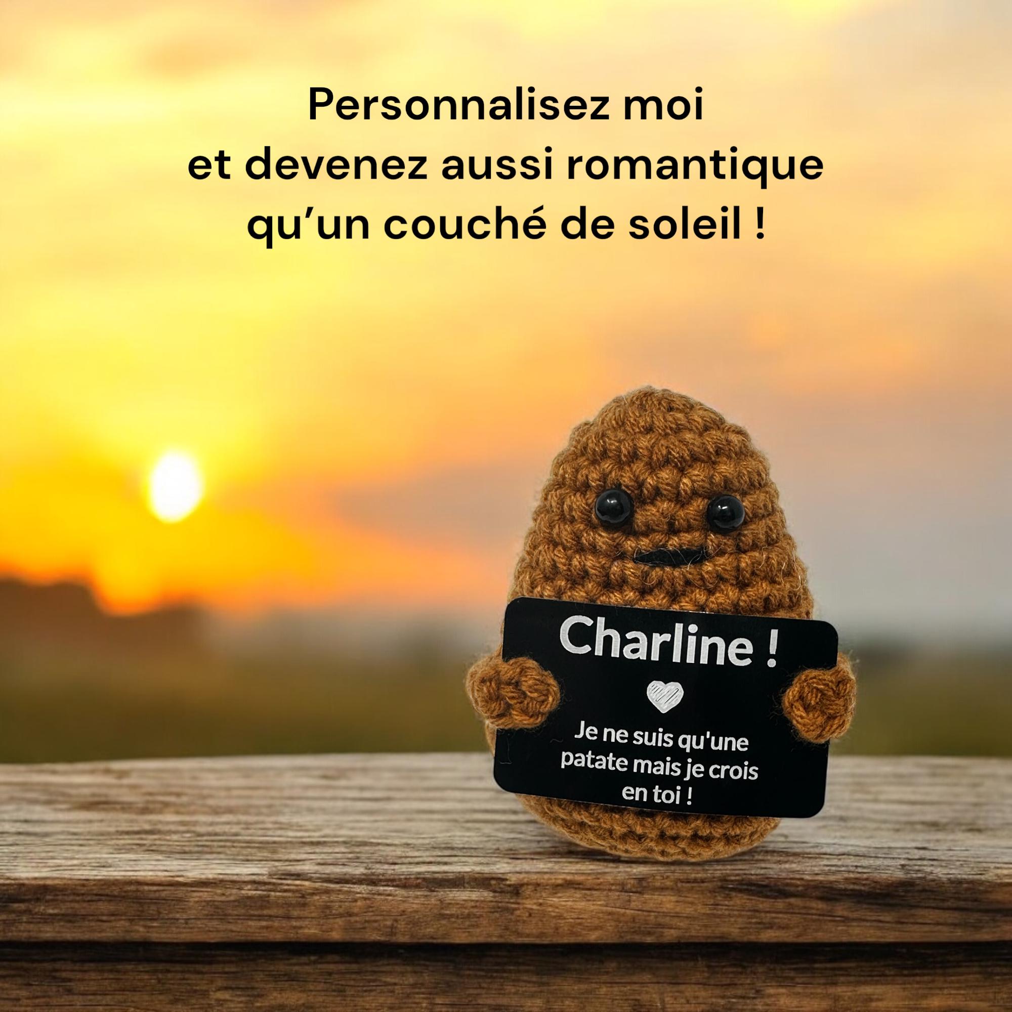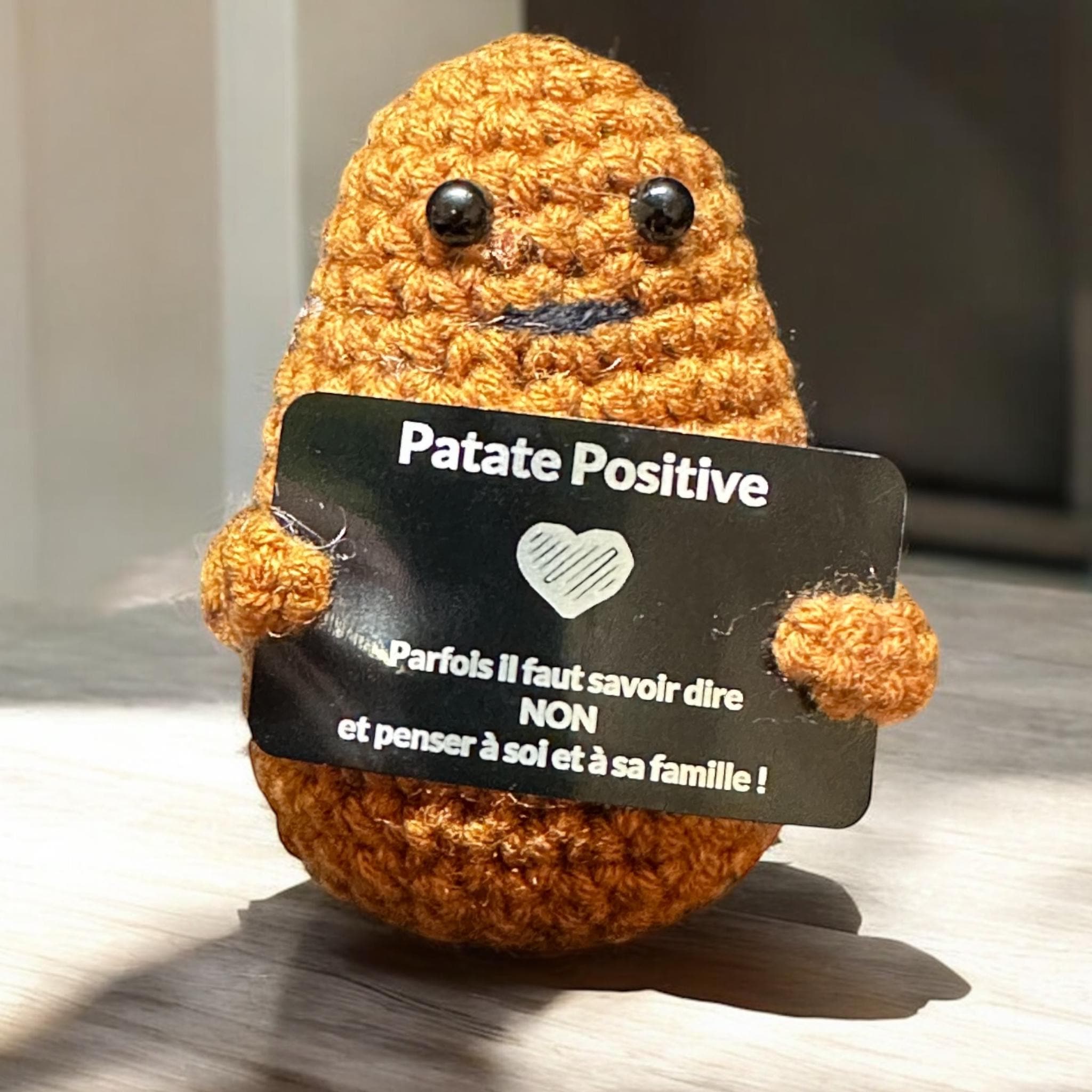 Positive Potato customizable: choose your message and get a little happiness, fun or love, it is hand-crocheted and made in France 🥔💛.