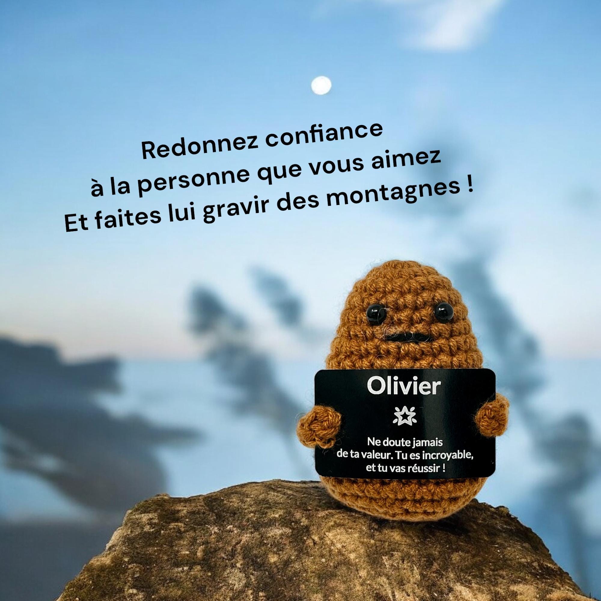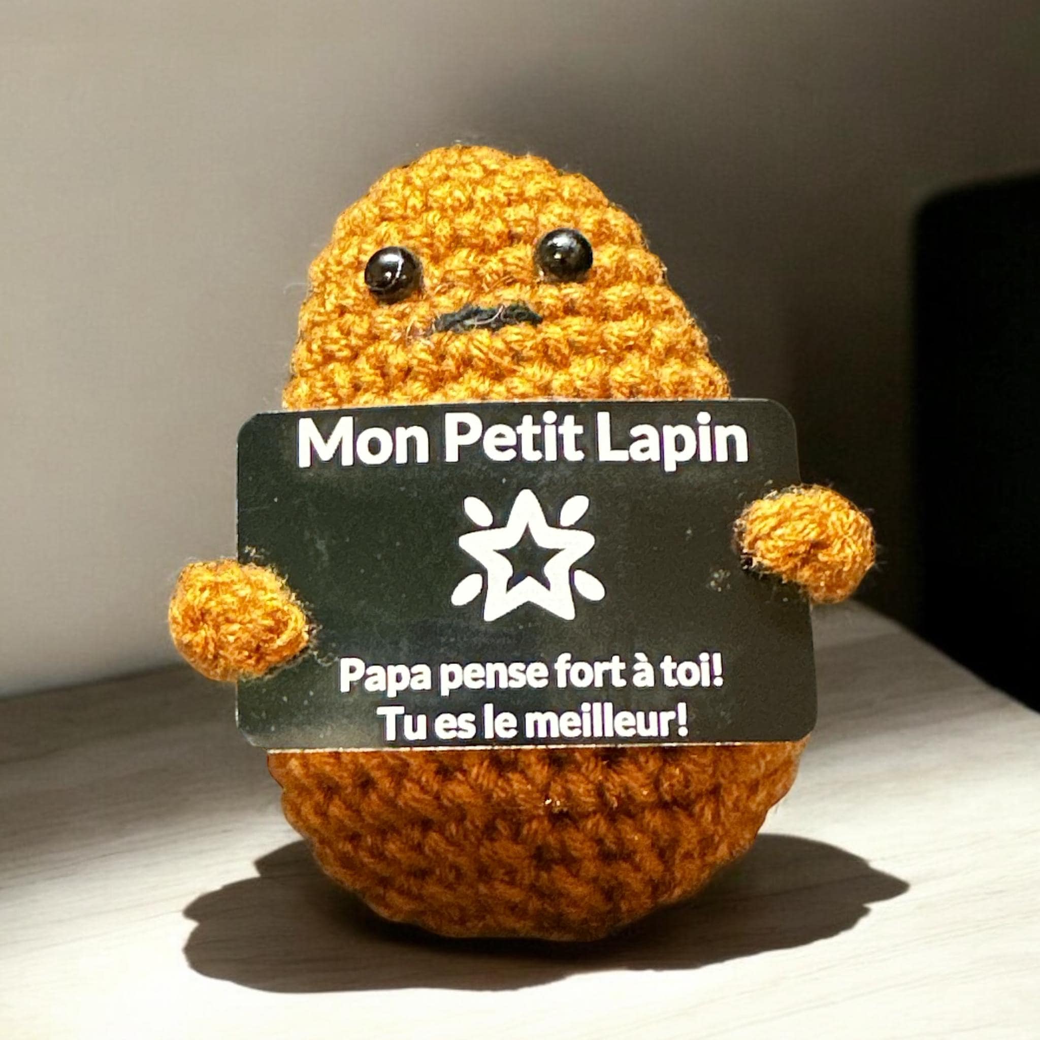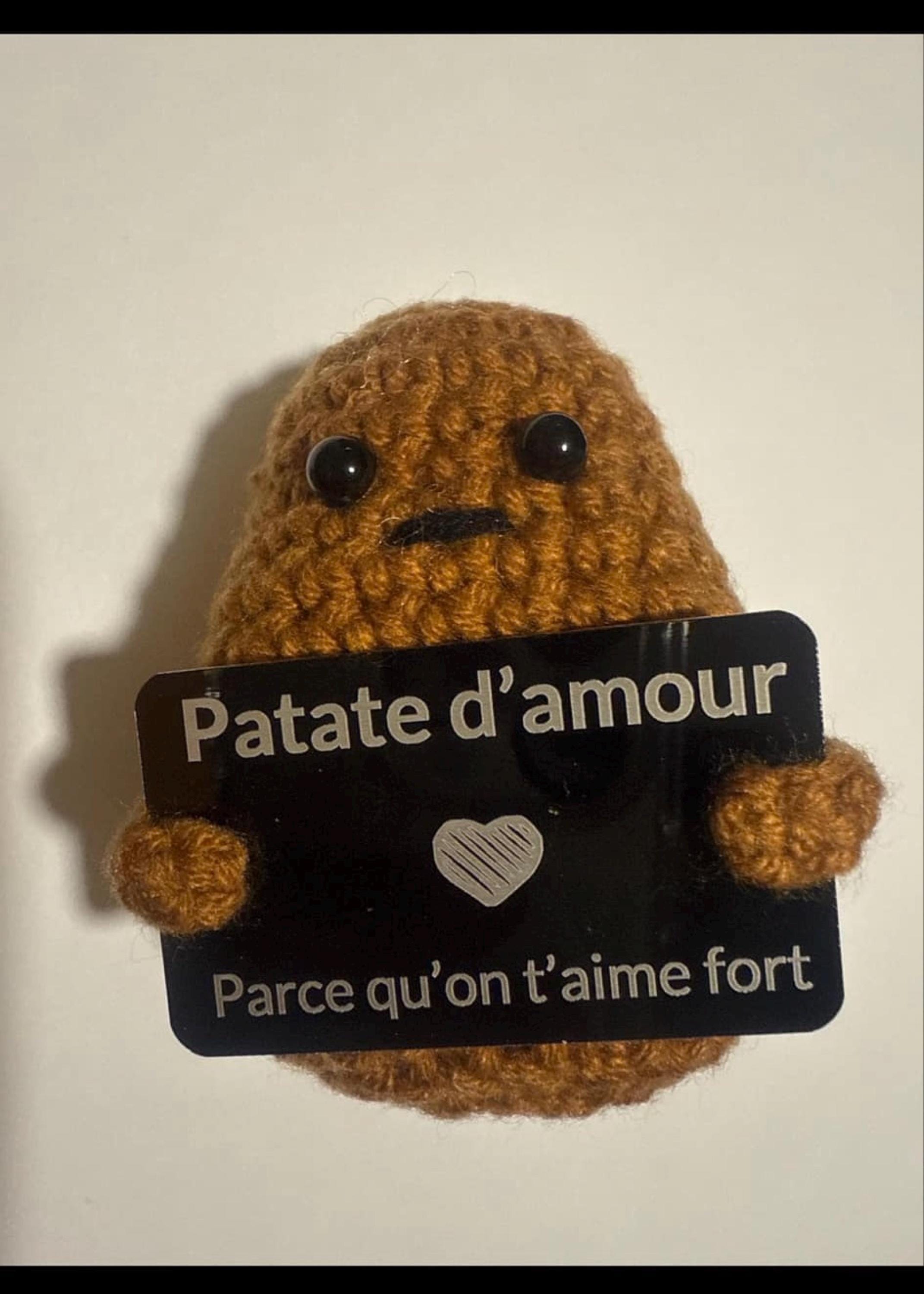 Positive Potato customizable: choose your message and get a little happiness, fun or love, it is hand-crocheted and made in France 🥔💛.