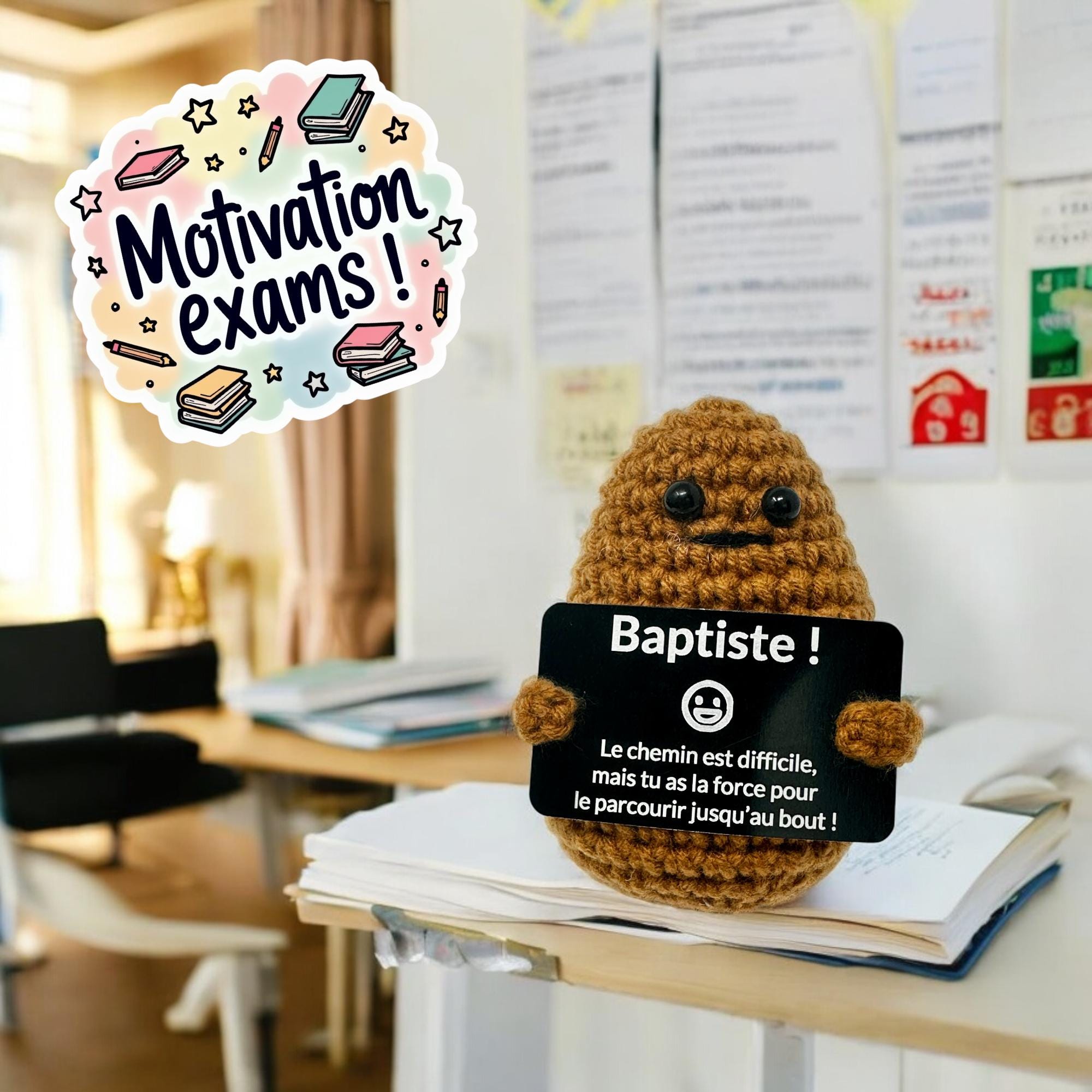 What you order 📦: 1 hand-crocheted Positive Potato (6 cm high) with your personalized message.