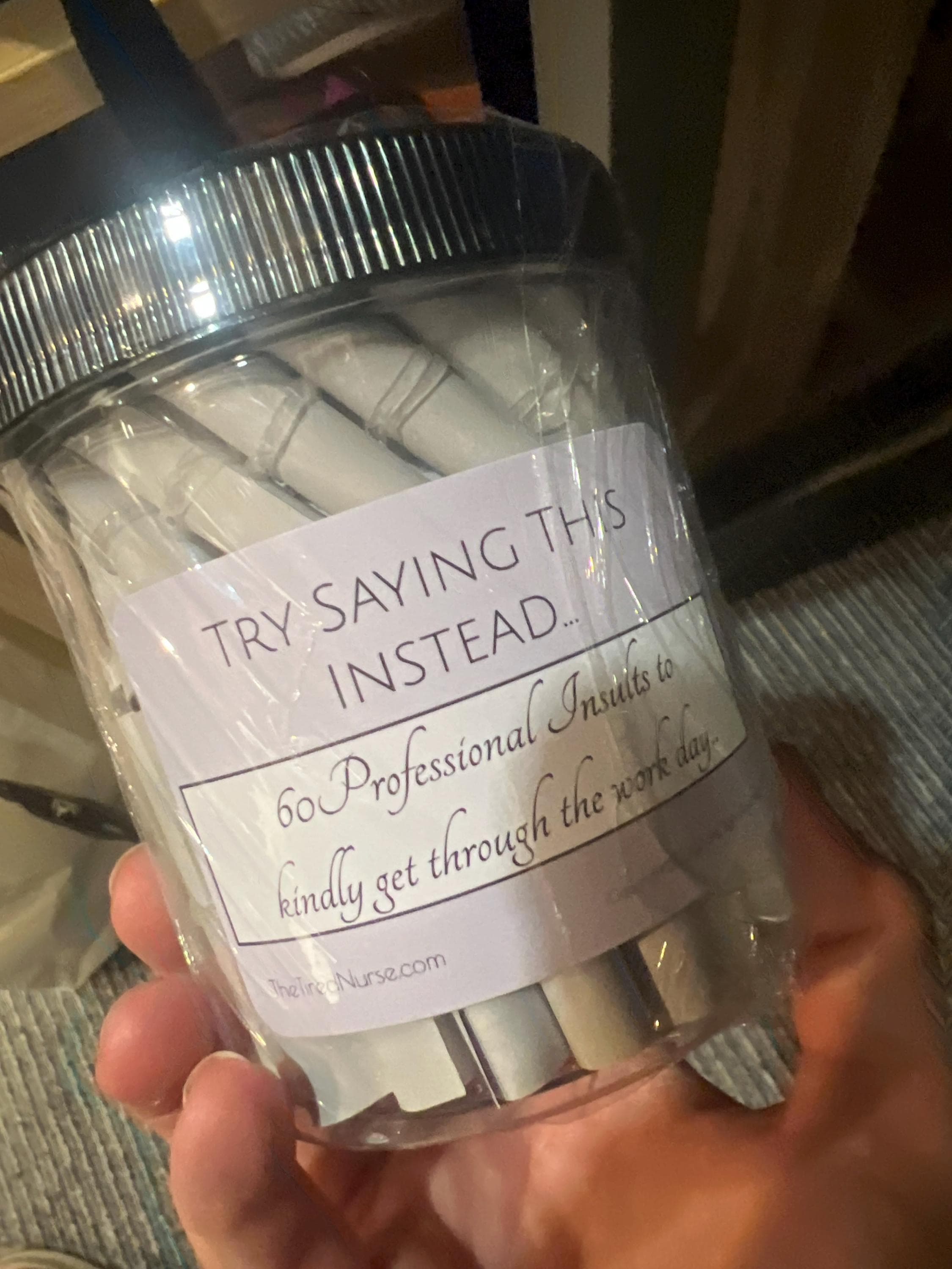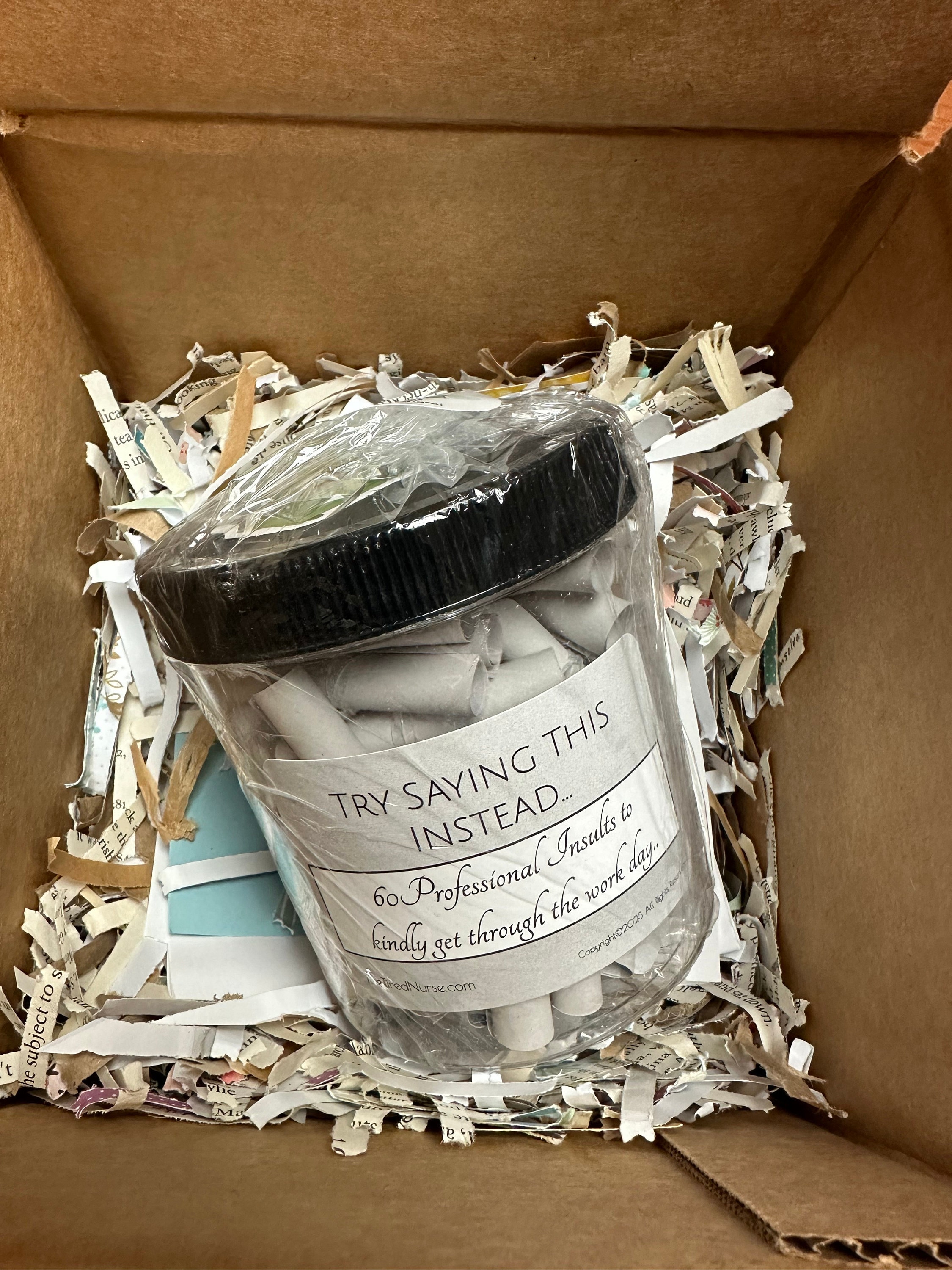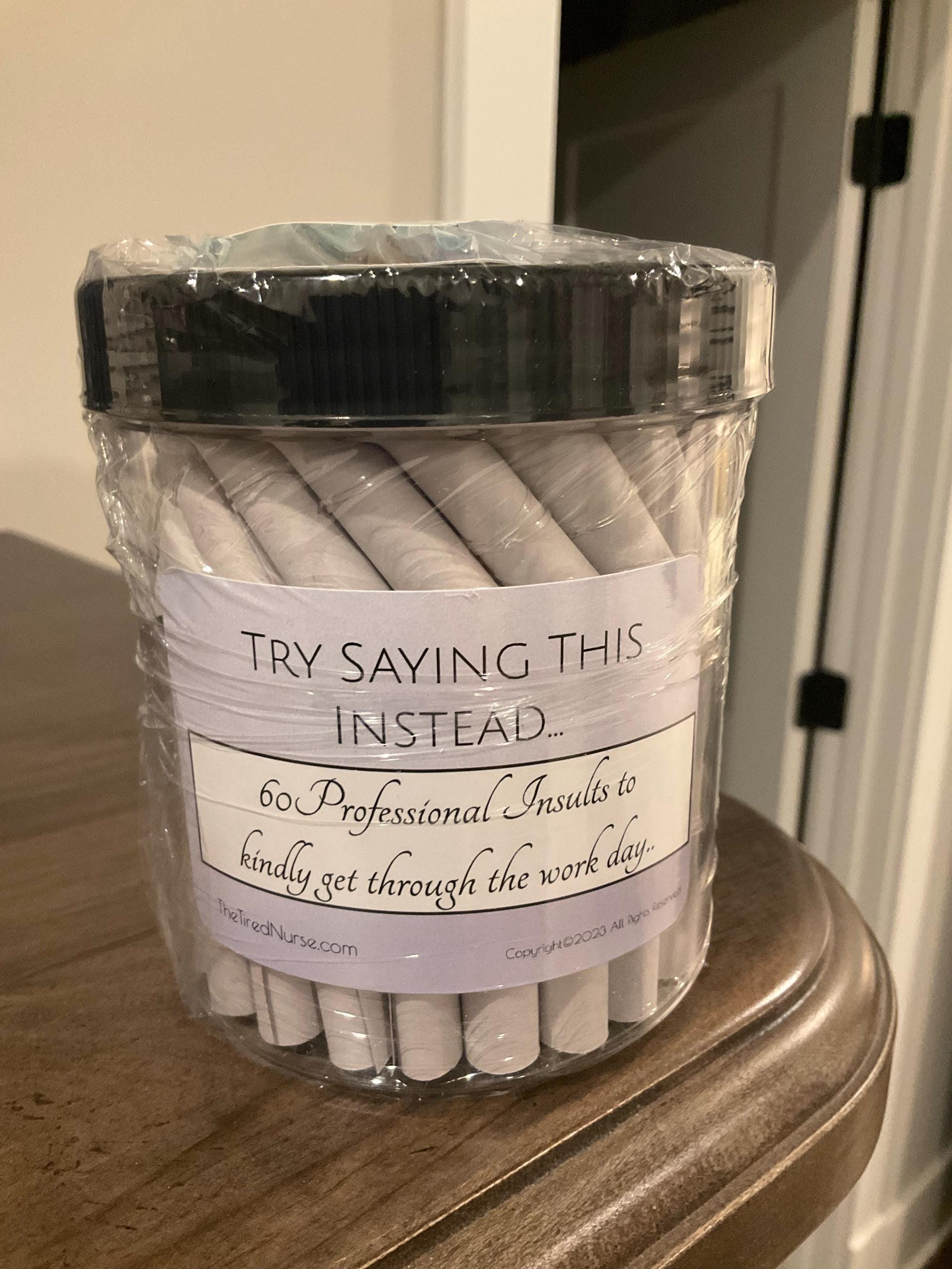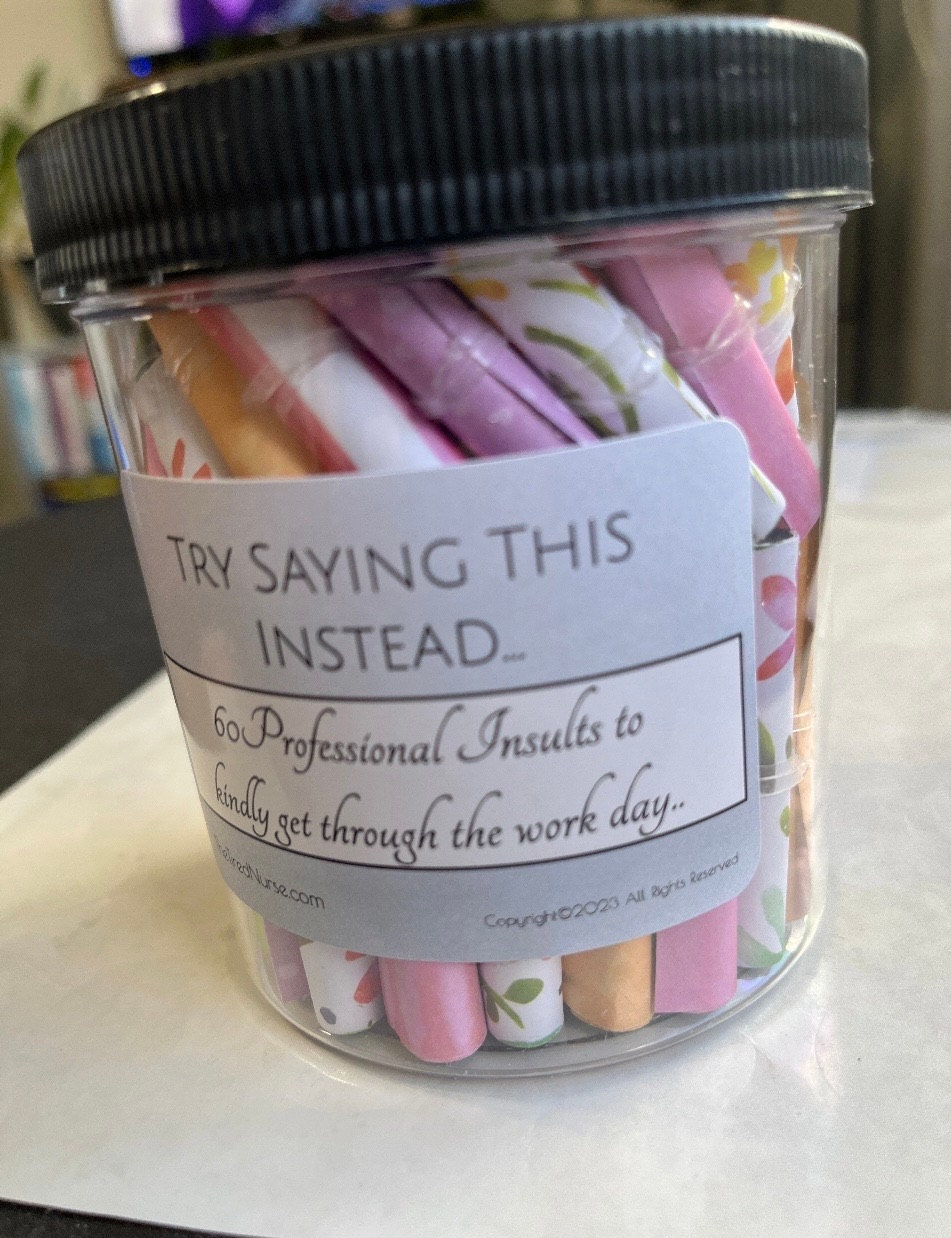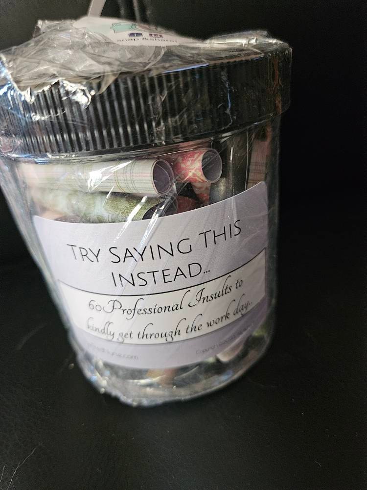 Spice up your professional world with our "Try Saying This Instead of a Professional Insult" Affirmation Jar. 🌟 Designed to be fun, lighthearted, and a refreshing twist on your day, these clever and witty affirmations are perfect for office humor or as a quirky gift. * Contains curse words - adult humor.