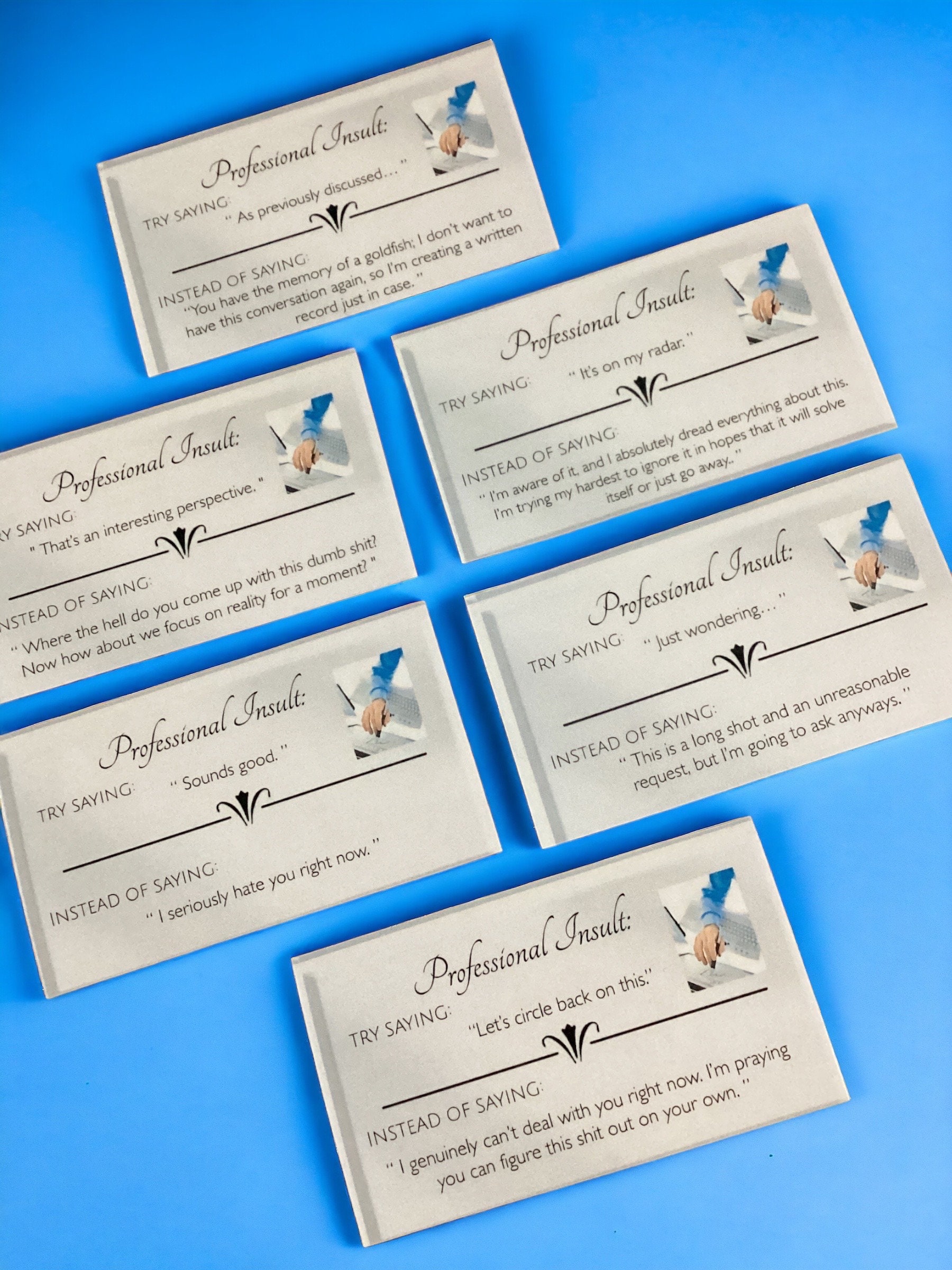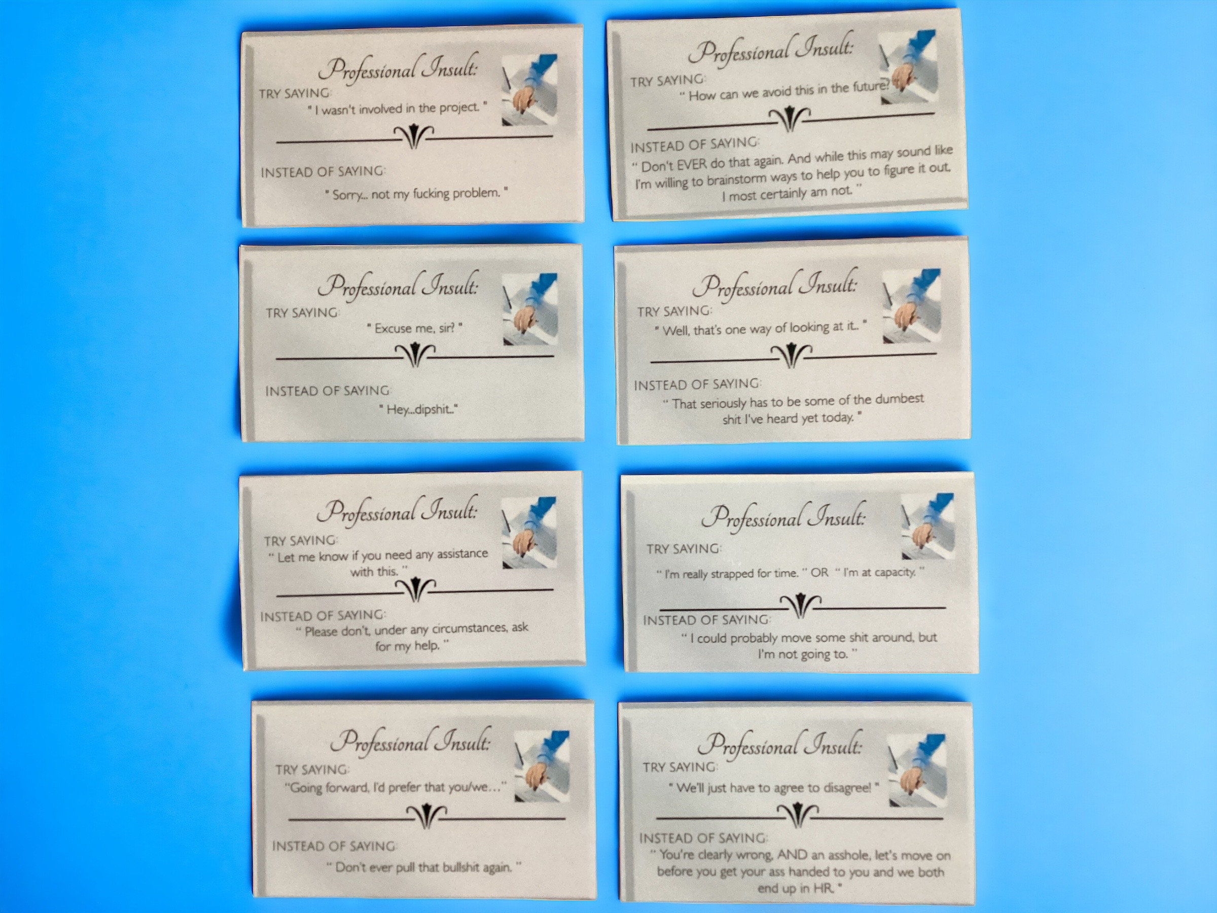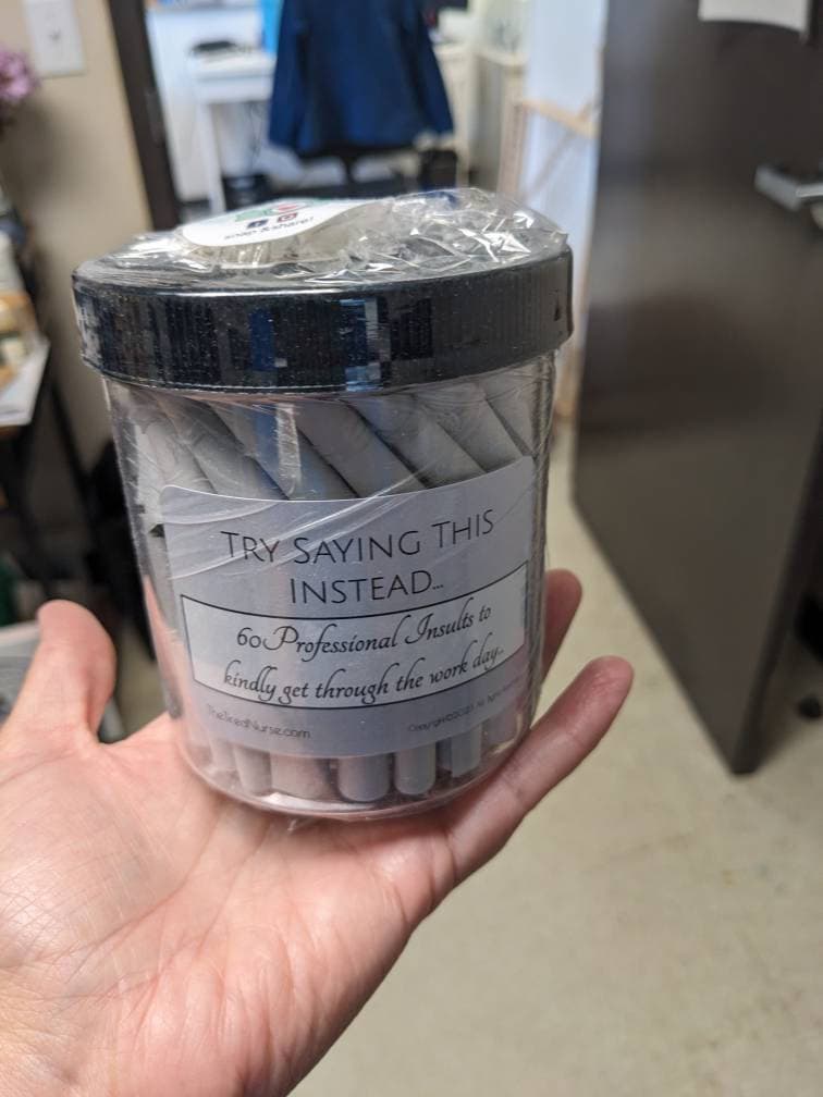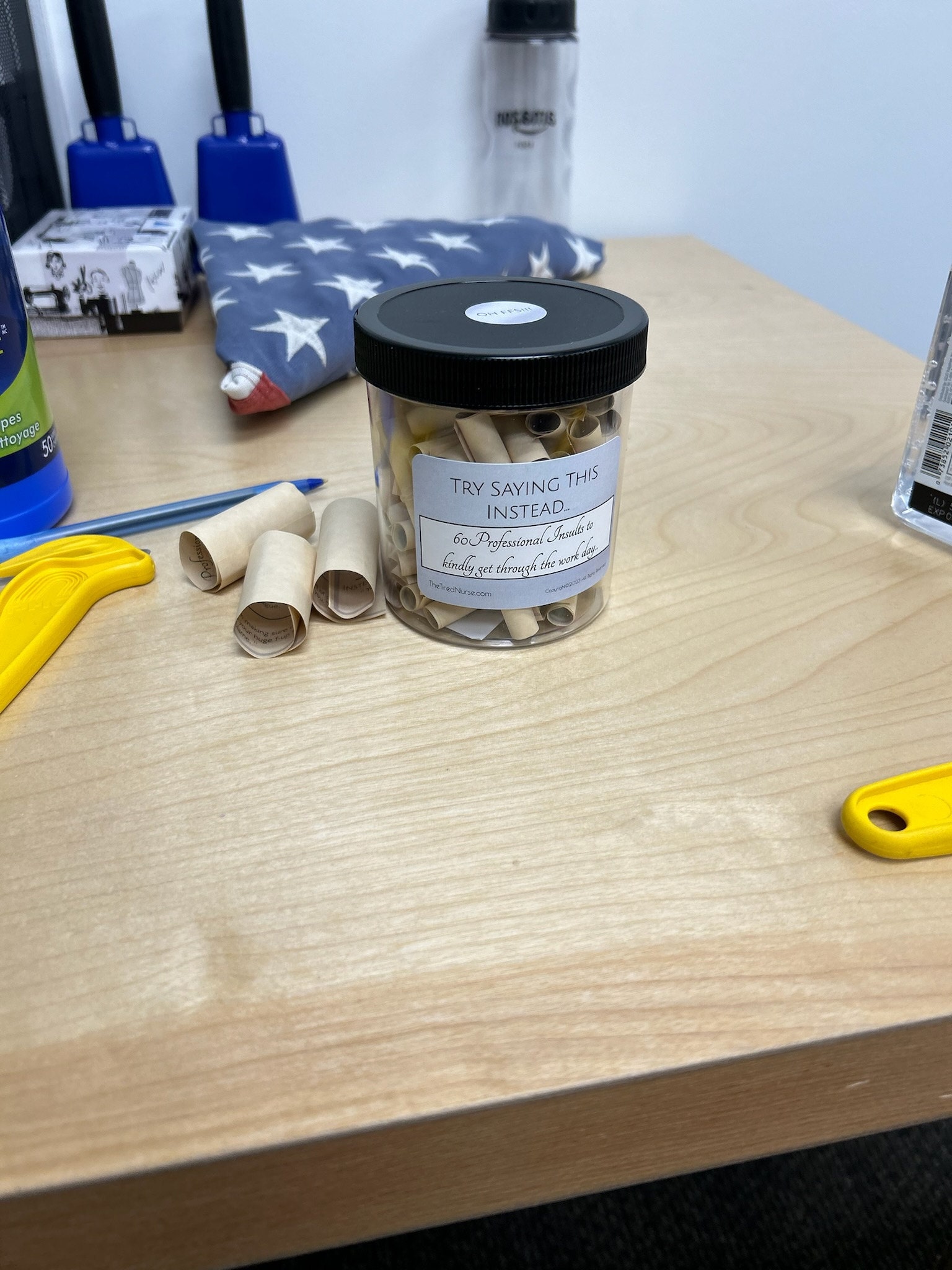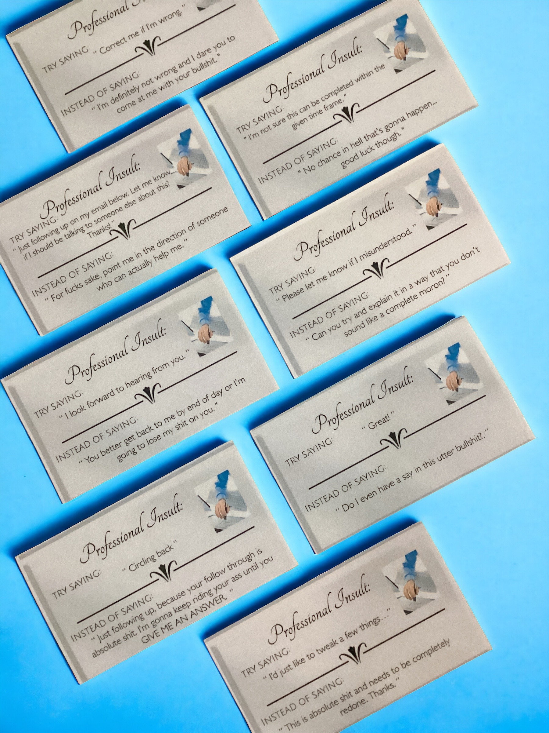 Spice up your professional world with our "Try Saying This Instead of a Professional Insult" Affirmation Jar. 🌟 Designed to be fun, lighthearted, and a refreshing twist on your day, these clever and witty affirmations are perfect for office humor or as a quirky gift. * Contains curse words - adult humor.