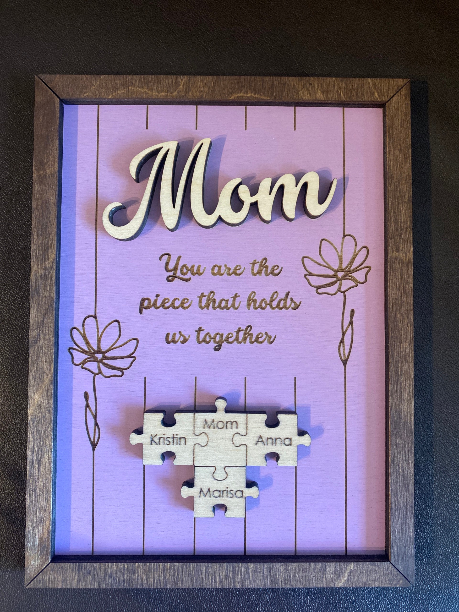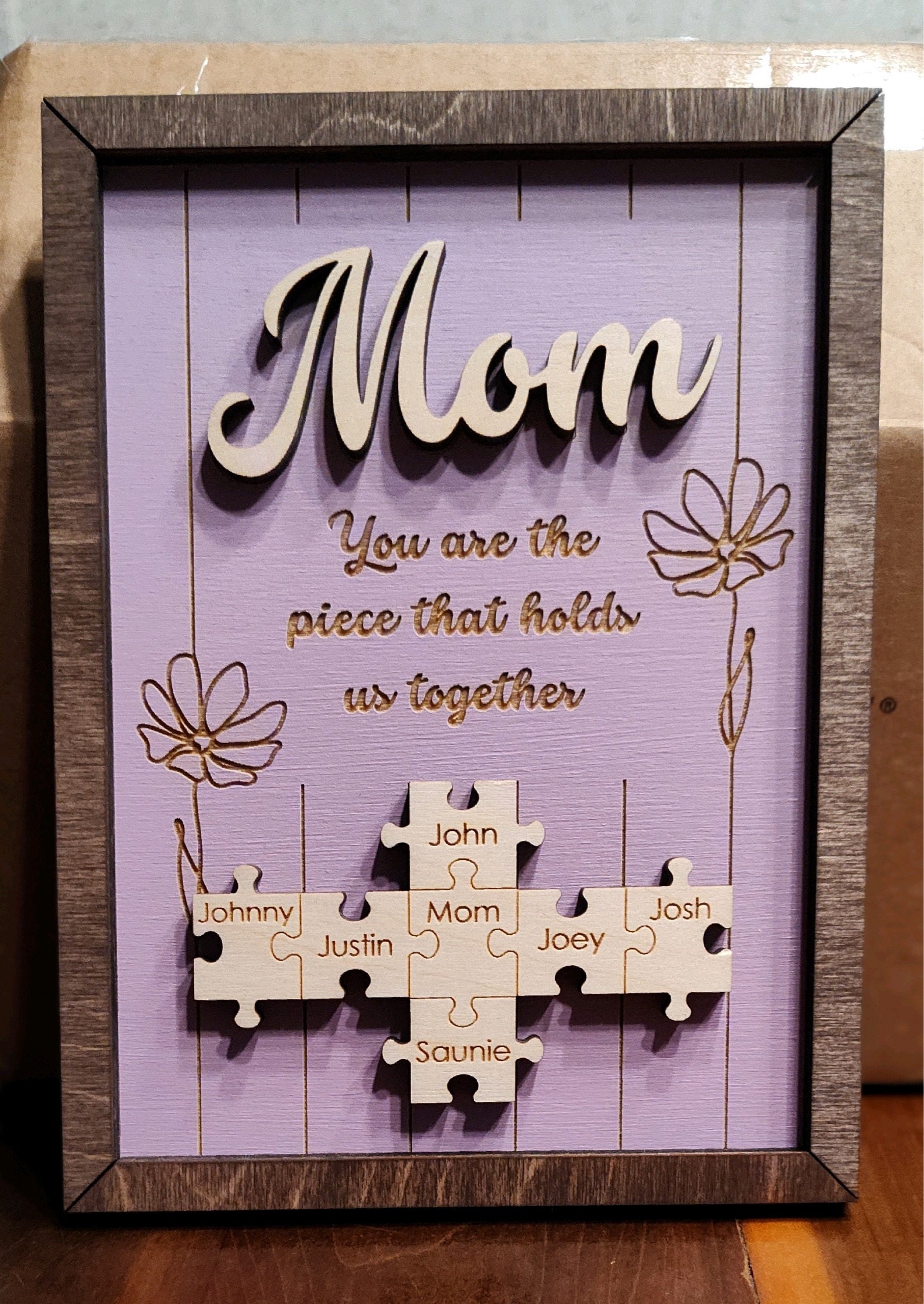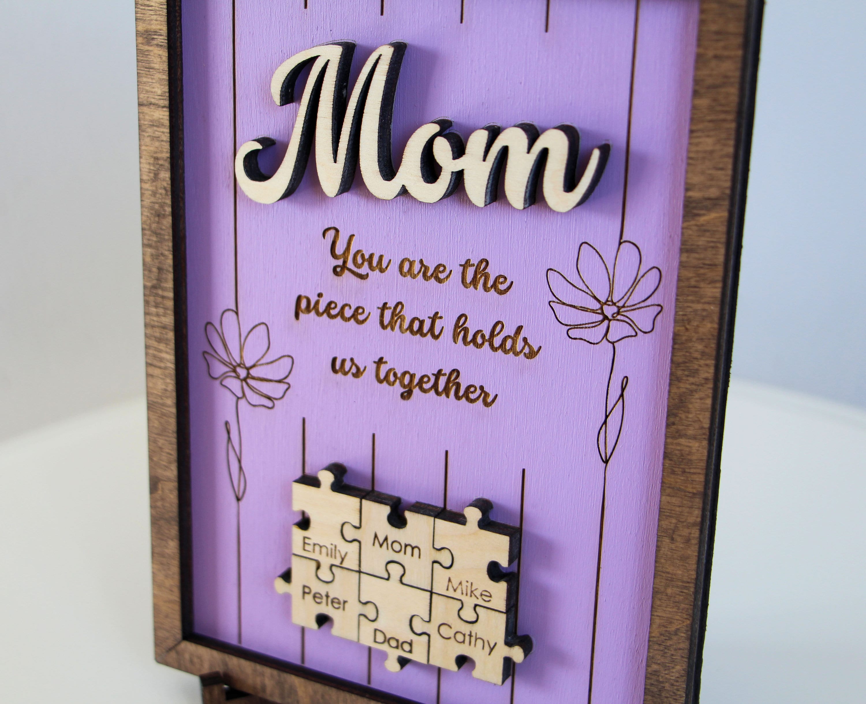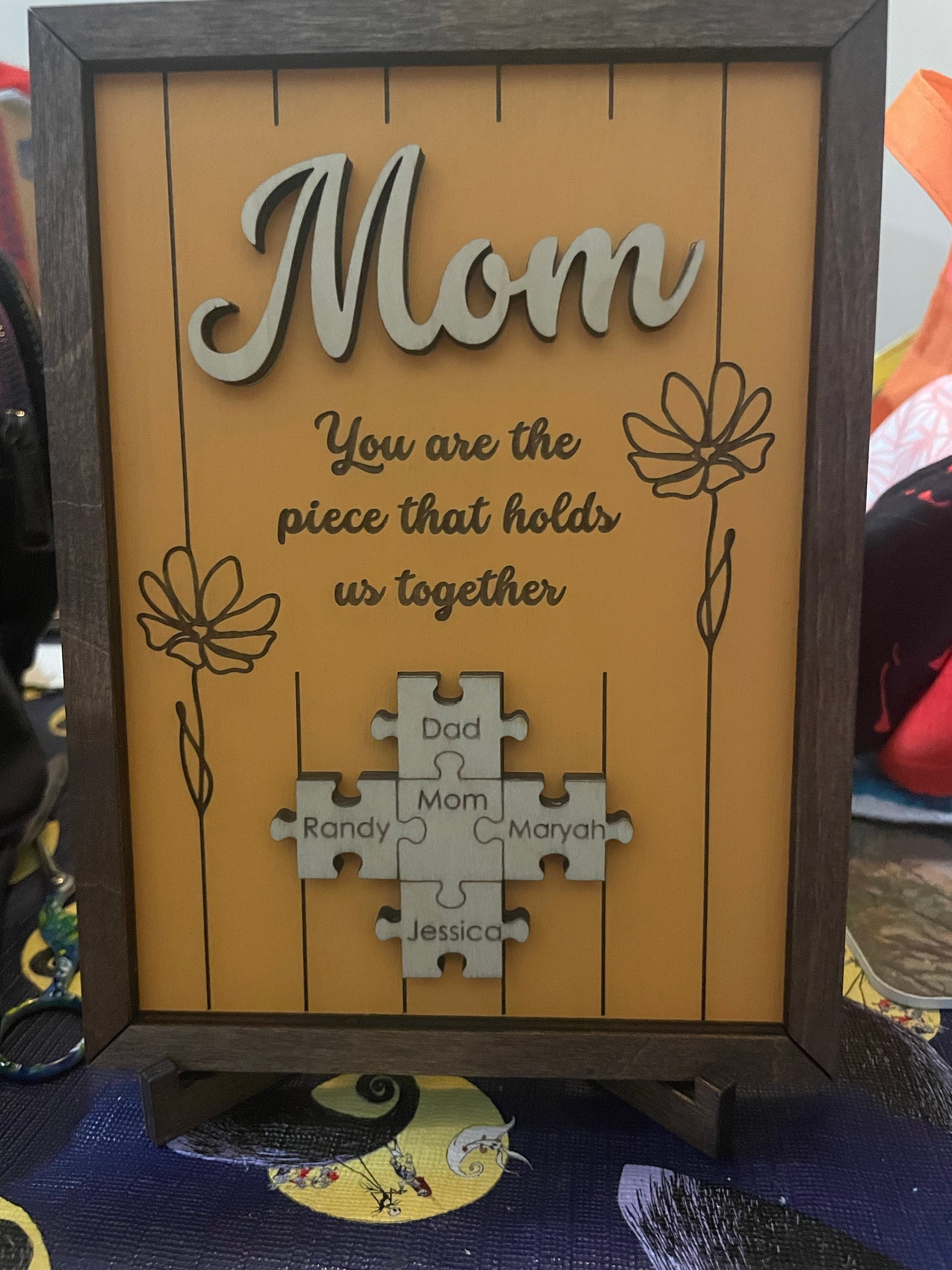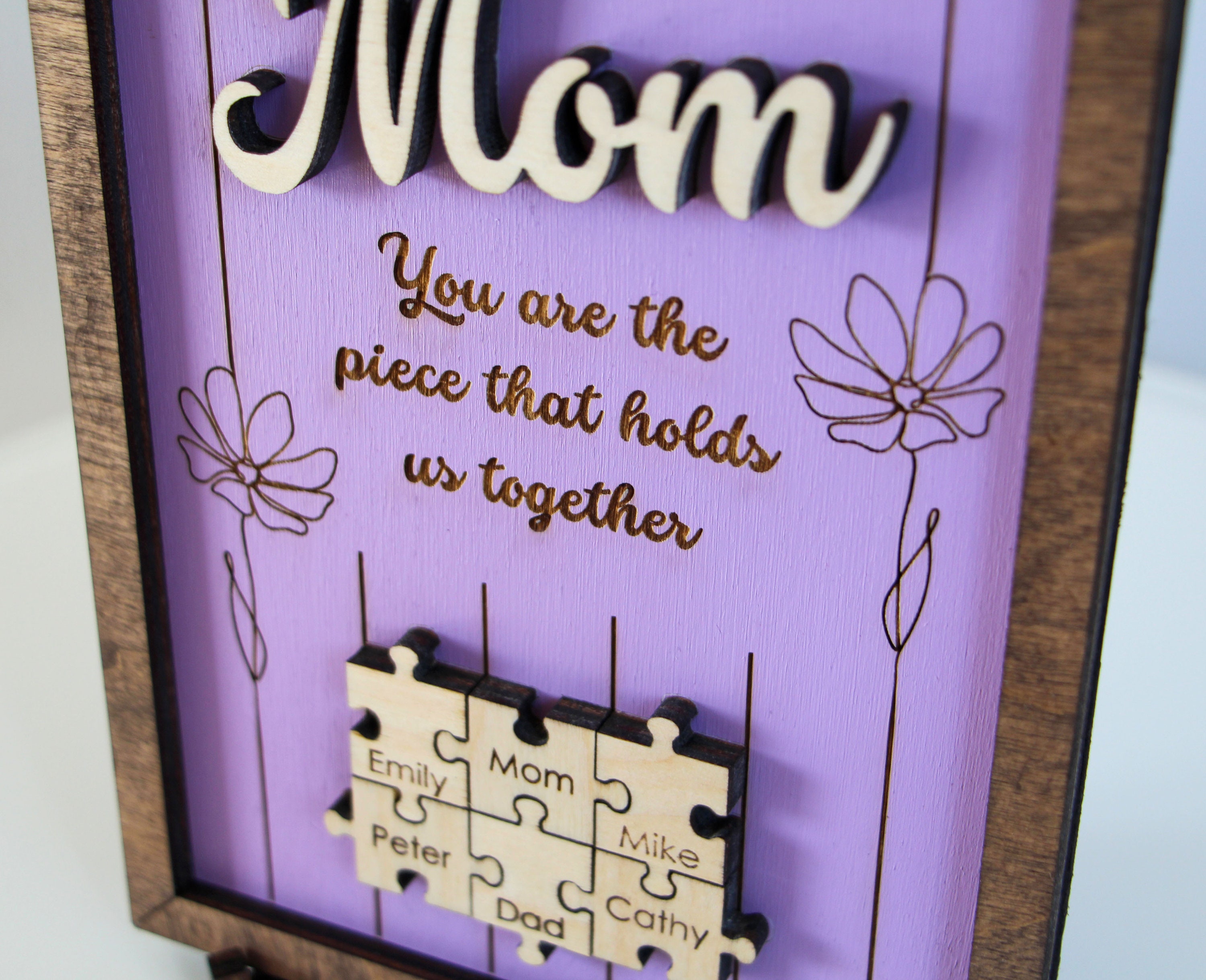 Personalized Mom Puzzle Sign is made from high-quality birch plywood, which is a sustainable product. The sign is made entirely by hand labor, making your purchase unique.