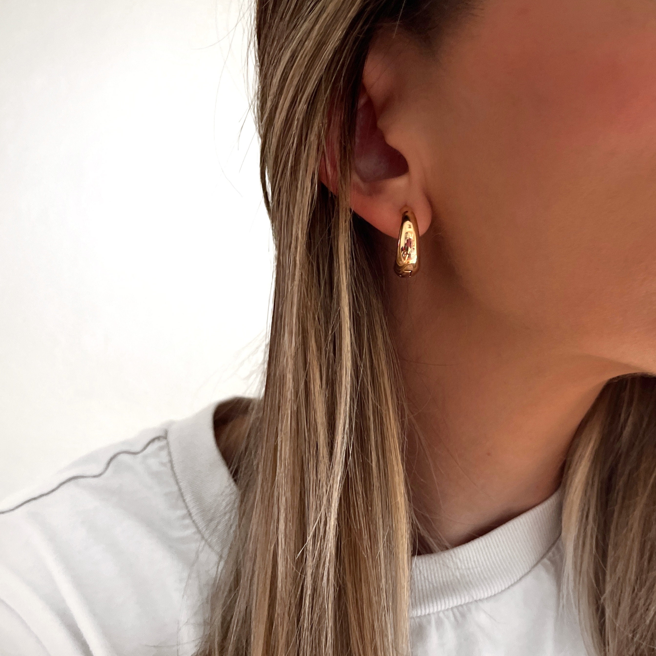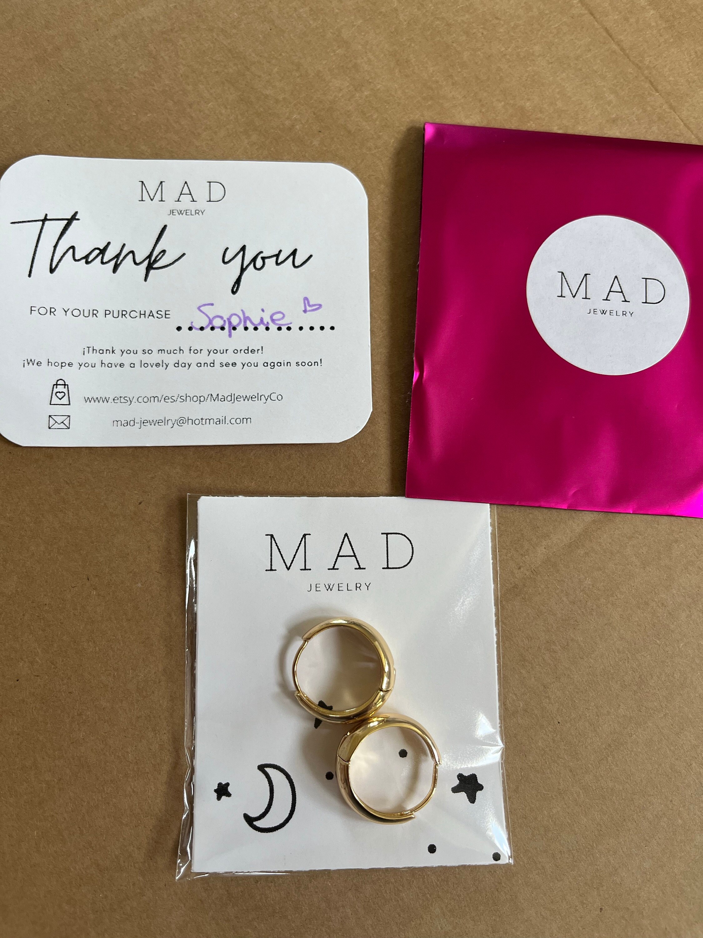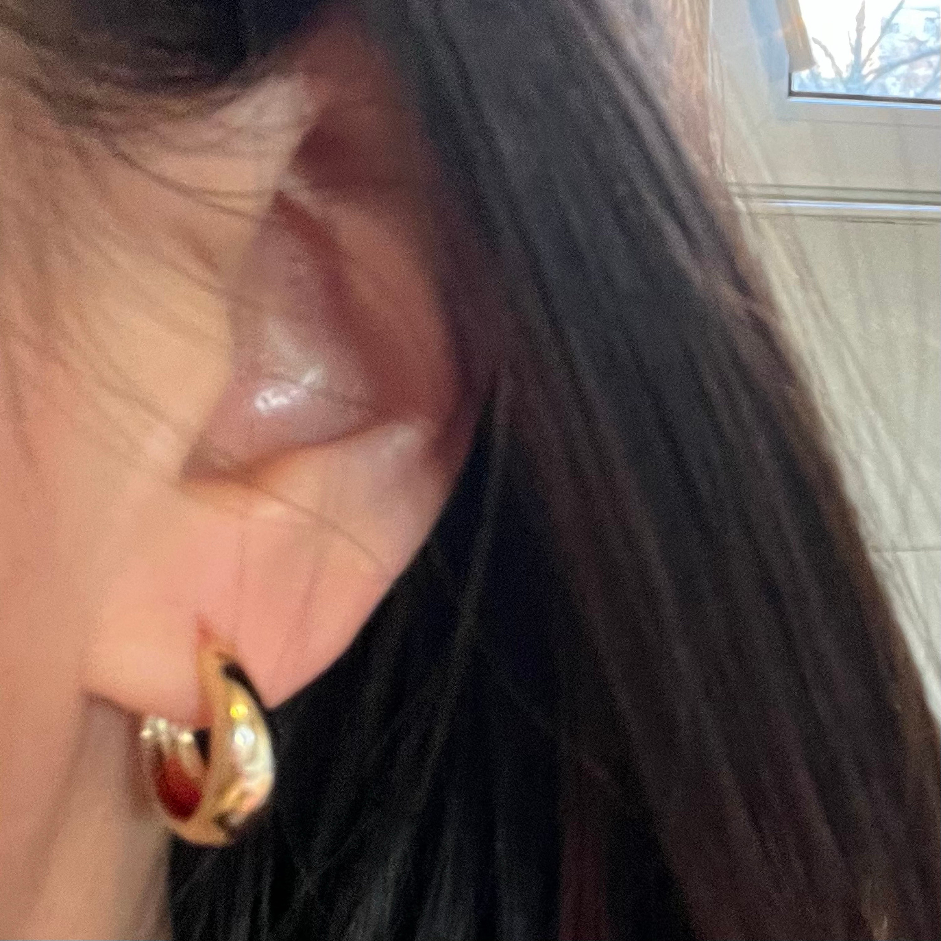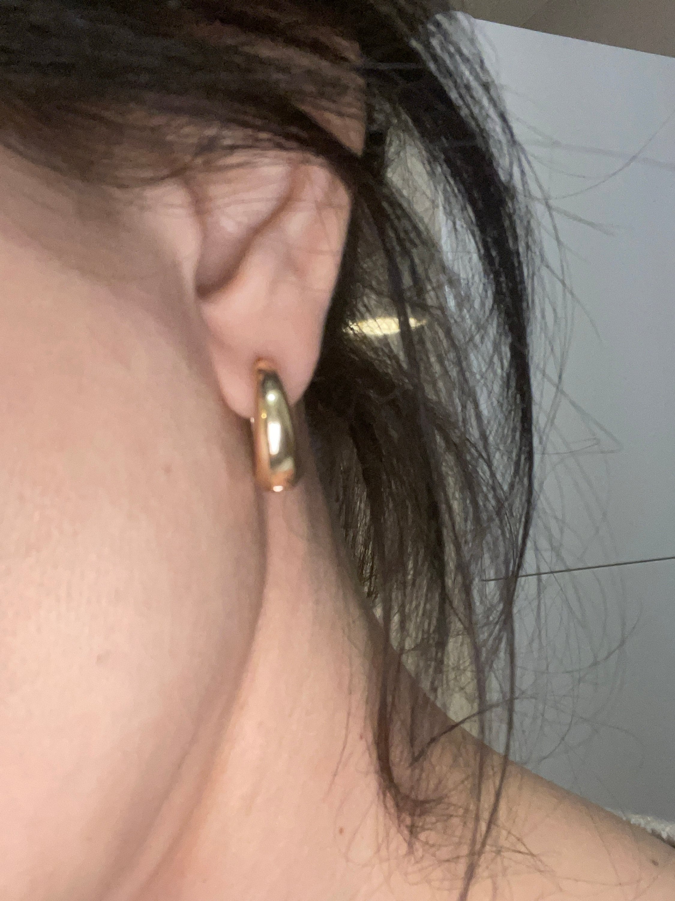 Our earrings are thick hoop earrings with snap-on clasps, very comfortable to wear, with a simple and modern style.