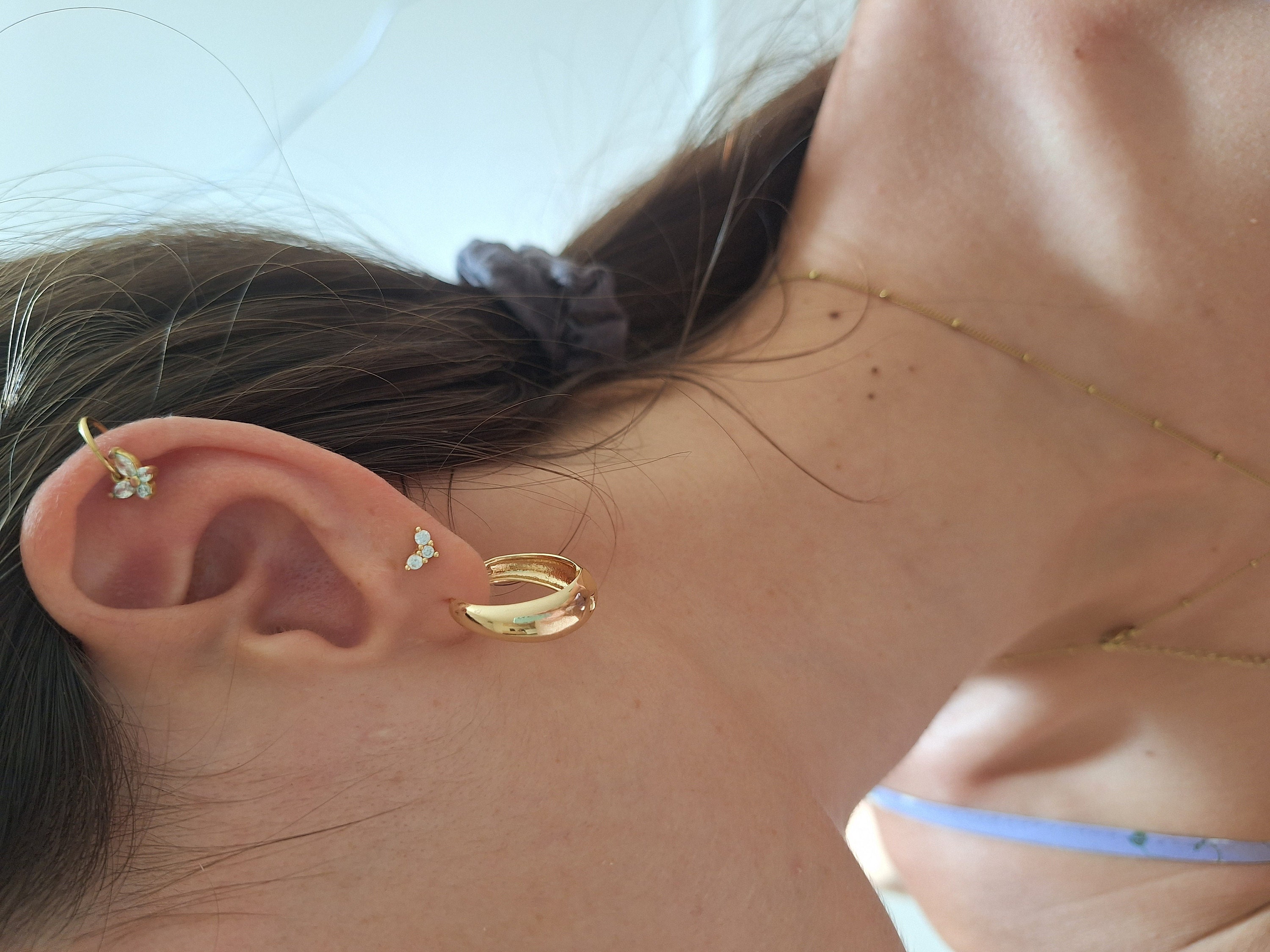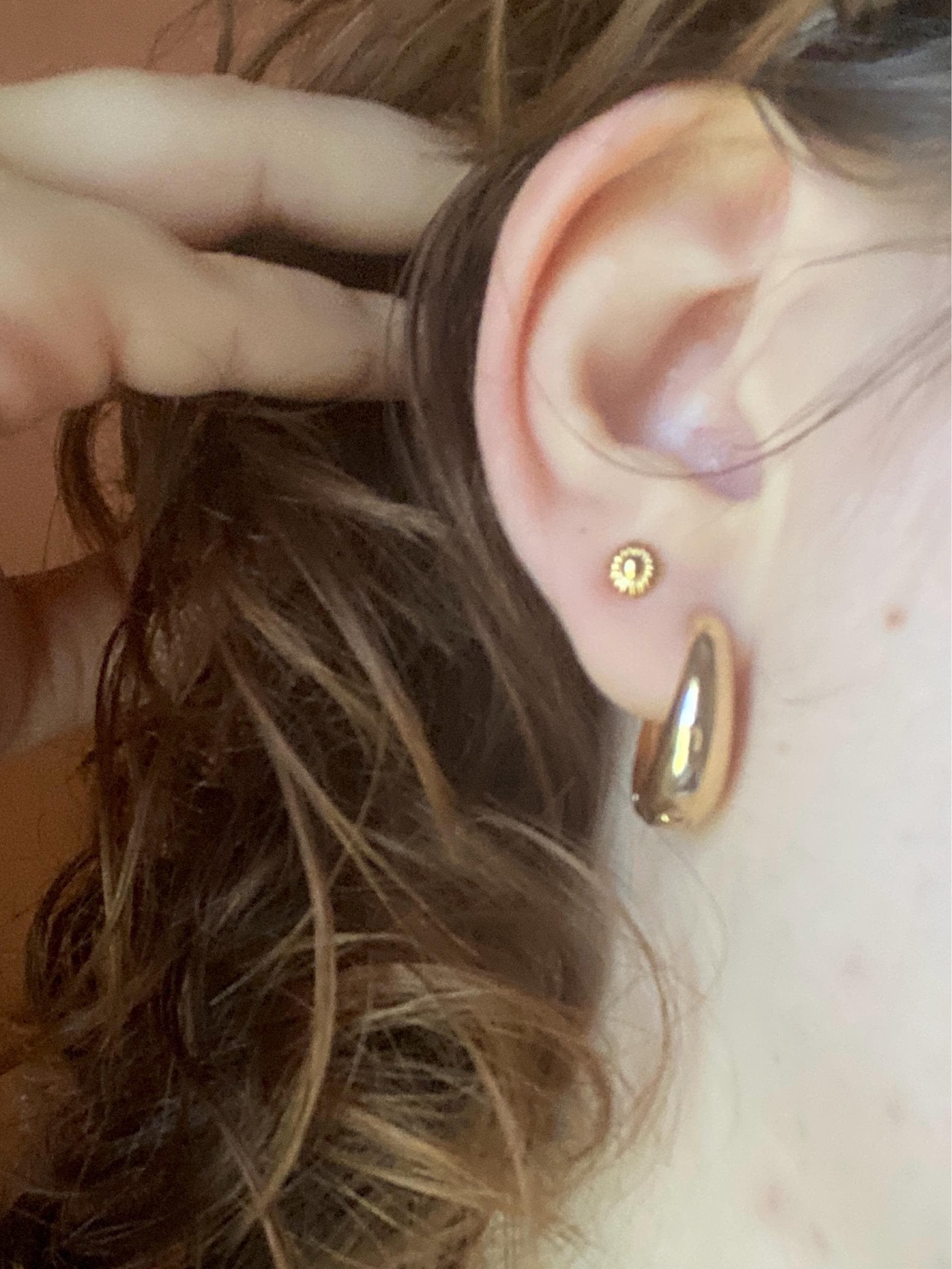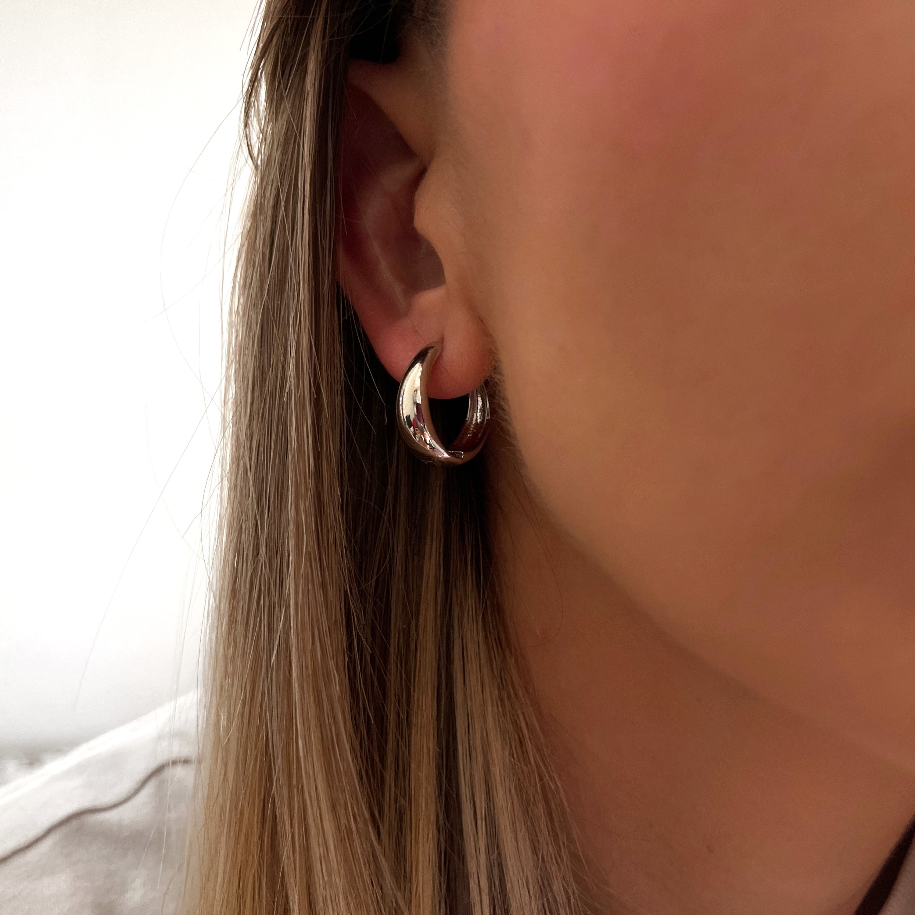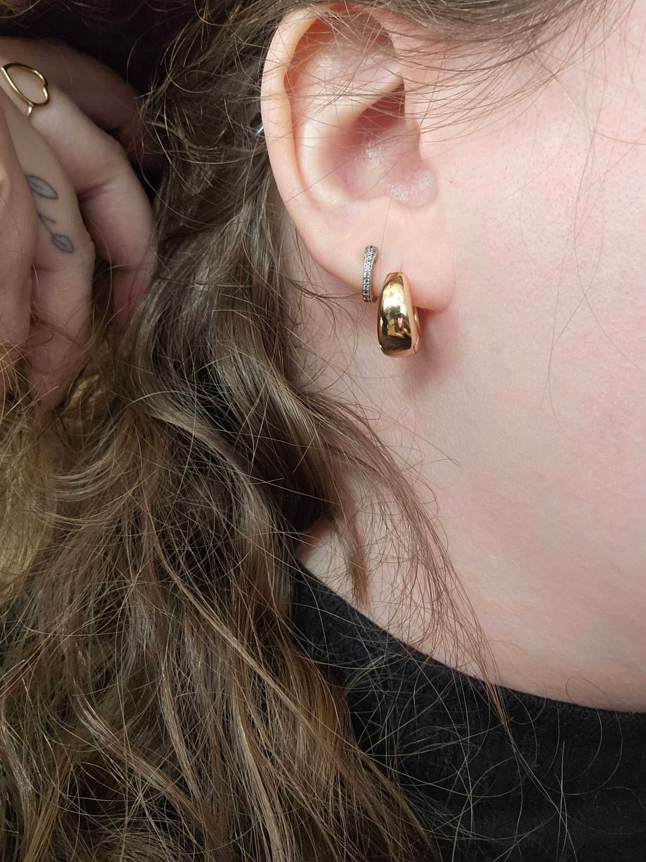 Our earrings are thick hoop earrings with snap-on clasps, very comfortable to wear, with a simple and modern style.