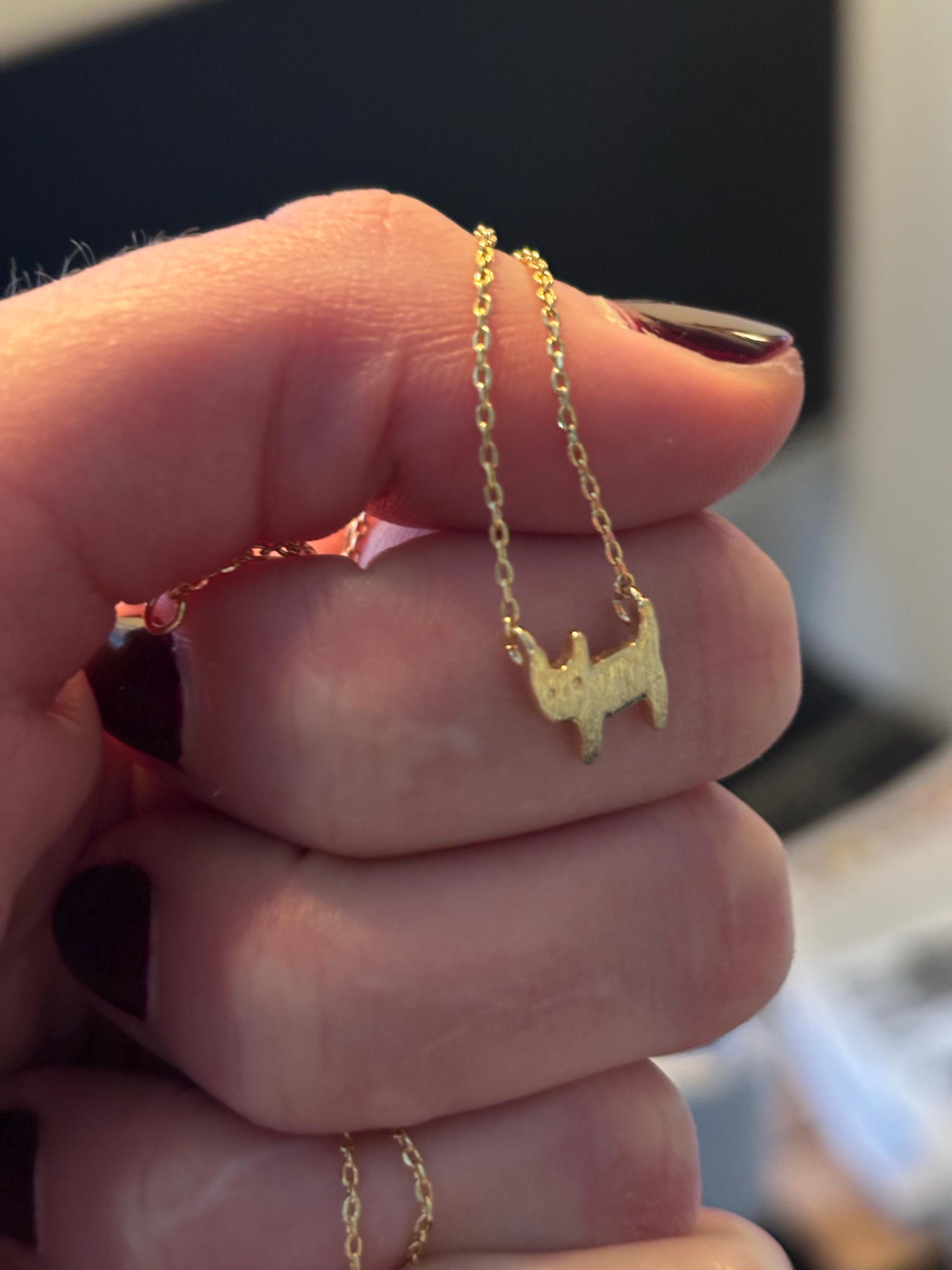 Adorable Brushed Kitten Pendant Necklace. This adorable necklace features a charming cat pendant that has been carefully brushed to create a unique and textured look.