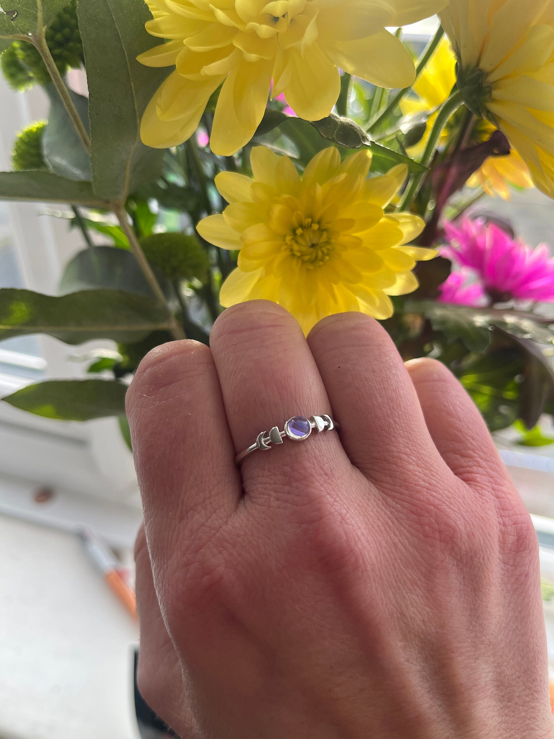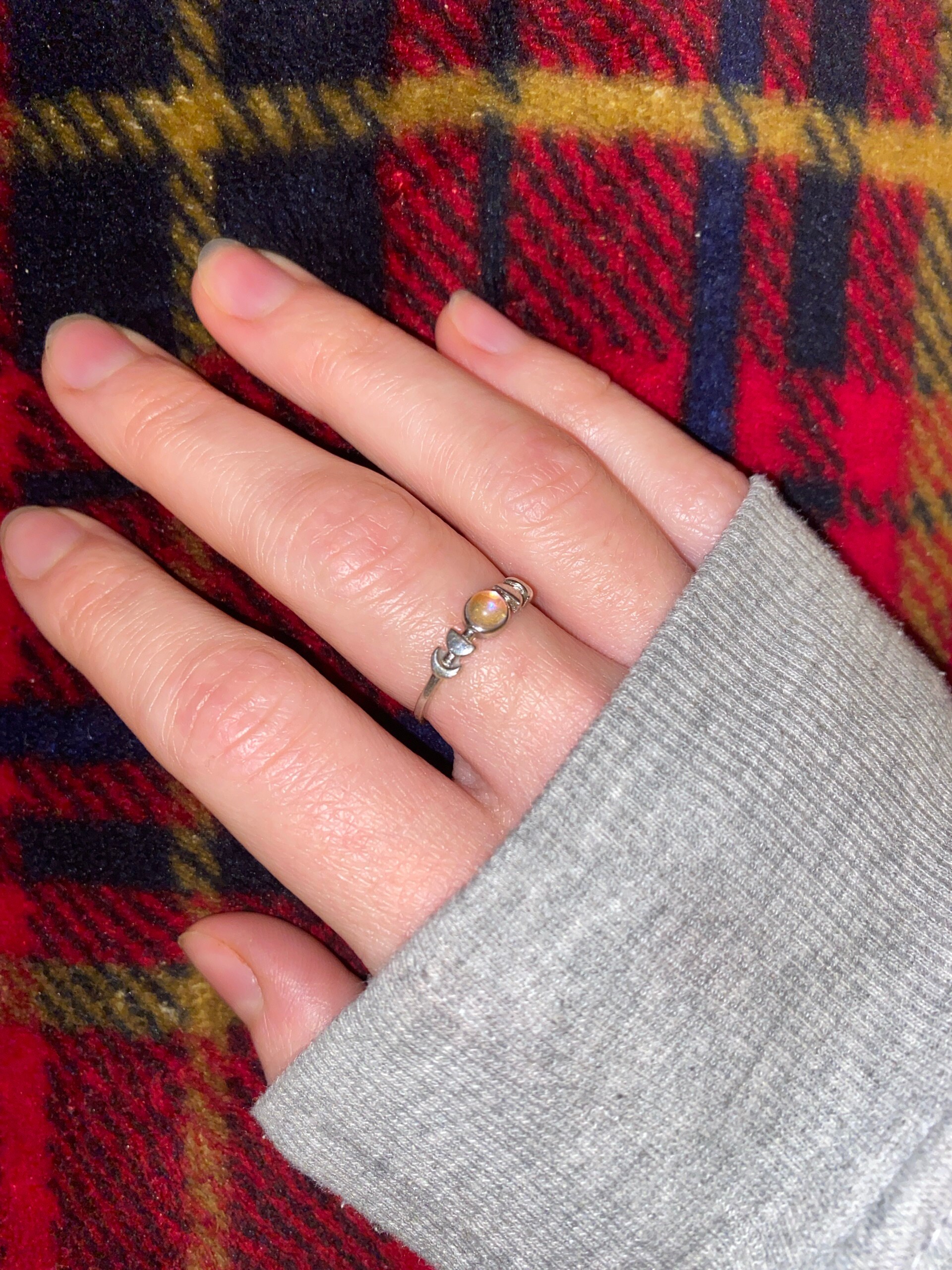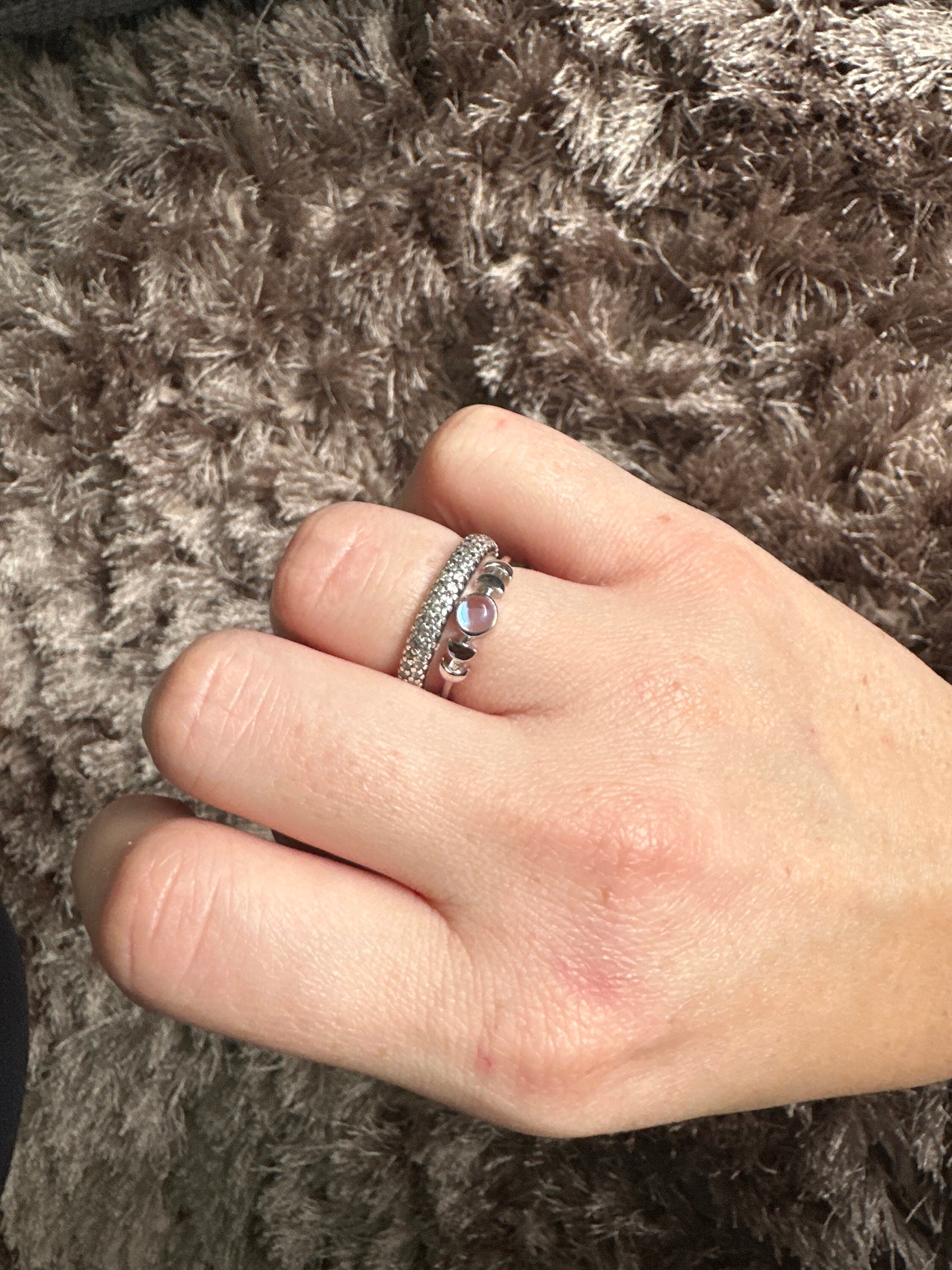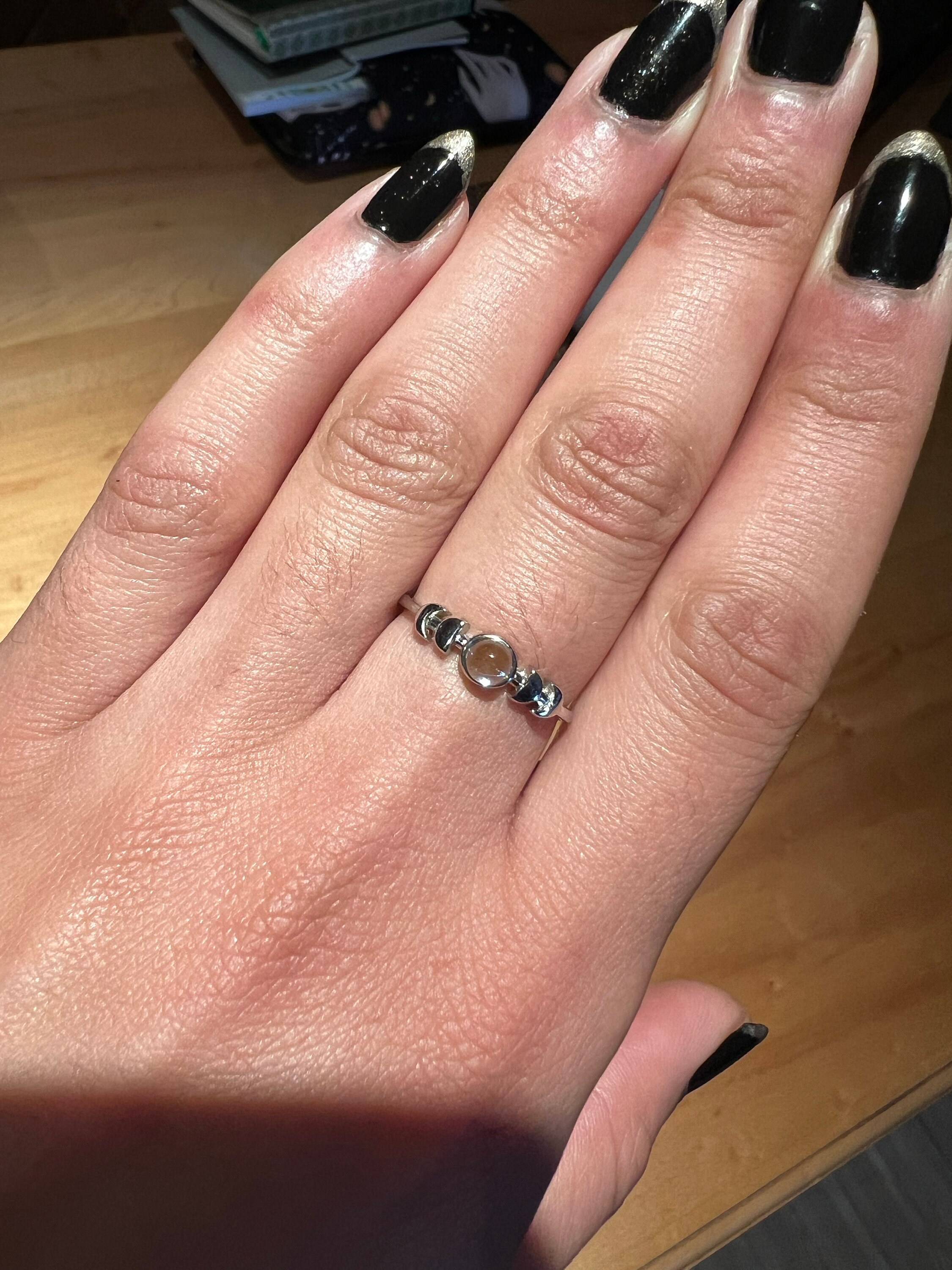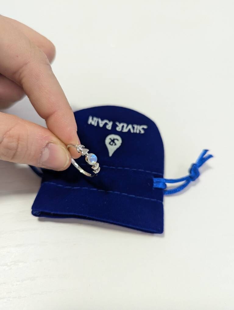Sterling Silver Moon Phase Ring with Simulated Moonstone, Adjustable Size, Celestial Jewellery, Dainty and Delicate, Moon Ring