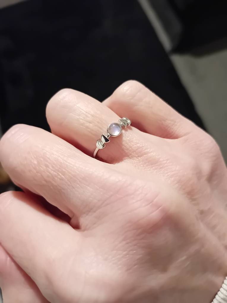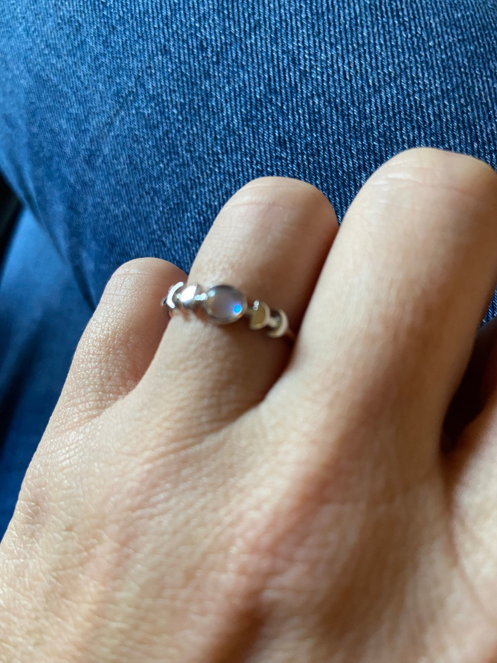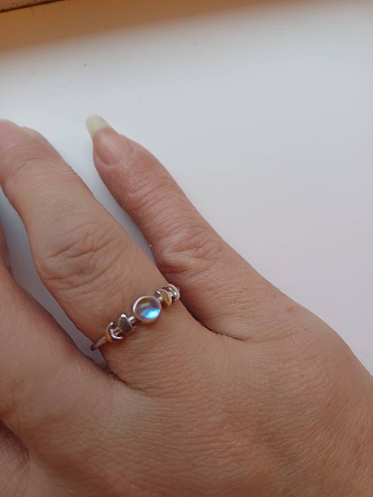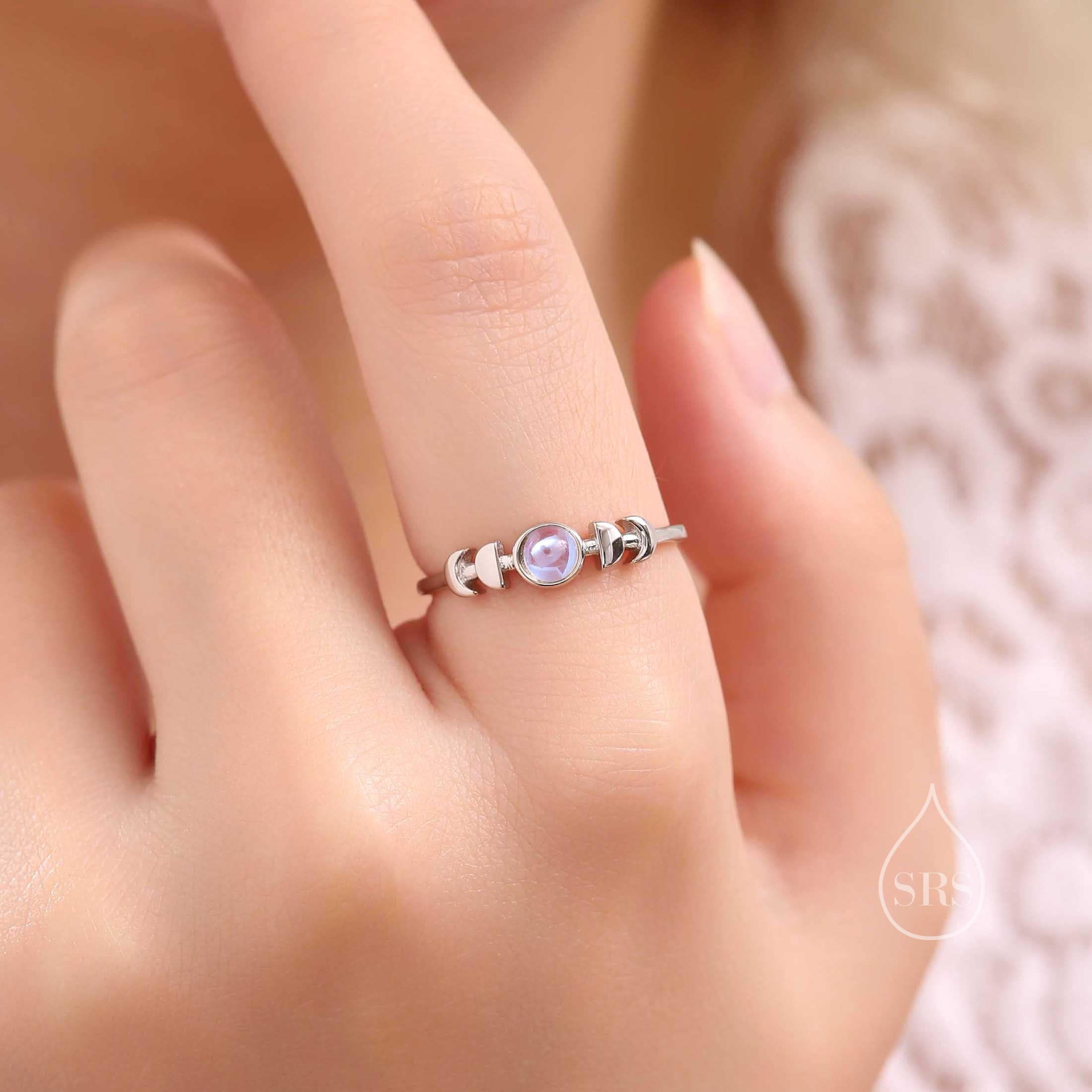 Sterling Silver Moon Phase Ring with Simulated Moonstone, Adjustable Size, Celestial Jewelry, Delicate and Fine, Moon Ring