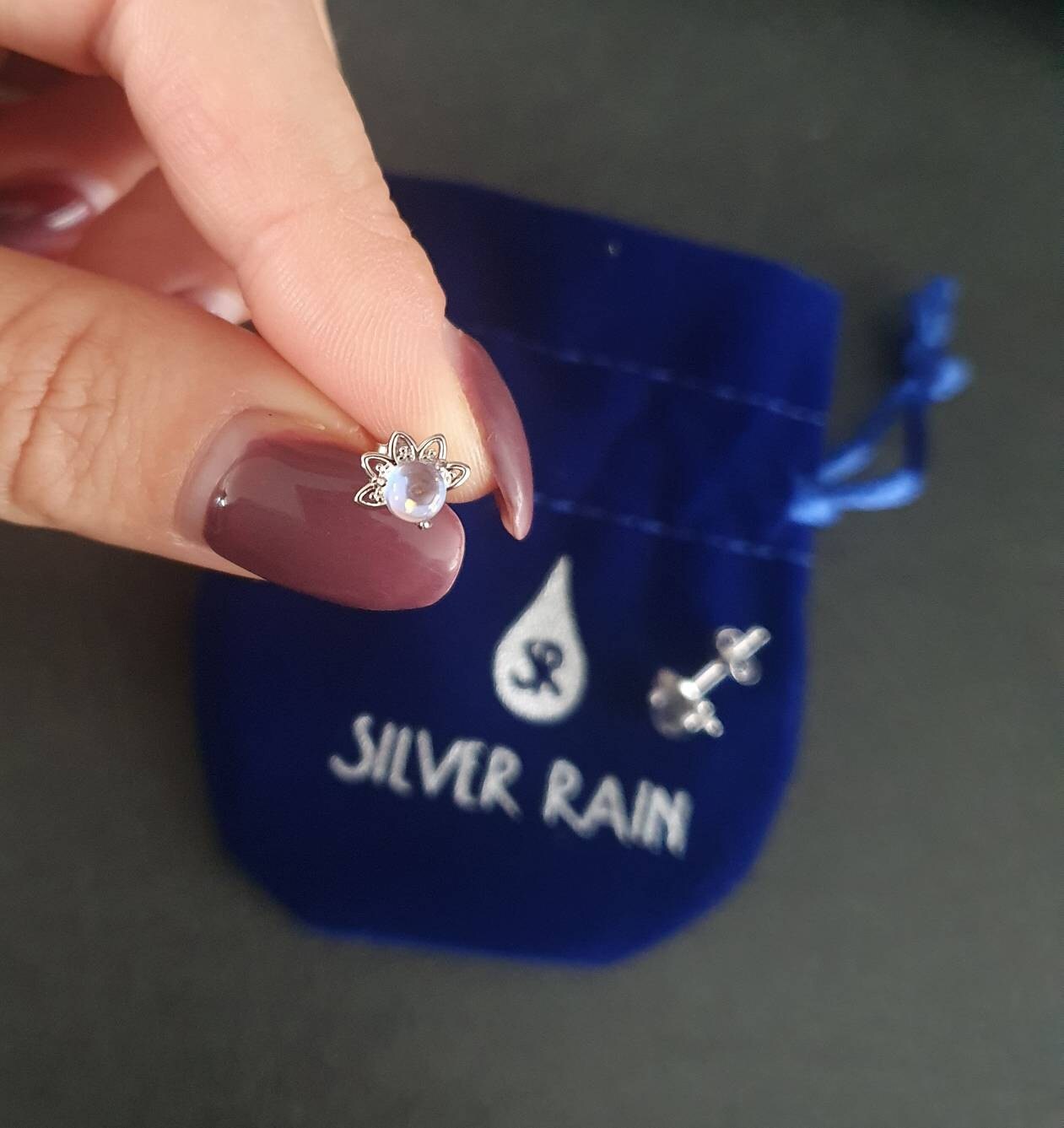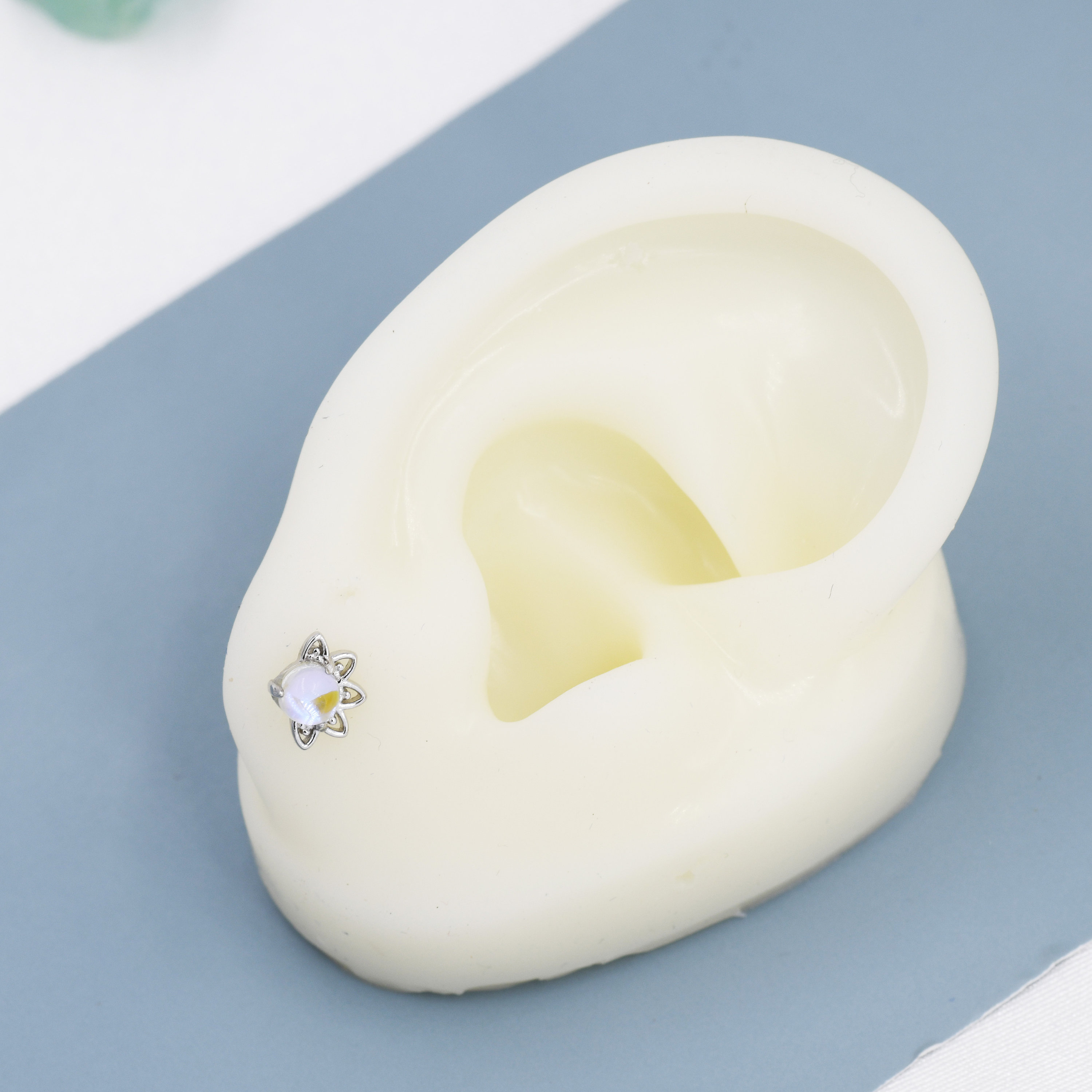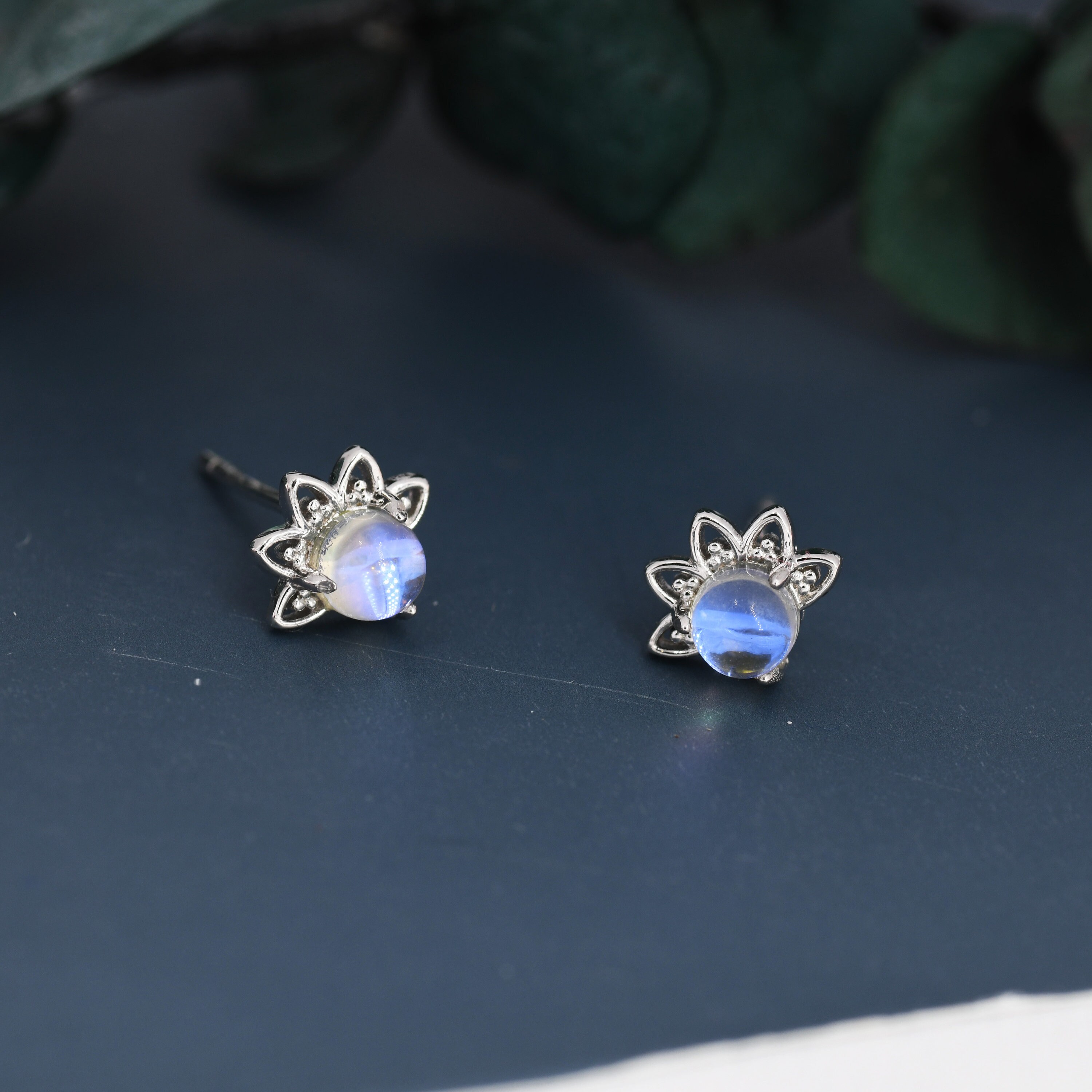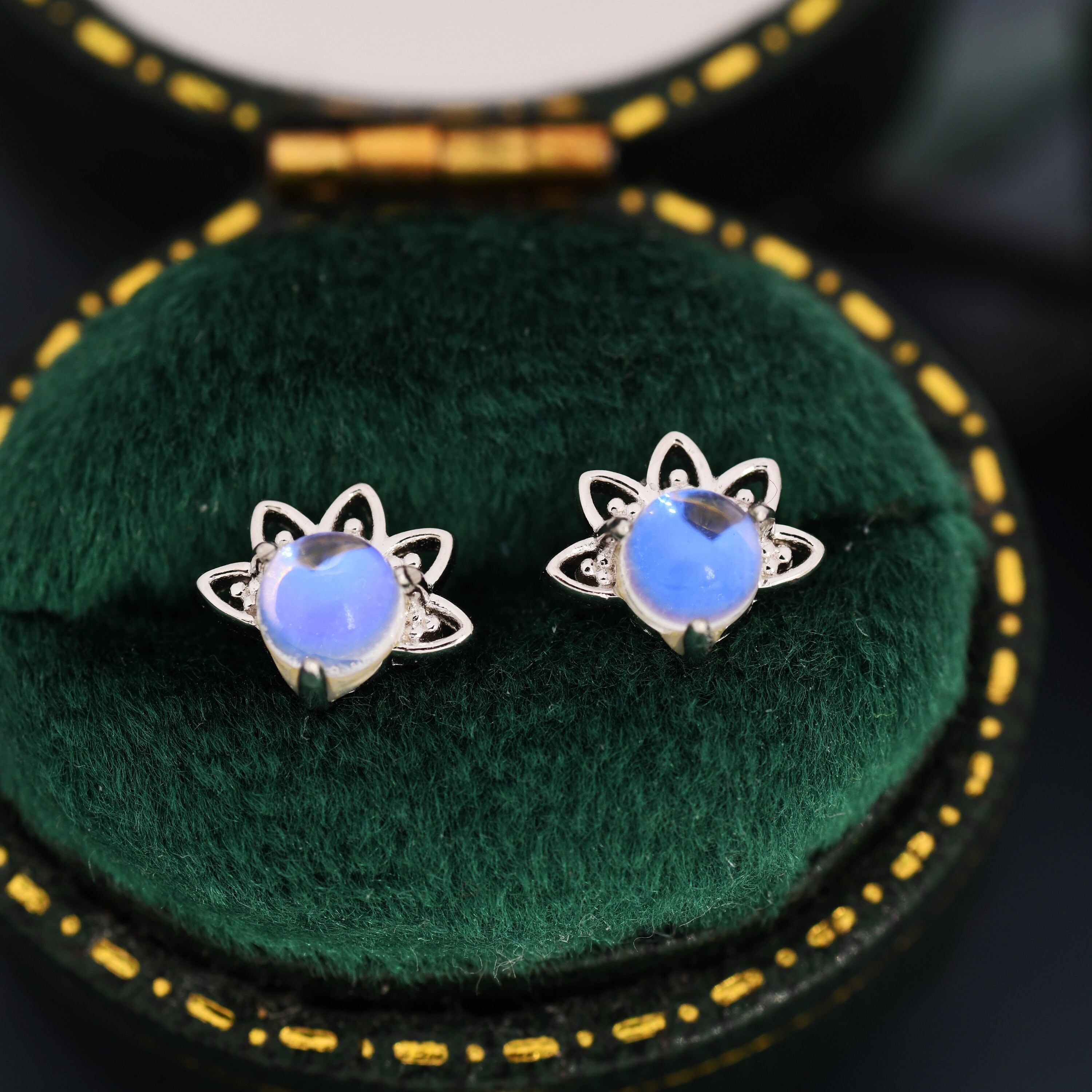 Sterling Silver Moonstone Crown Stud Earrings, Prong Set, Mermaid Colour Earrings, Simulated Moonstone Glass Earrings, Minimalist