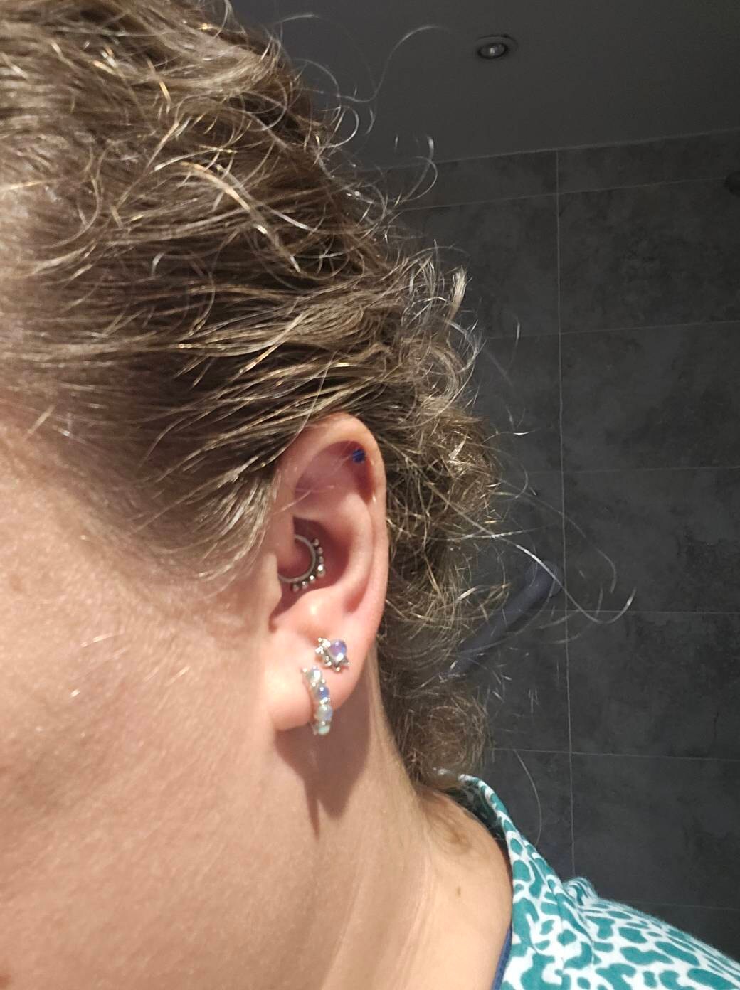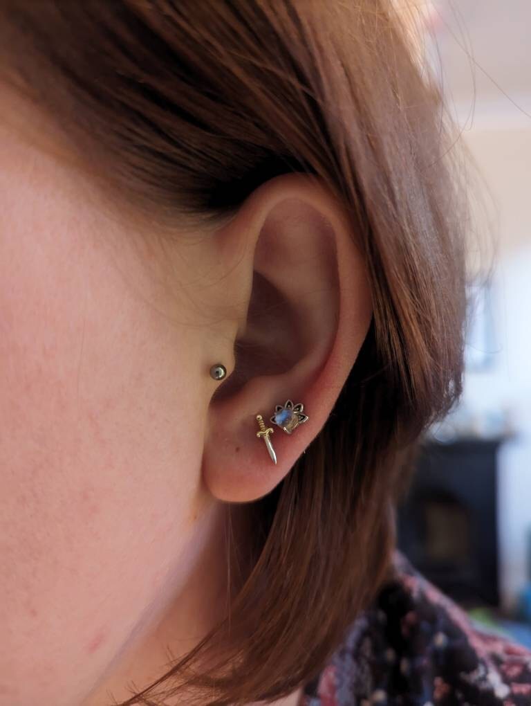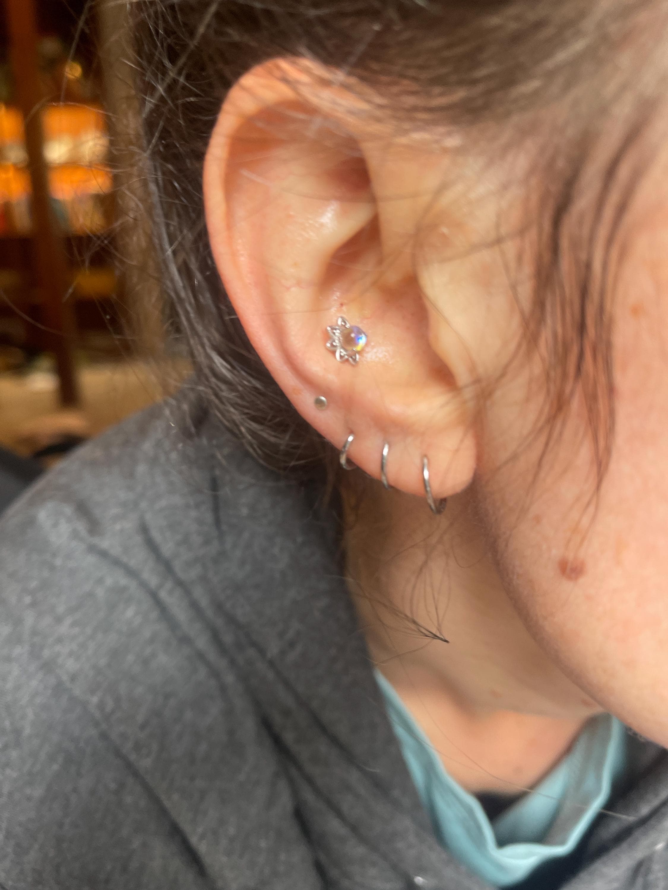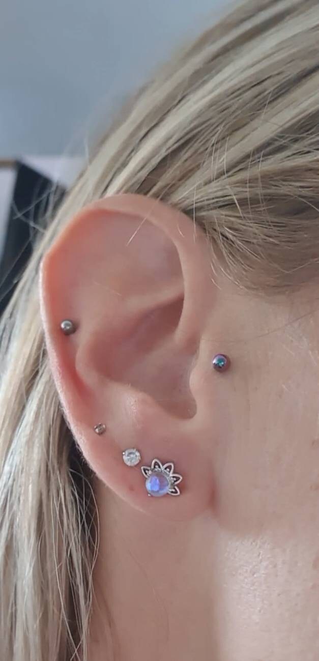 A simply exquisite pair of minimalist stud earrings with a stunning iridescent glow, perfect for everyday wear.