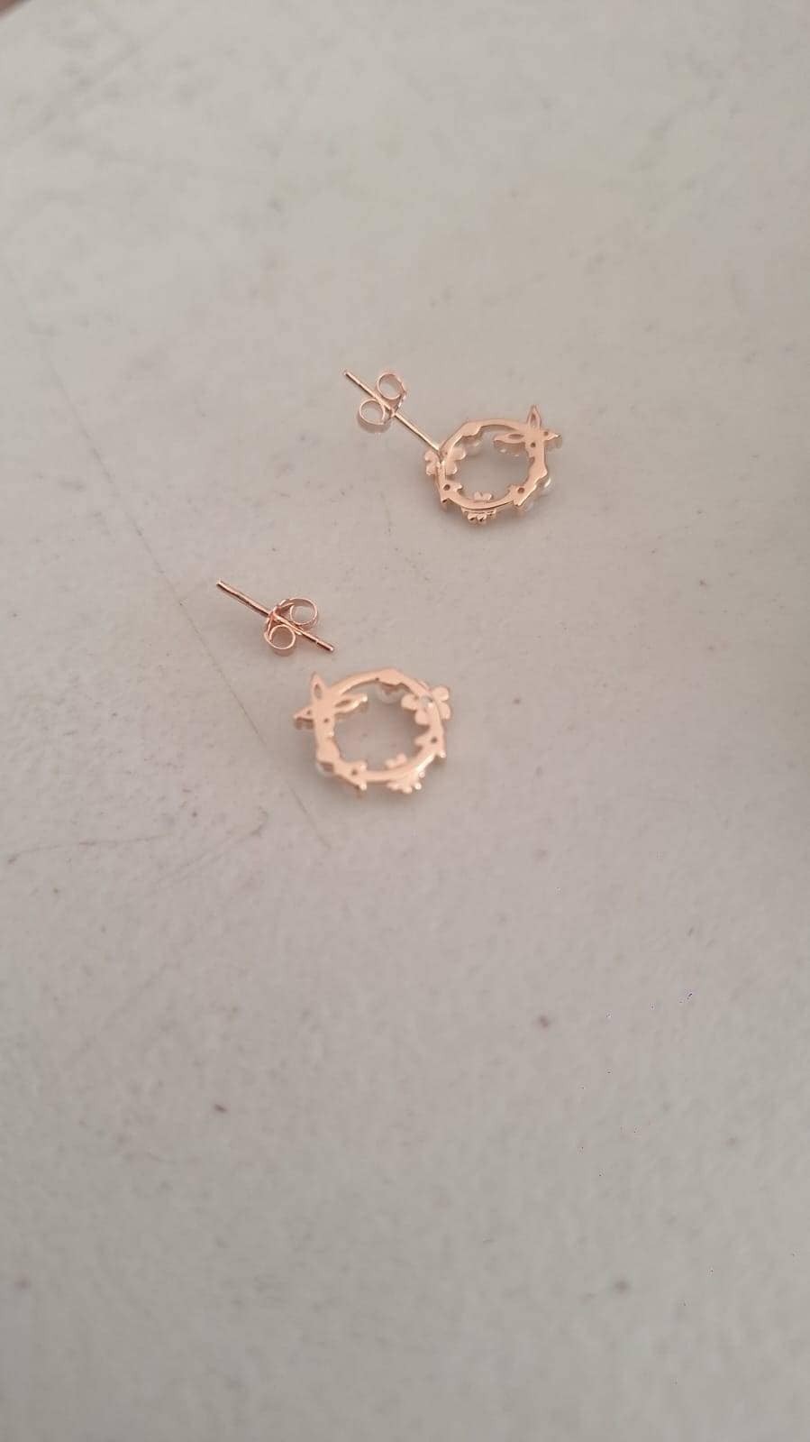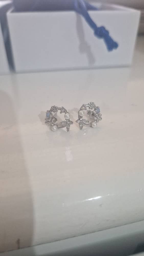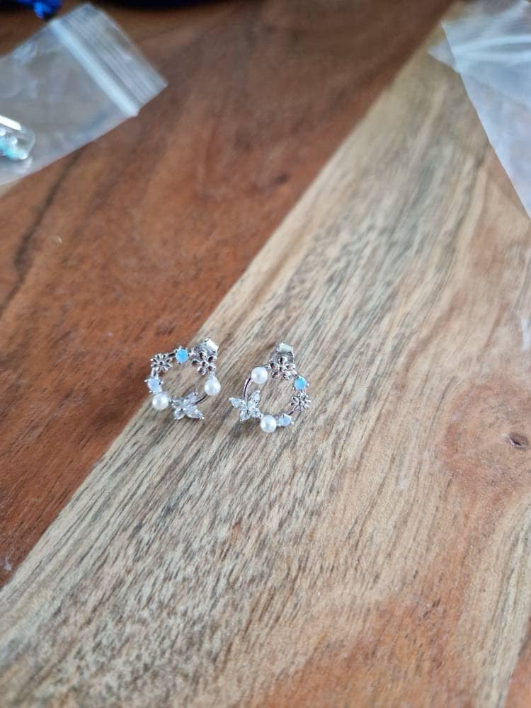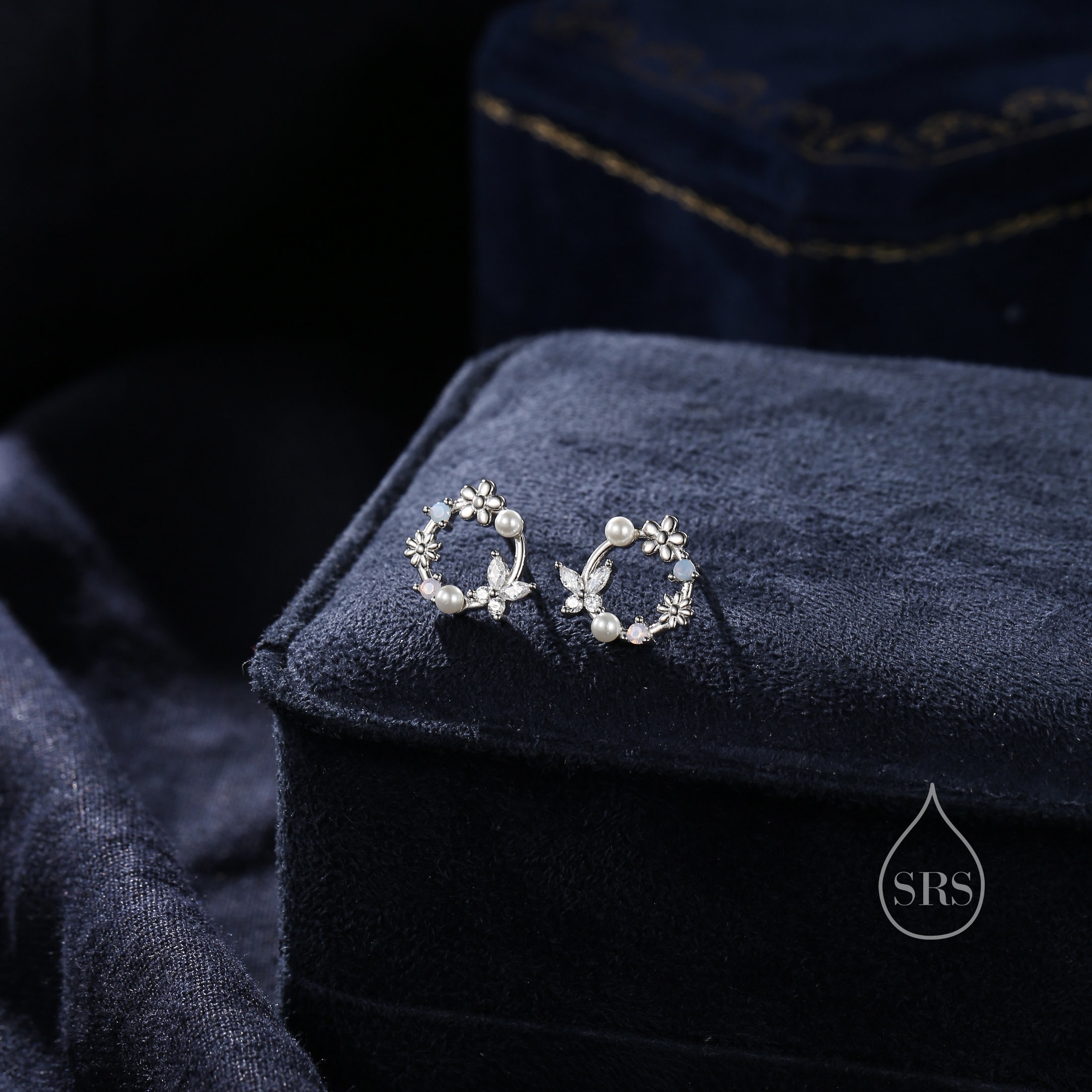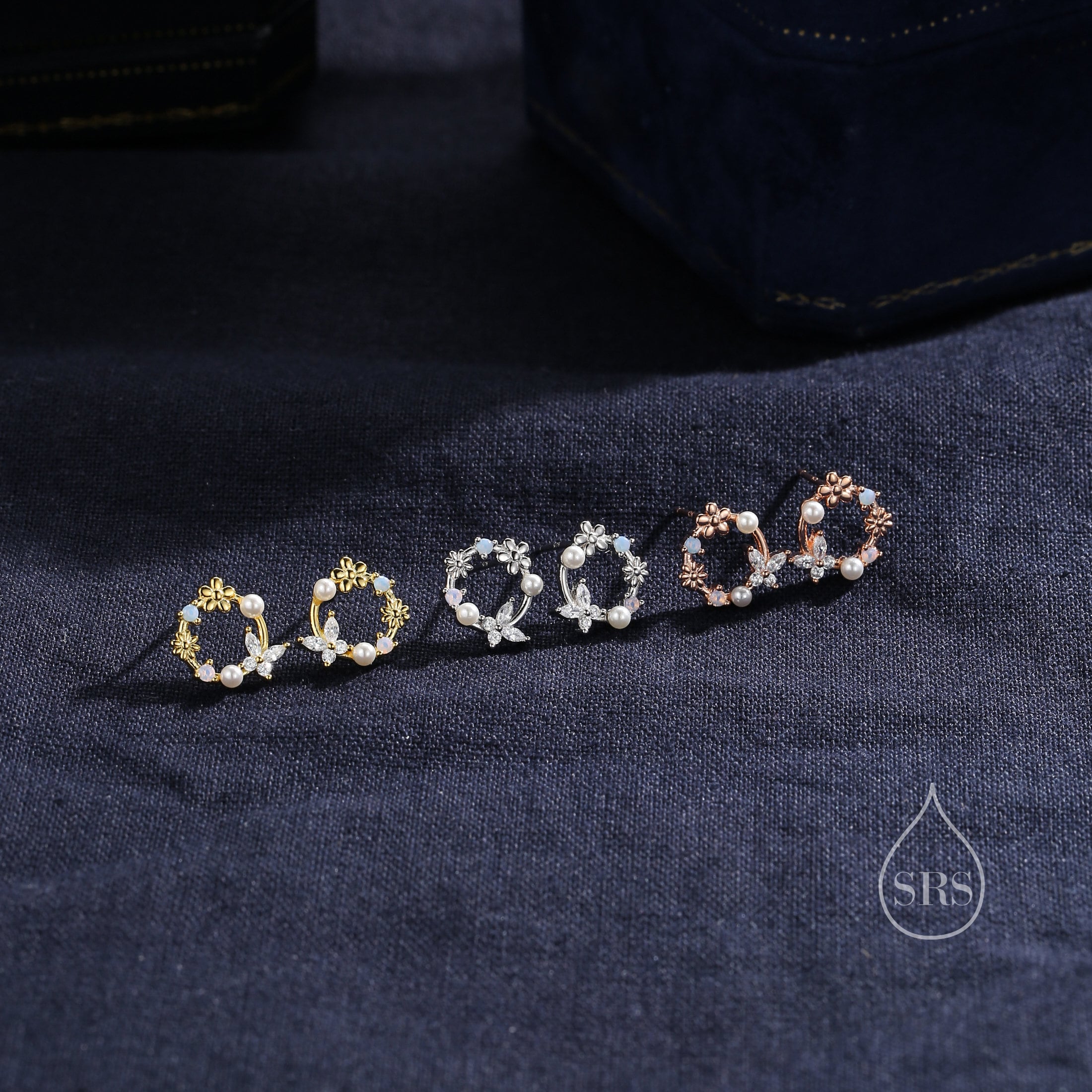 A pair of exquisite earrings in a wreath design. Sterling Silver Small Wreath Stud Earrings - Silver or Gold or Rose Gold, CZ Round Flower and Butterfly Stud Earrings