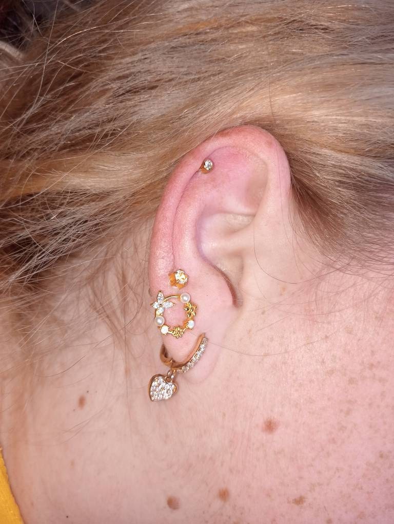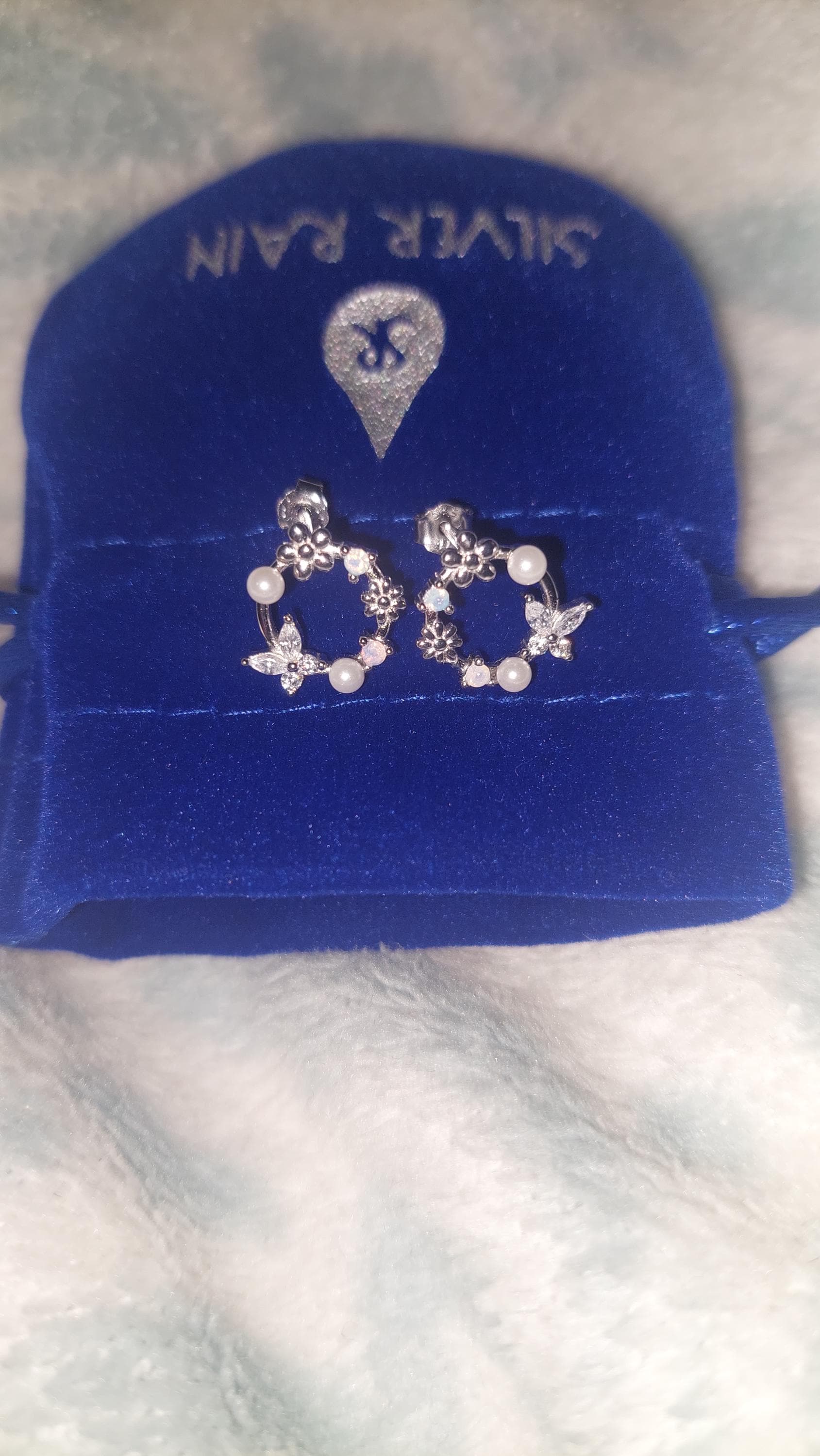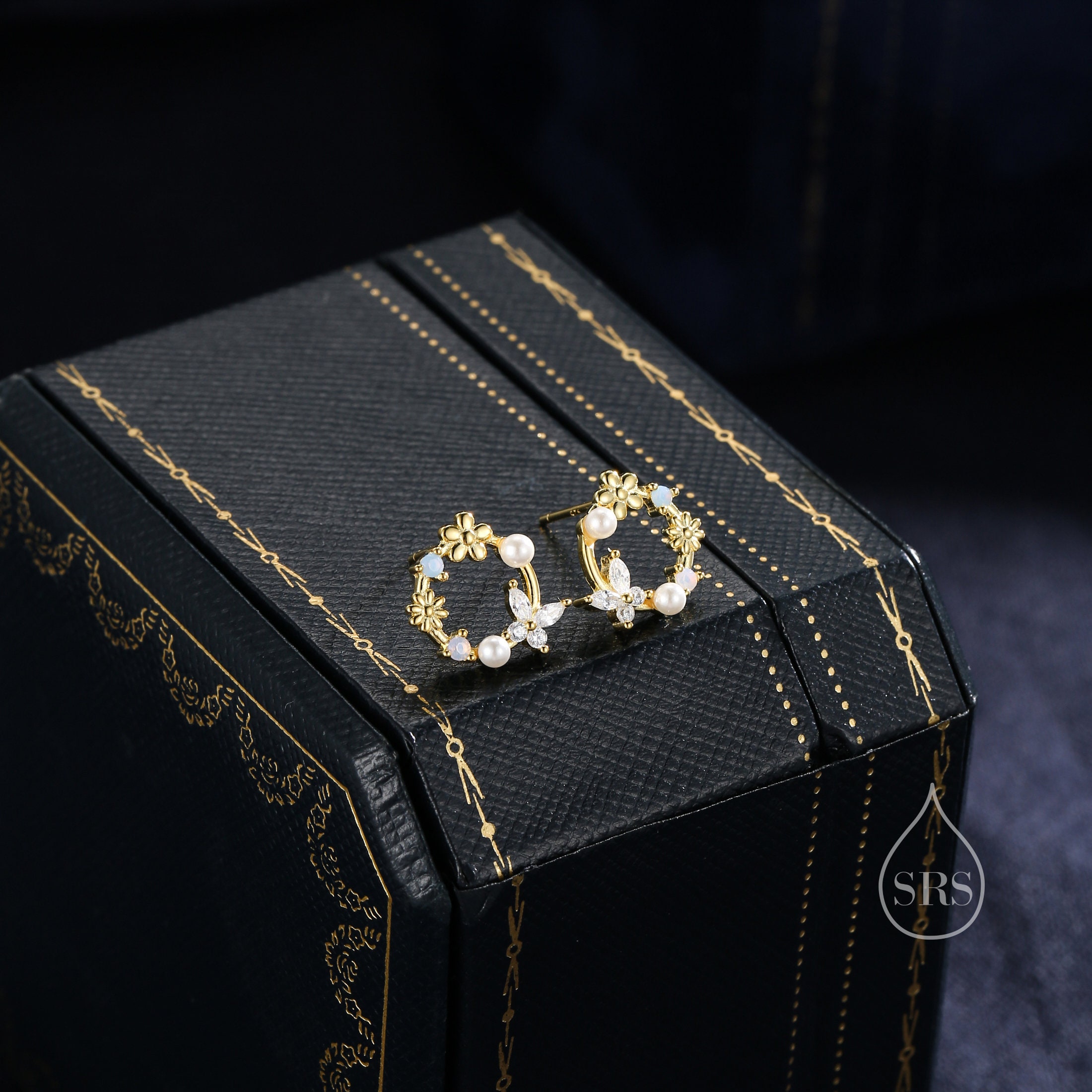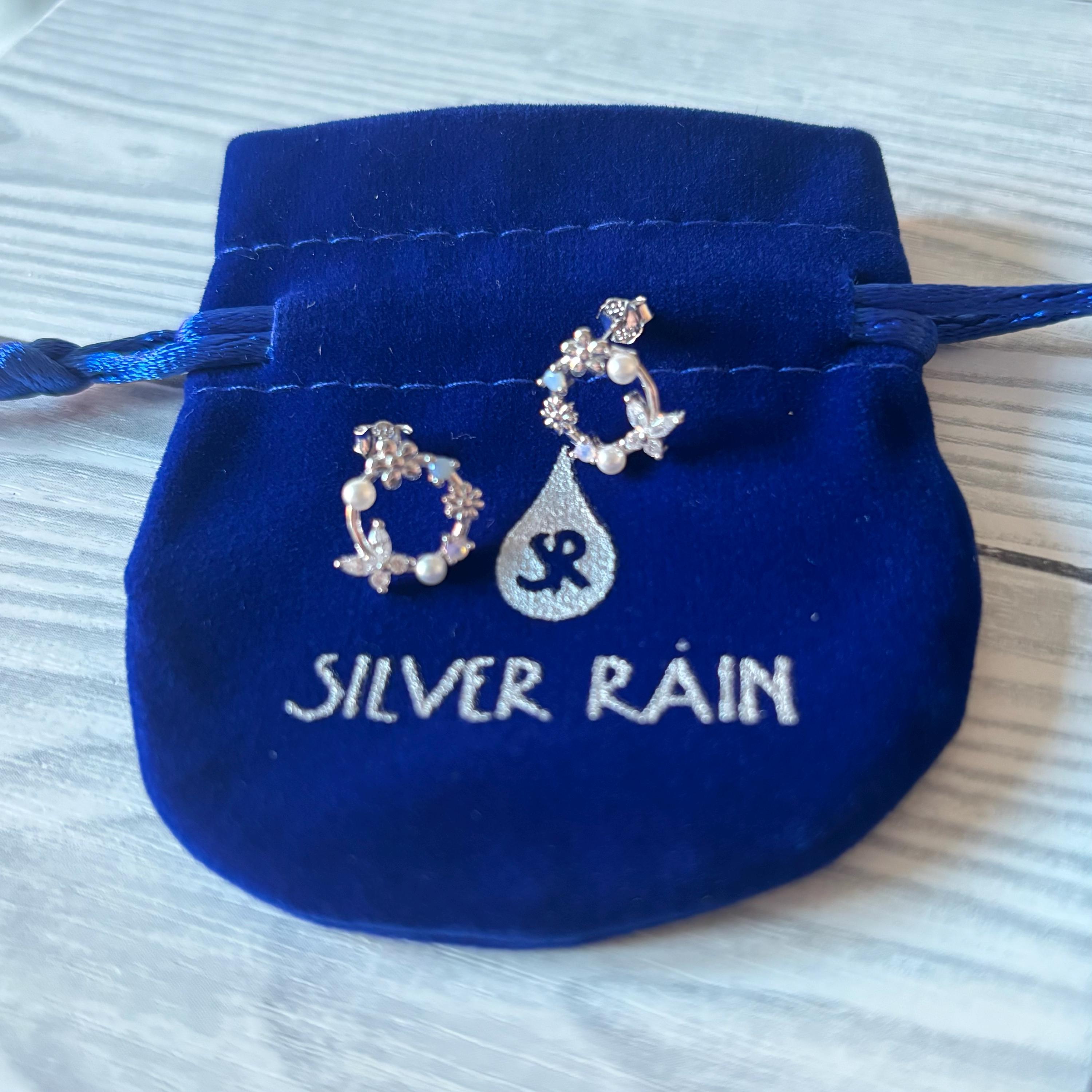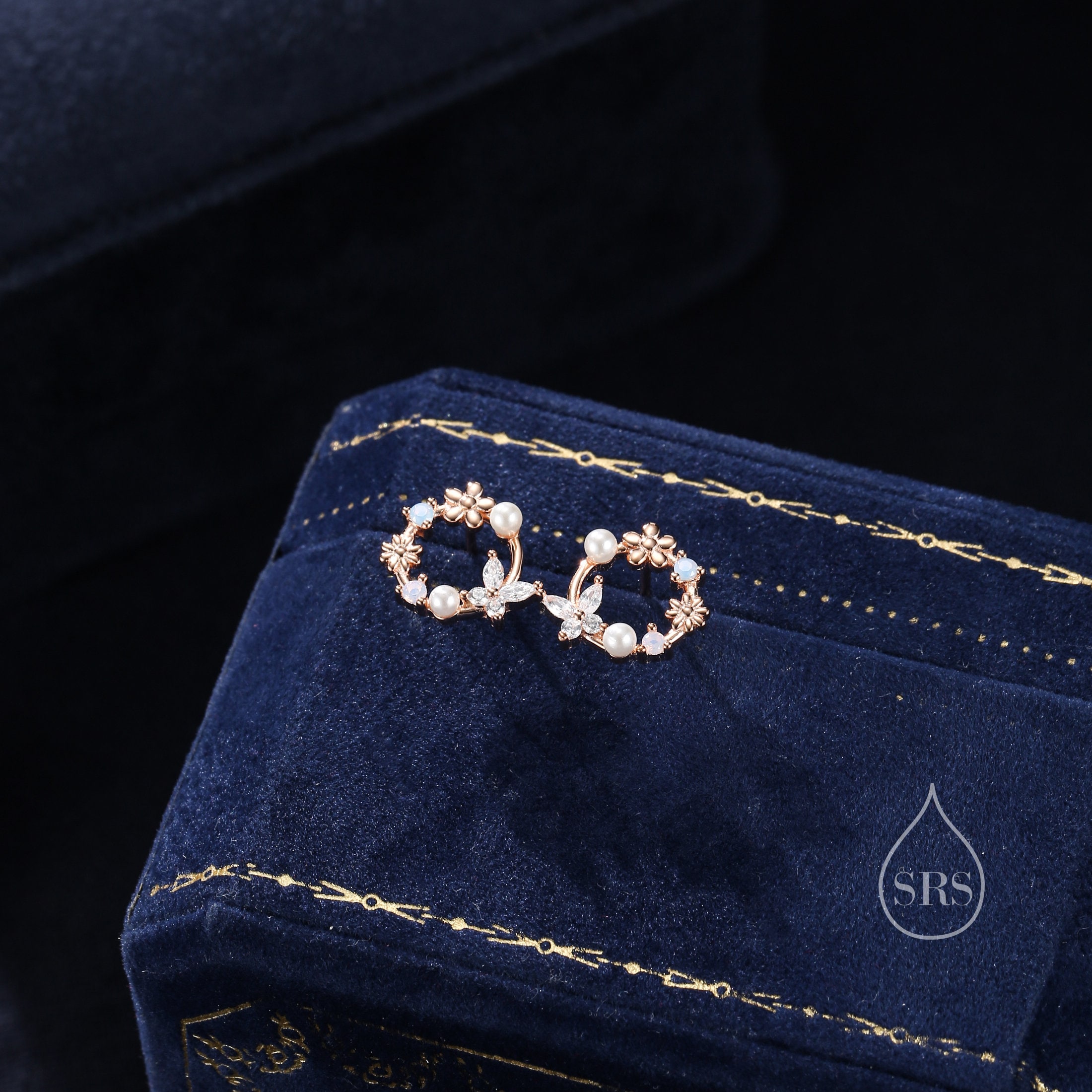 A pair of exquisite earrings in a wreath design. Sterling Silver Small Wreath Stud Earrings - Silver or Gold or Rose Gold, CZ Round Flower and Butterfly Stud Earrings