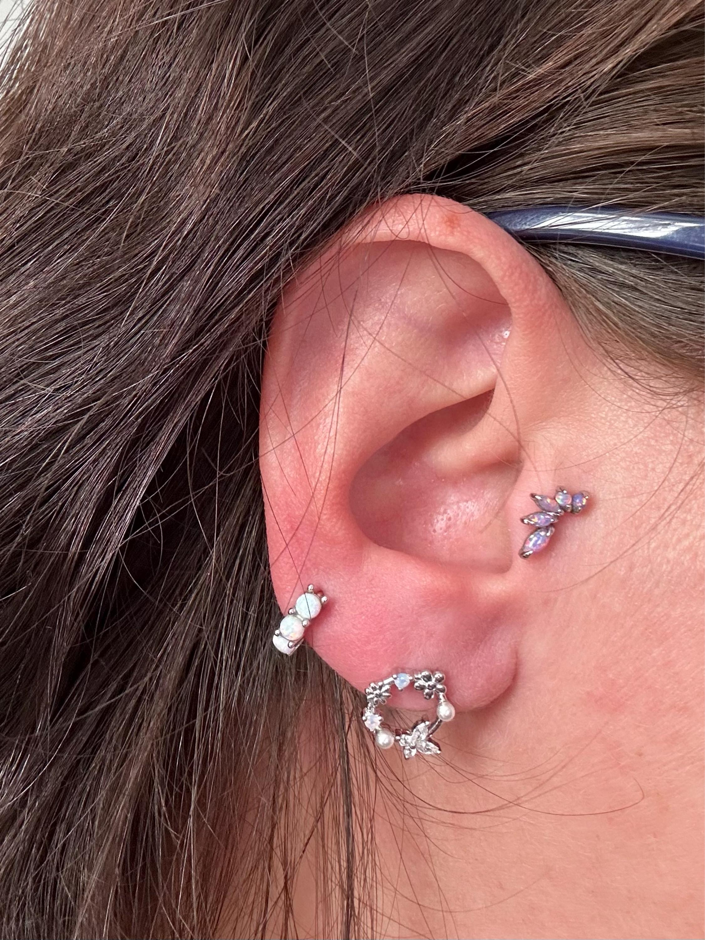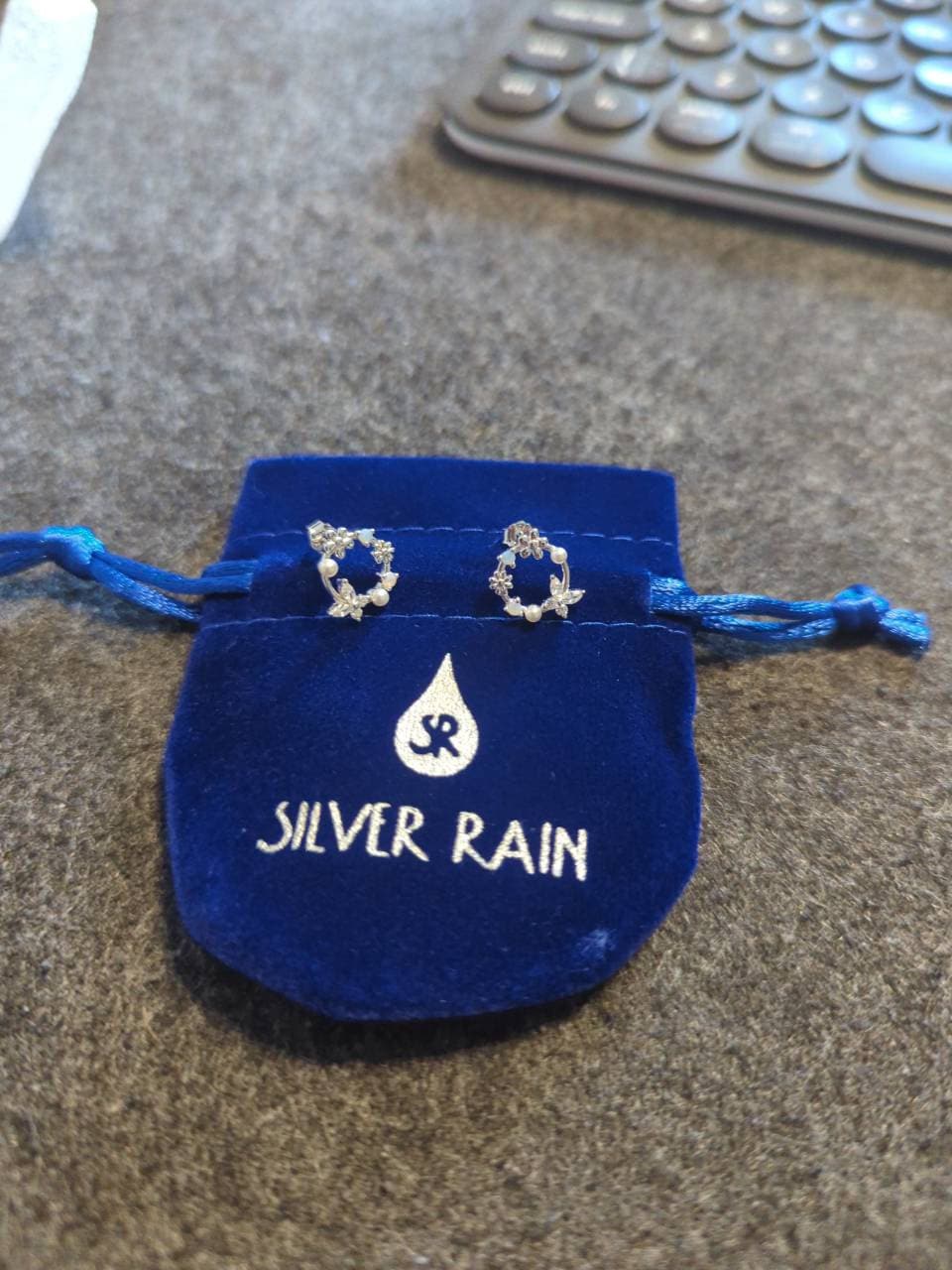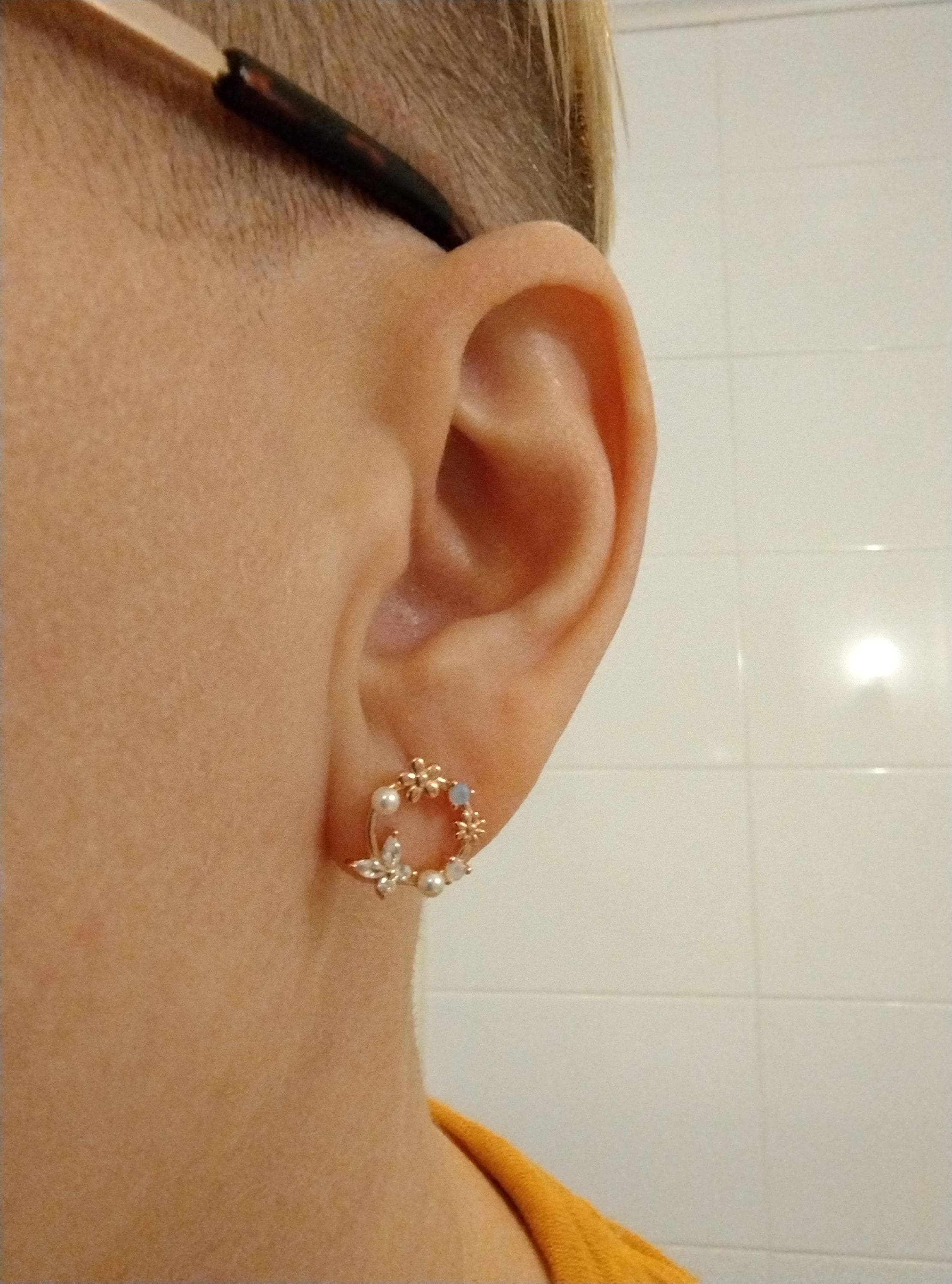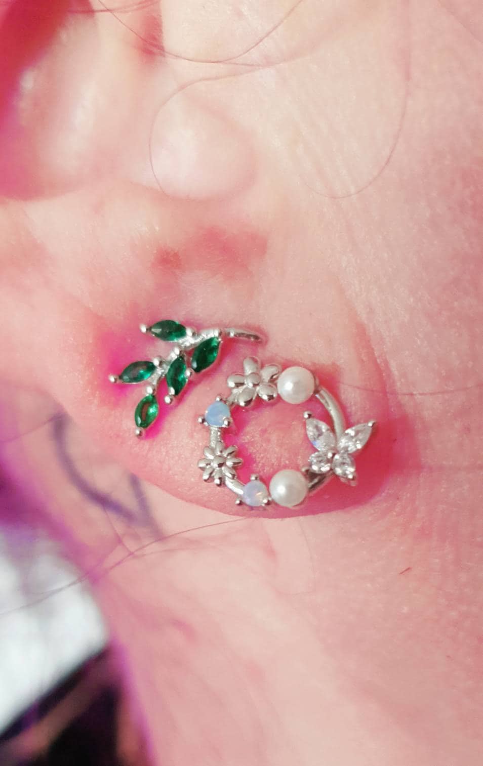 A pair of exquisite earrings in a wreath design. Sterling Silver Small Wreath Stud Earrings - Silver or Gold or Rose Gold, CZ Round Flower and Butterfly Stud Earrings