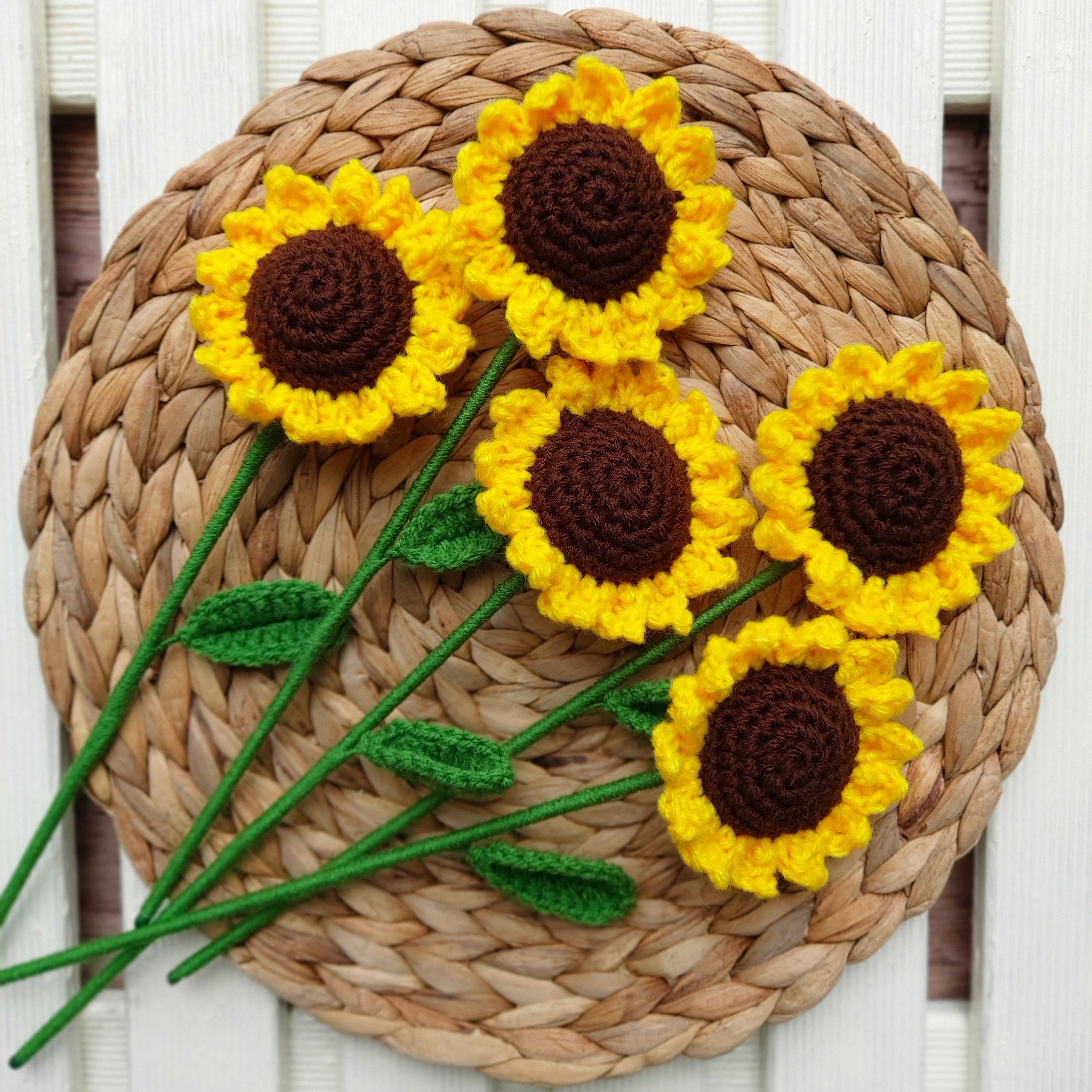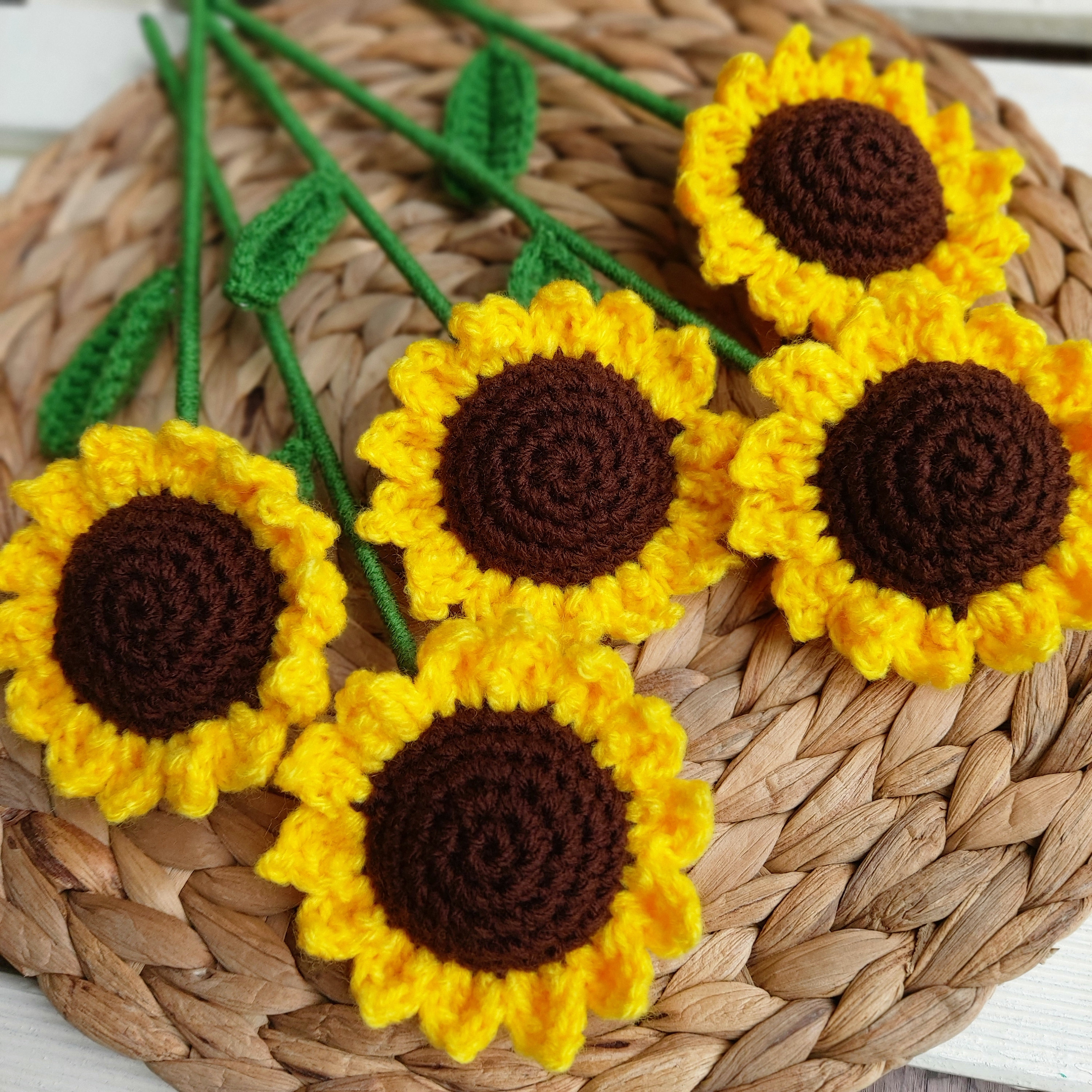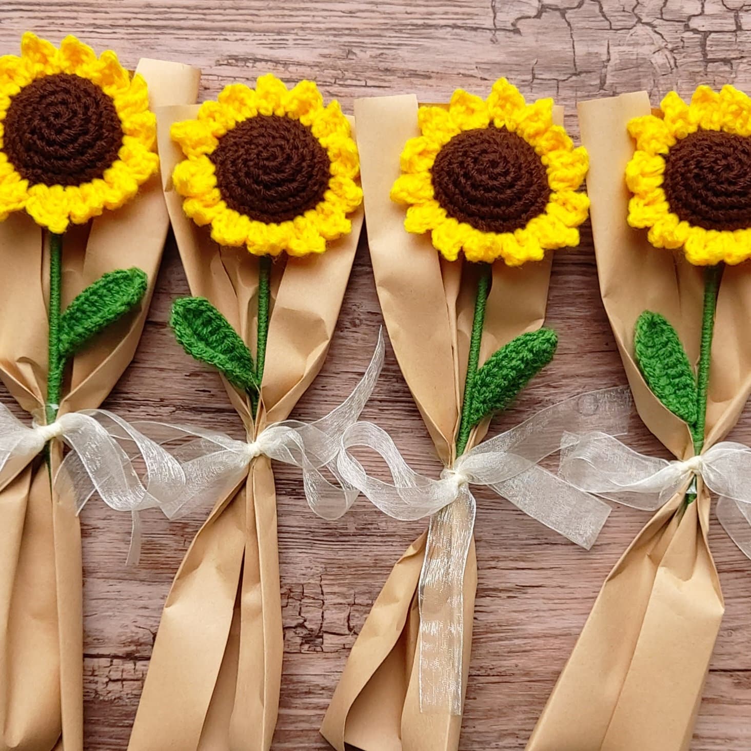 Our crochet sunflowers have the option to wrap them into bouquets, making them perfect crochet flowers, crochet bouquets, knitted sunflowers, crochet bouquets, knitted flowers, knitted bouquets, handmade flowers, crochet plants, mailbox flowers, fabric flowers, or artificial flowers. They are perfect for Mother's Day gifts, gifts for mom, gifts for sisters, birthday gifts, graduation gifts, or teacher gifts!