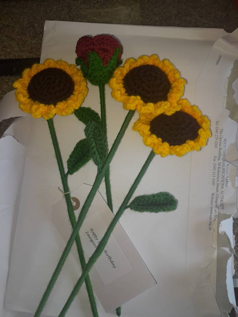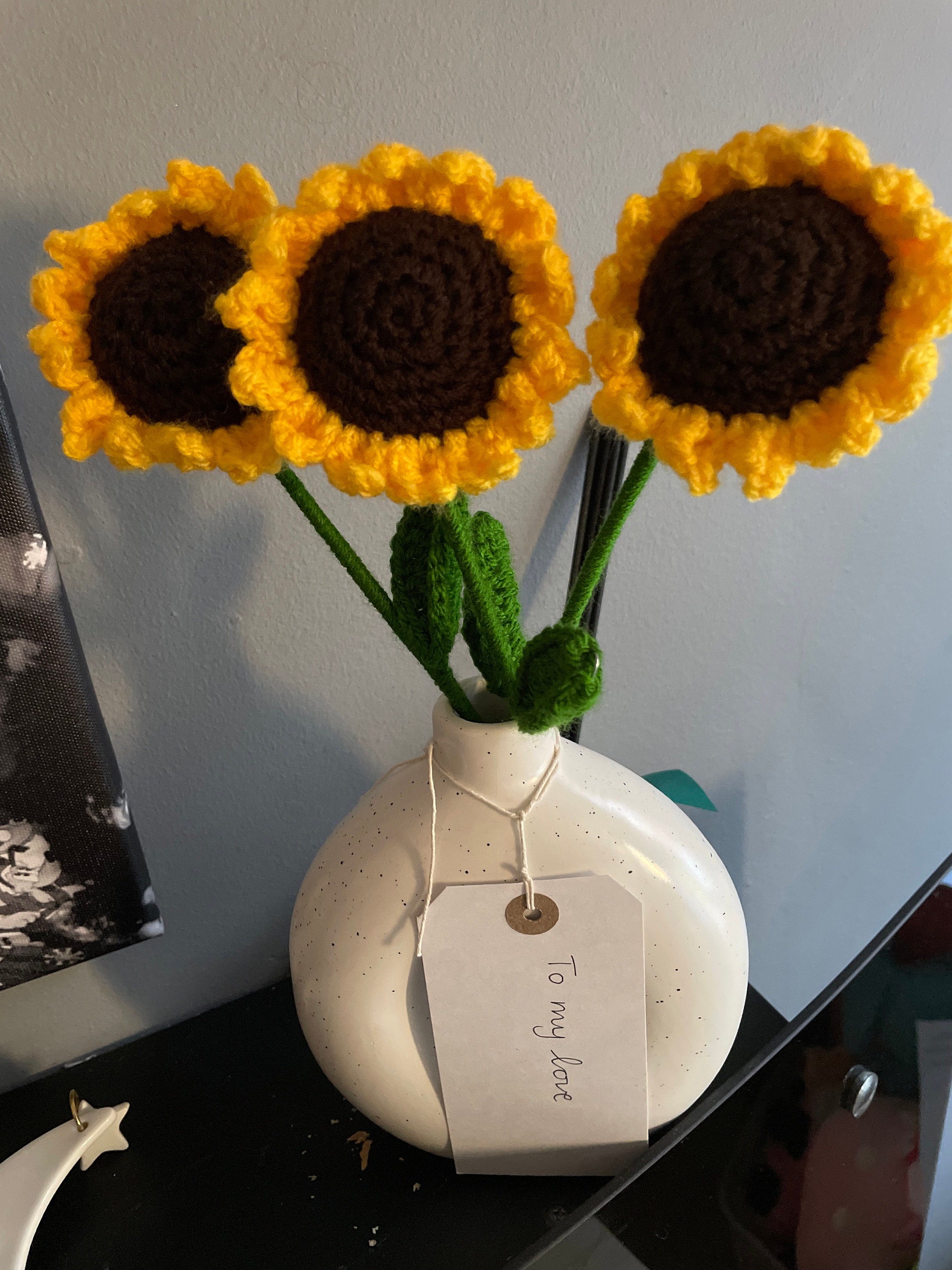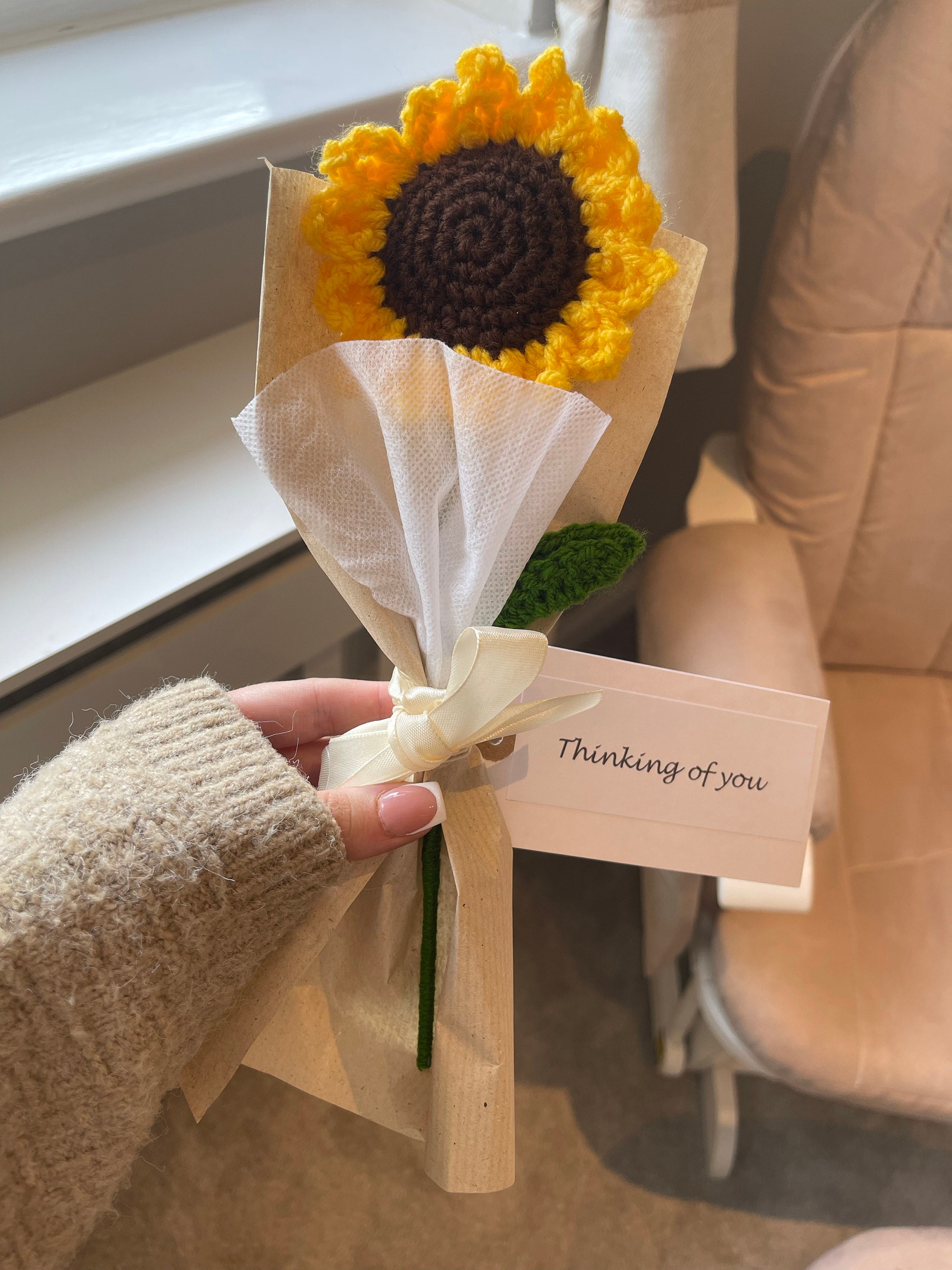Our crochet sunflowers have the option to wrap them into bouquets, making them perfect crochet flowers, crochet bouquets, knitted sunflowers, crochet bouquets, knitted flowers, knitted bouquets, handmade flowers, crochet plants, mailbox flowers, fabric flowers, or artificial flowers. They are perfect for Mother's Day gifts, gifts for mom, gifts for sisters, birthday gifts, graduation gifts, or teacher gifts!