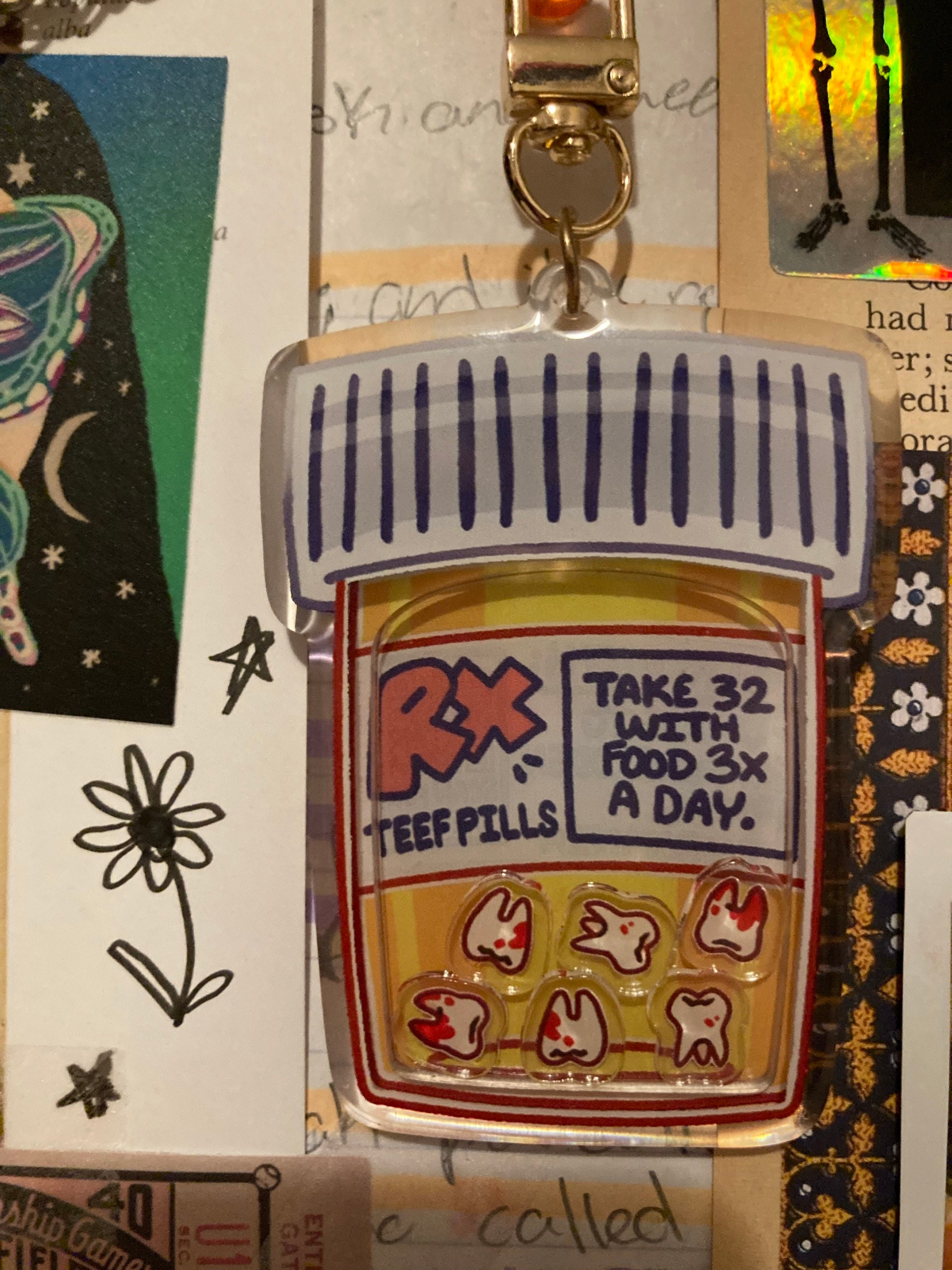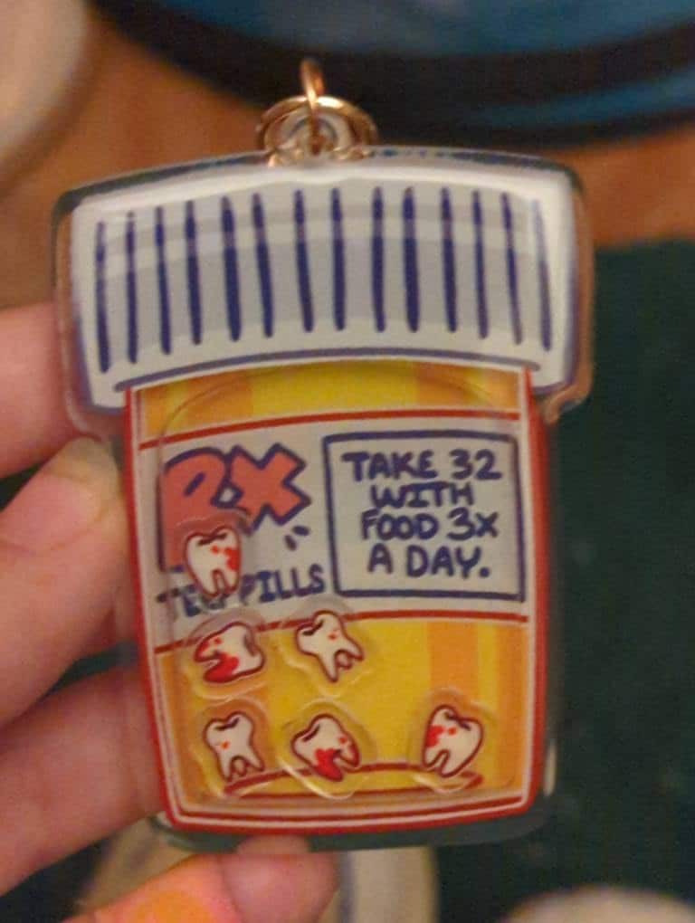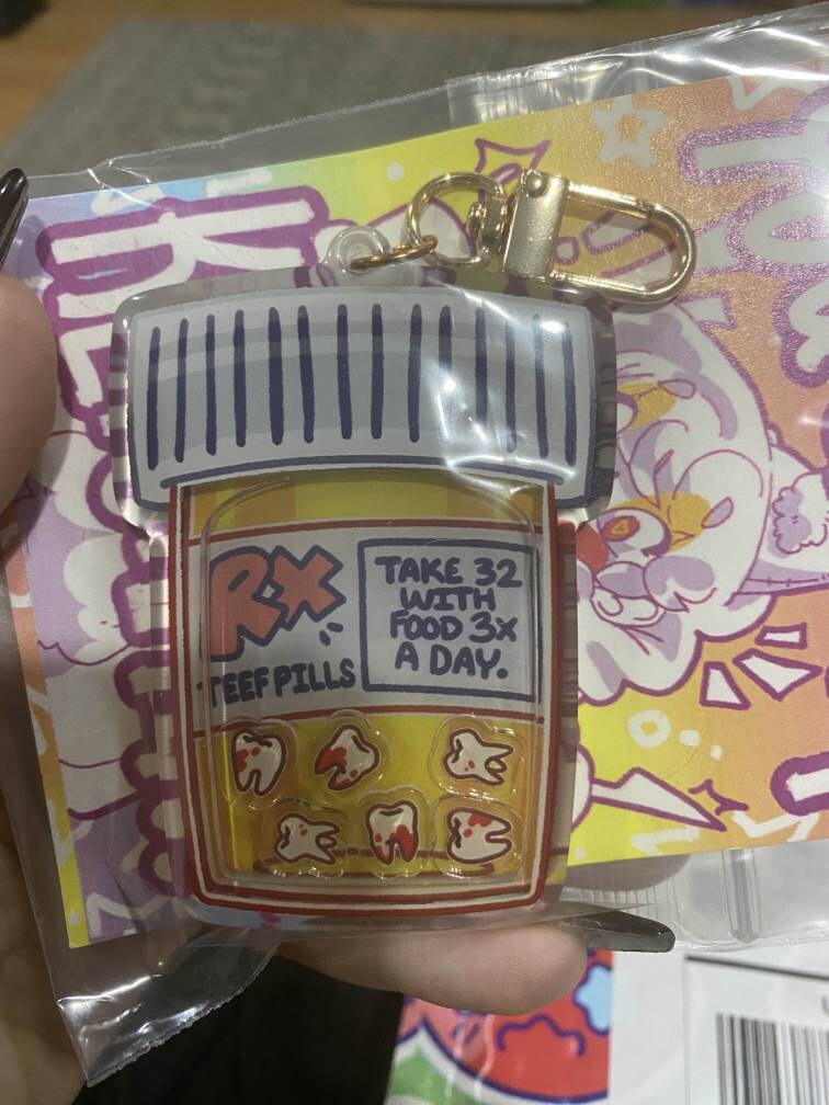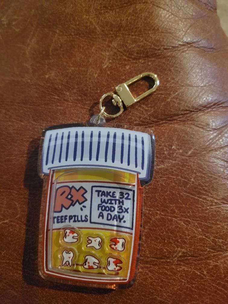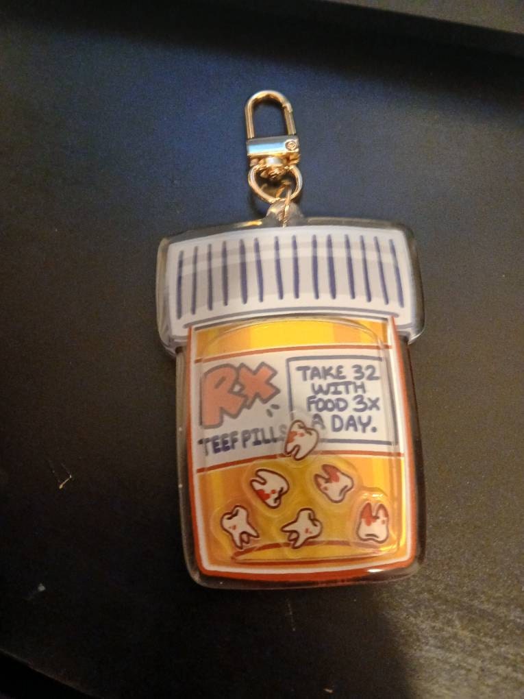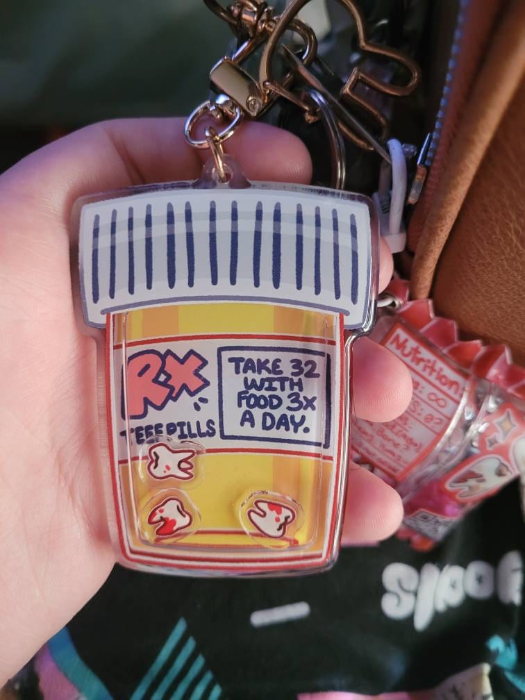 ♡ Be sure to get your daily dose of teeth with this teeth pills shaker keychain!