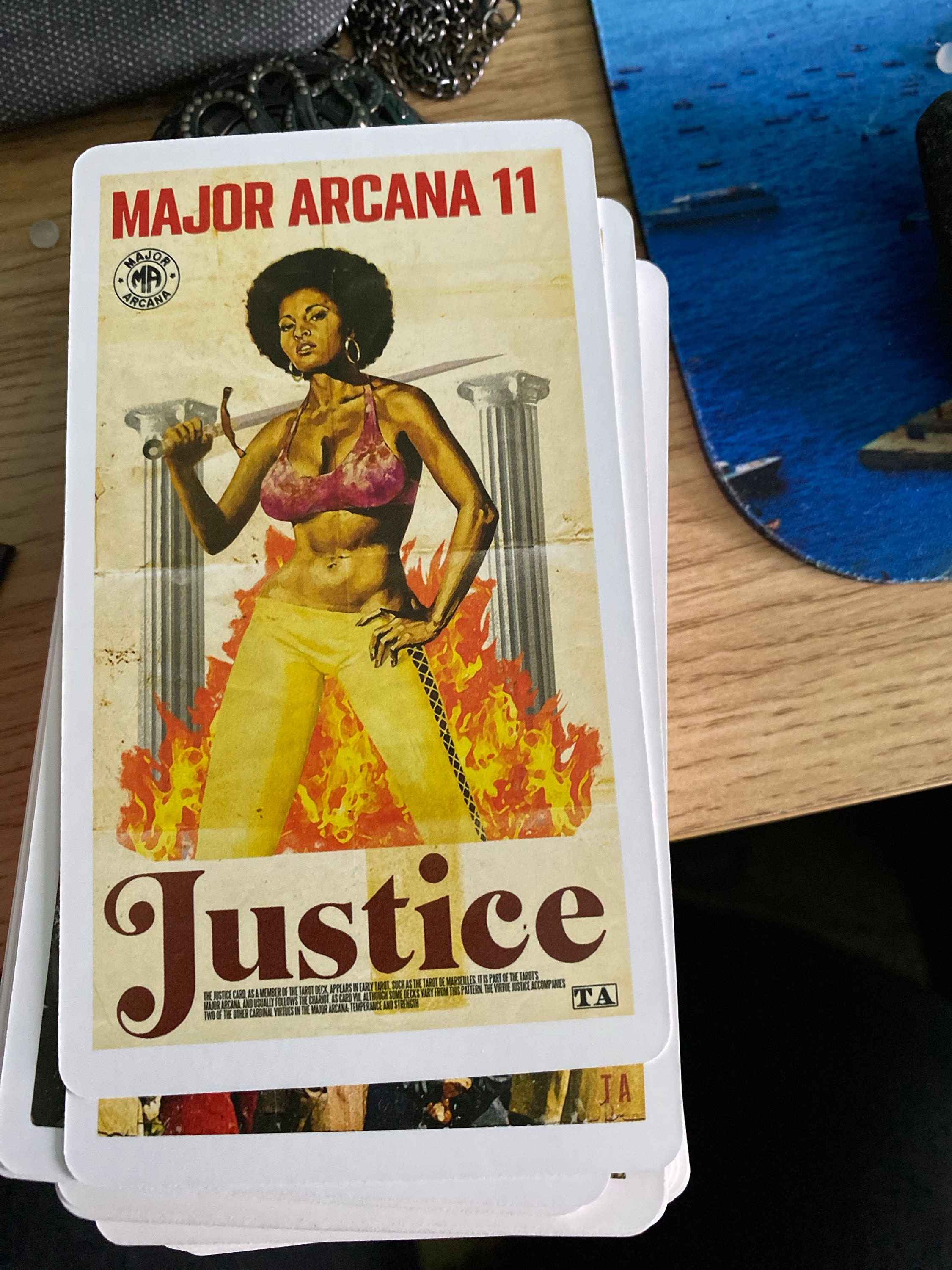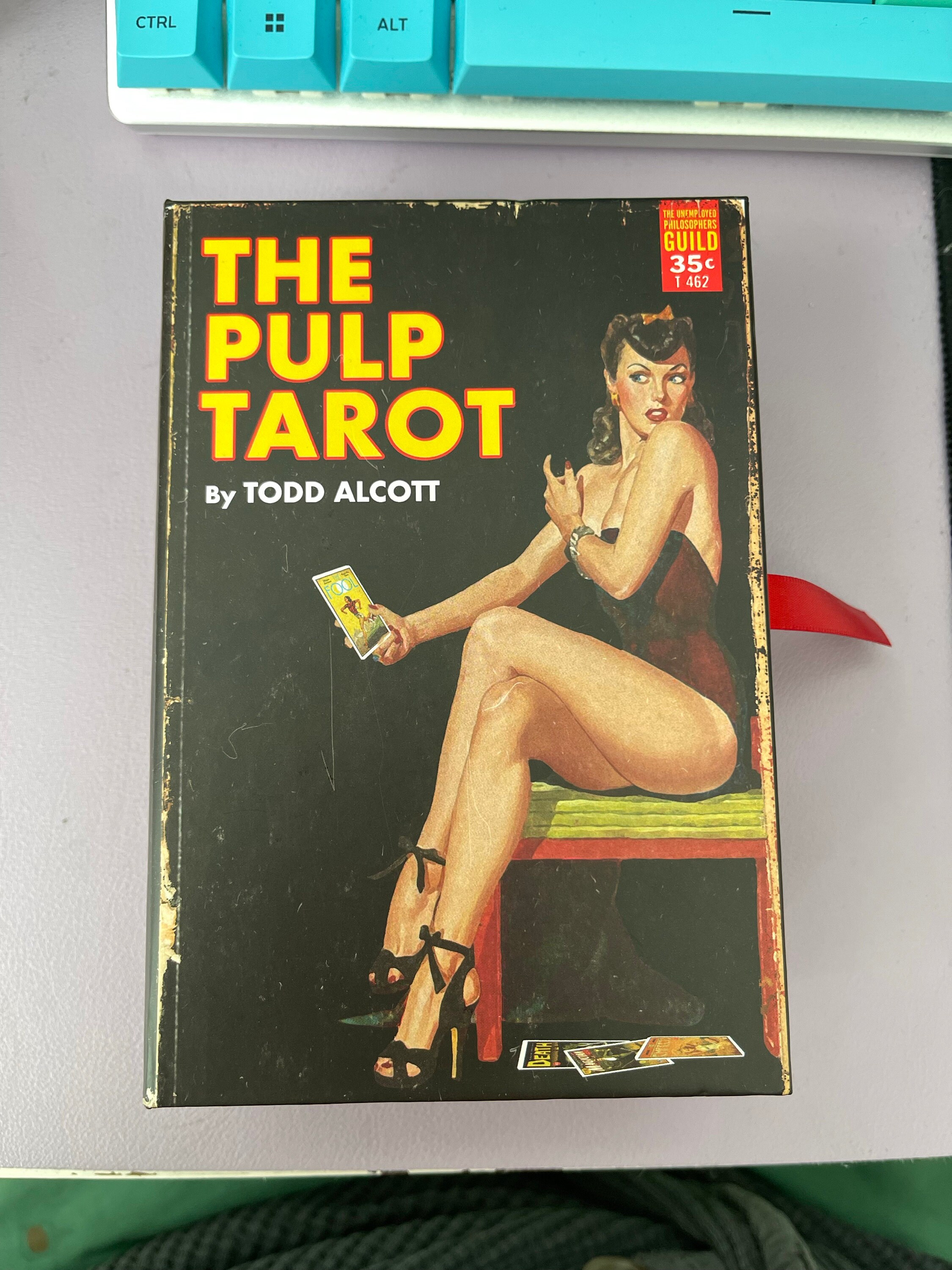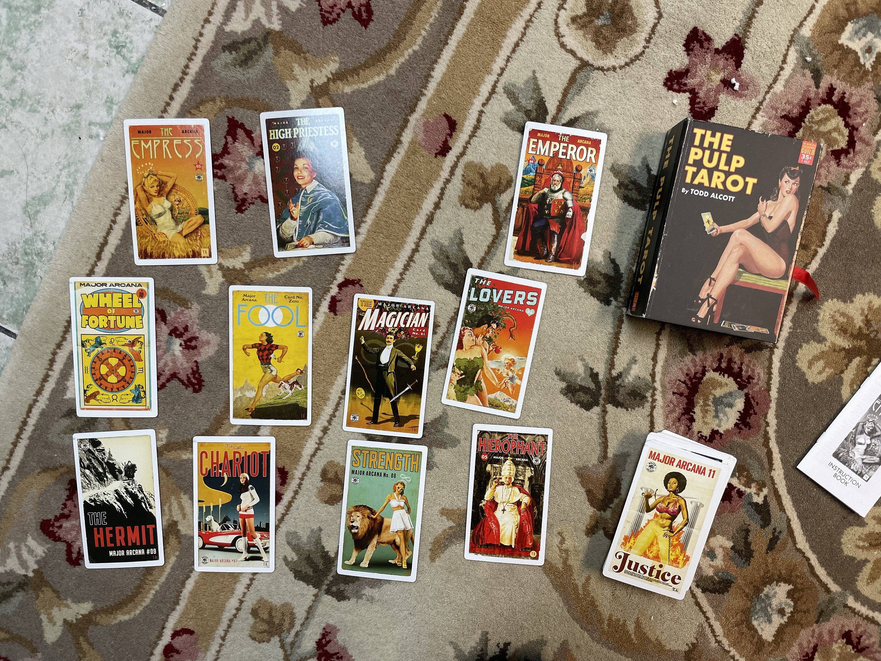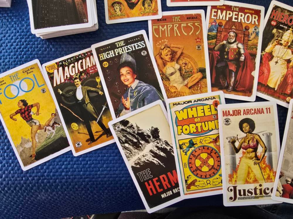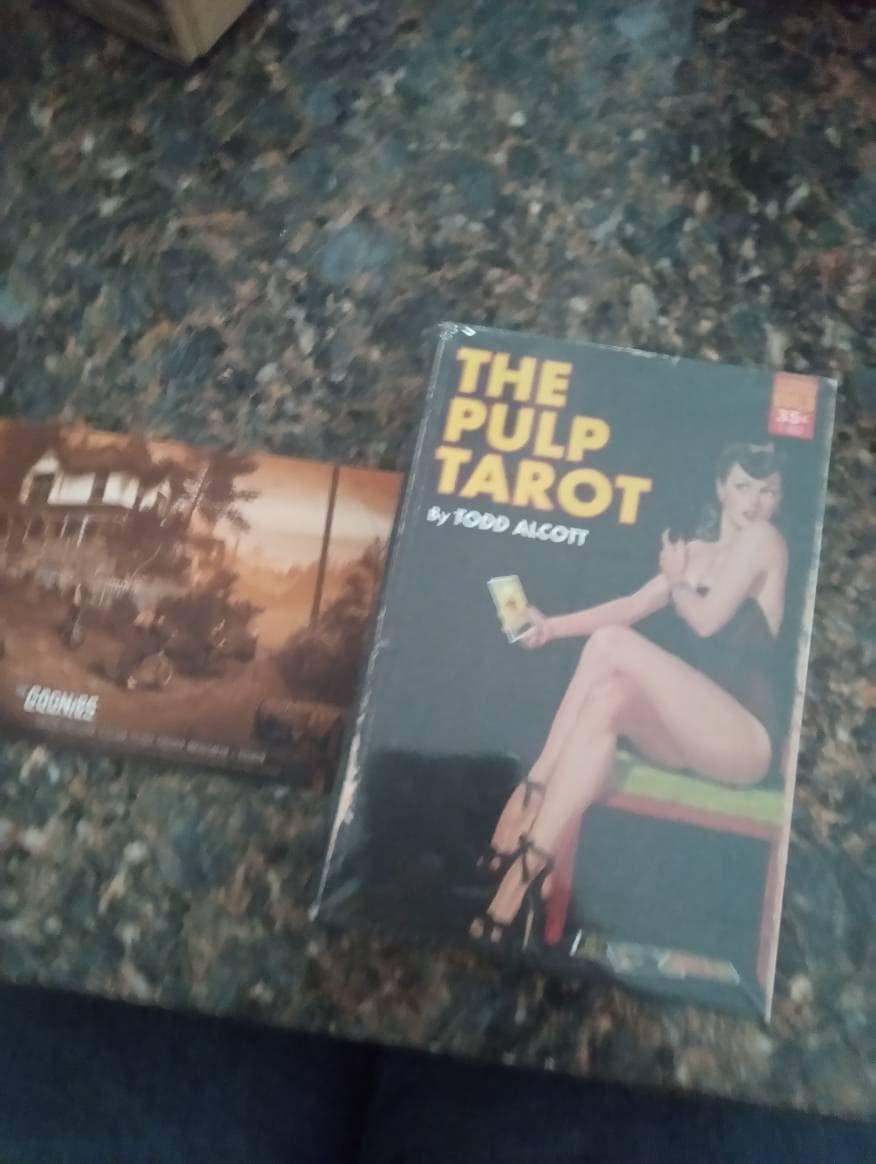 This project has been a very long time aborning. I've been interested in the Tarot as both an oracle and as a piece of design for decades. Back in the 1980s, I started to design a new deck, painting huge new images based on the artistic trends of the day. Soon, the enormity of the task overwhelmed me and I abandoned it. More recently, my visual art has been centered around creating new work based on midcentury designs, incorporating and manipulating existing images from 20th-century pop culture with an emphasis on the startling, dynamic paintings of classic pulp fiction covers. The Pulp Tarot expands upon that work, taking 70 years of pop-culture ephemera and putting it into a Photoshop Cuisinart to create a new Tarot deck that approaches the classic images of the Rider-Waite-Smith deck from the point of view of this modern cultural blender. Inspiration for the cards is drawn from everything from late 19th-century dime novels to 1970s exploitation movie posters, creating a rich, complex conversation between the arcane symbols of the Tarot and the sensationalist world of the pulps. This is a COMPLETE DECK, all 78 cards, plus a booklet describing my choices and process.