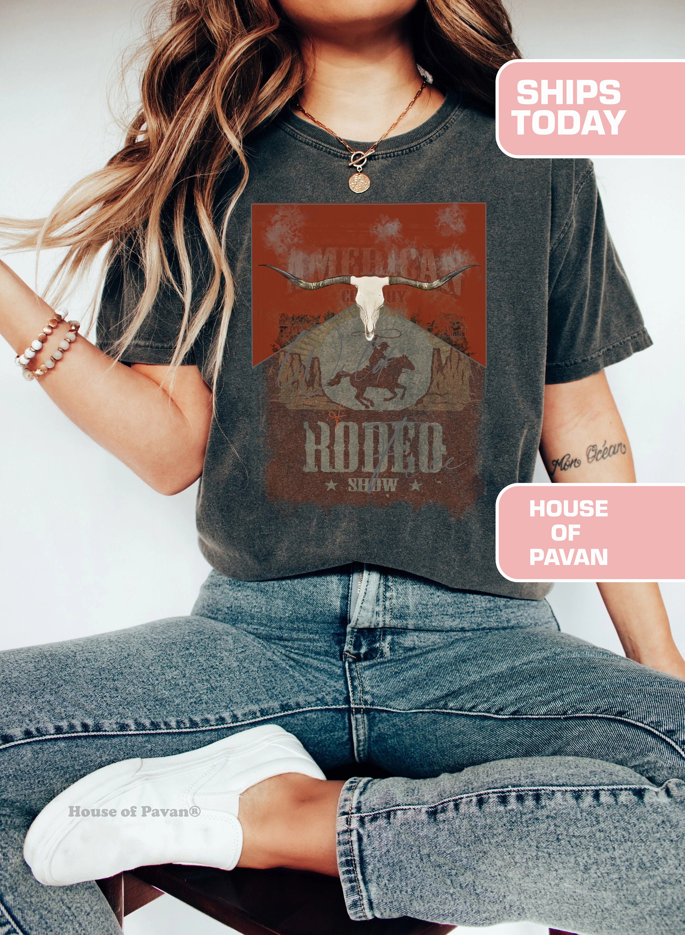 Western American Rodeo Shirt, Vintage Style T-Shirt, Western Graphic T-Shirt, Vintage T-Shirt, Garment Dyed, Boho, Vintage, Garment Dyed, Boho, Oversized, Texas Shirt, Vintage Fall Shirt, Fall Shirt, Desert Shirt, Country Shirt