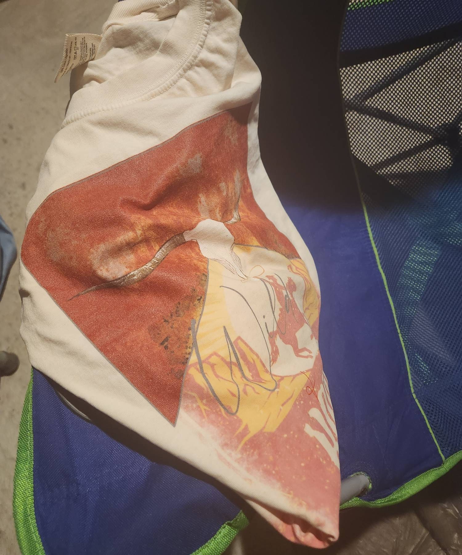 Do not bleach. Do not dry clean. Wash inside out in cold water. Lay flat to dry. Iron inside out. Never iron directly on the graphic.