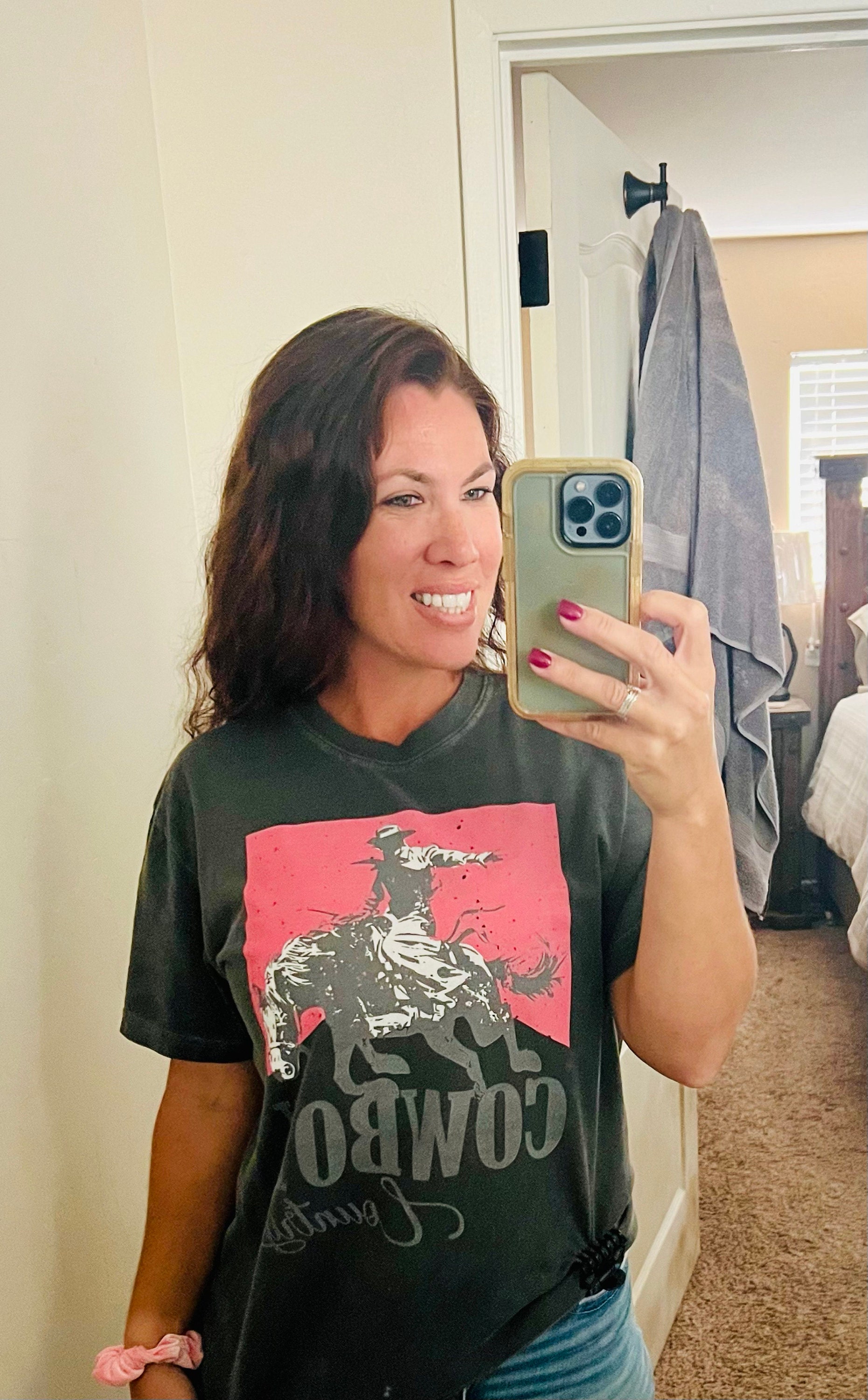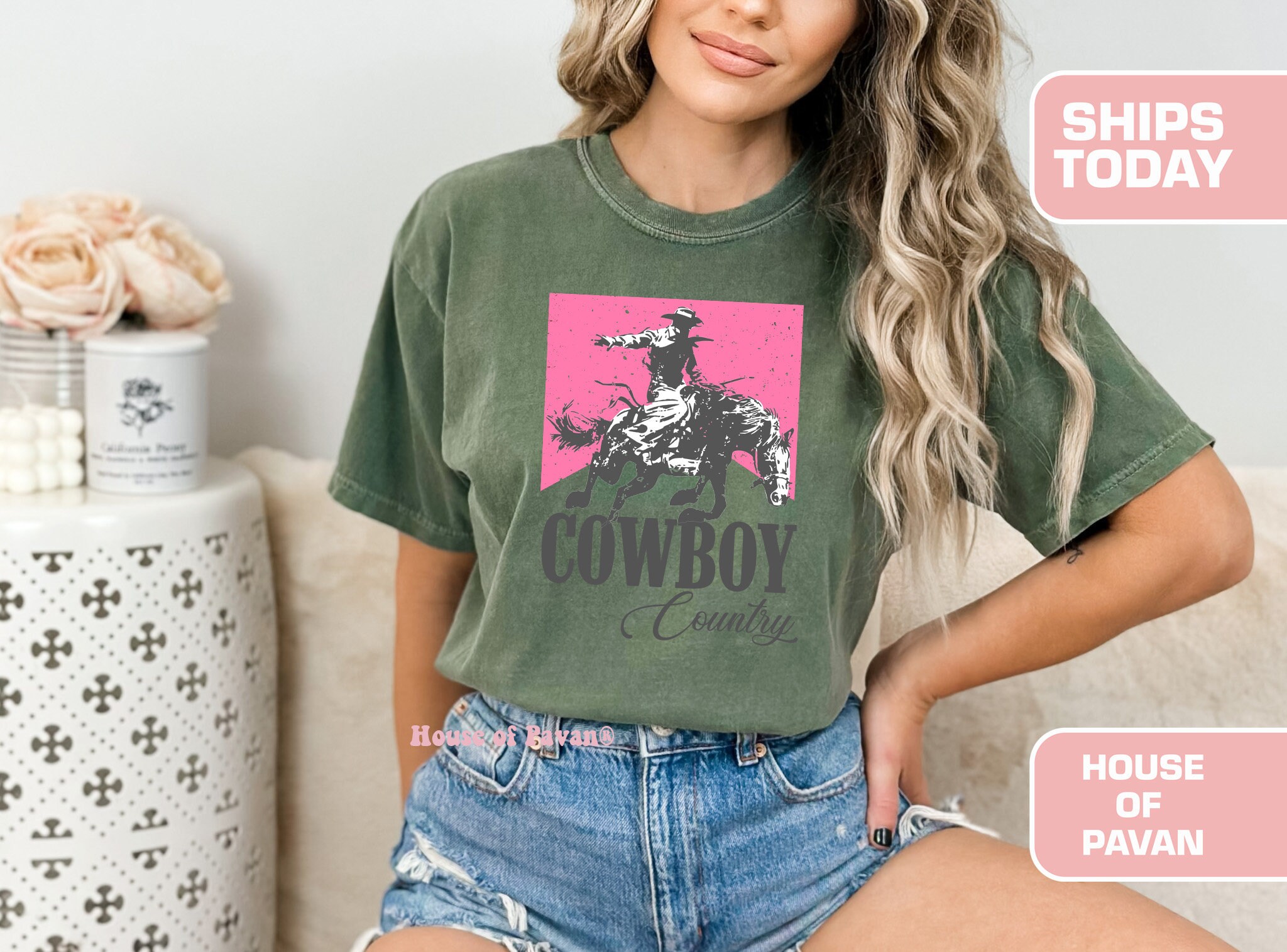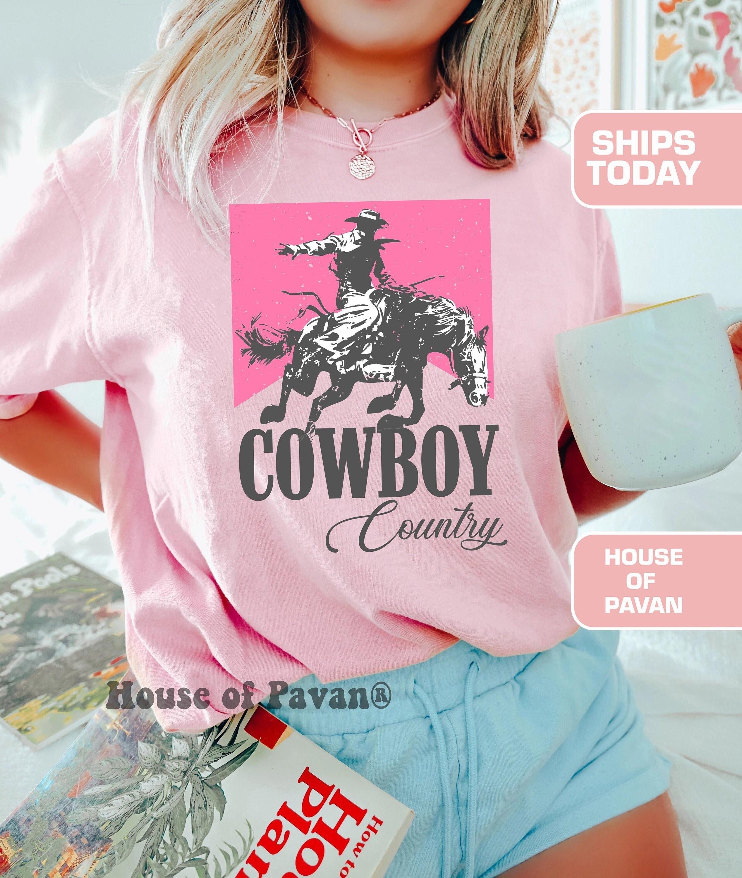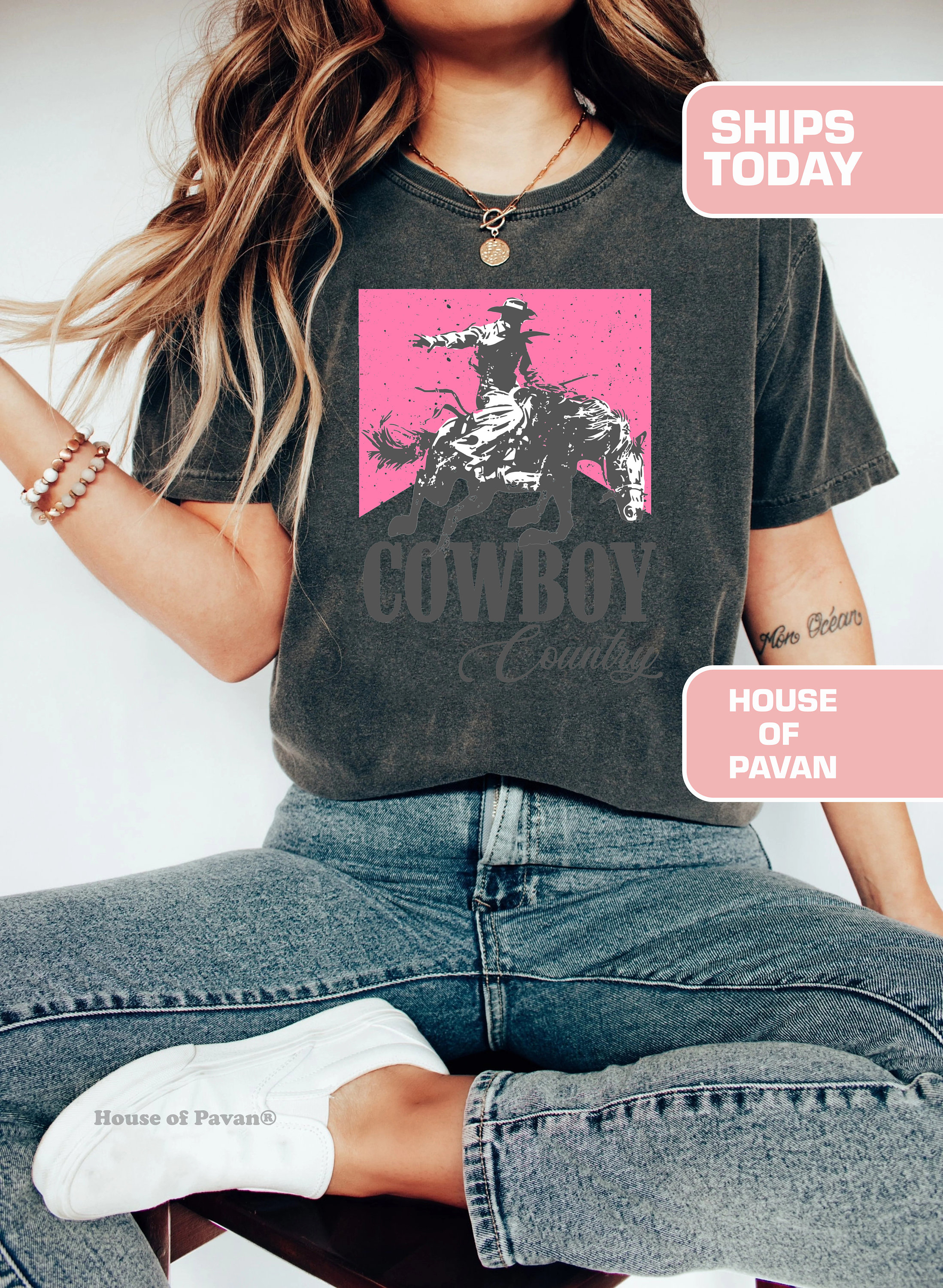 Western Cowboy Country Hot Pink Rodeo Shirt, Vintage Style T-Shirt, Western Graphic T-Shirt, Vintage T-Shirt, Comfort Colors®, Boho, Vintage, Garment Dyed, Boho, Oversized, Texas Shirt, Vintage Fall Shirt, Fall Shirt, Desert Shirt, Country Shirt