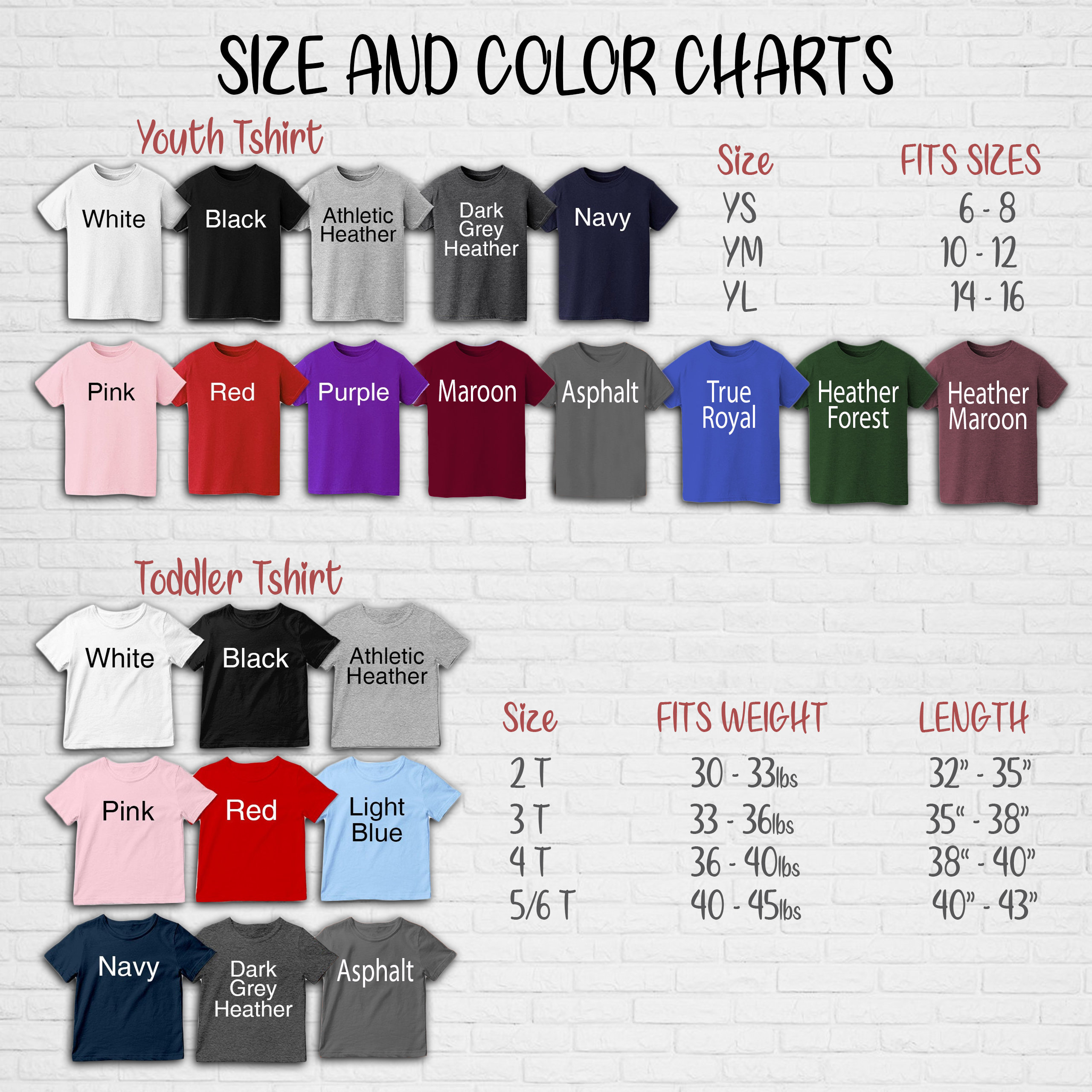 - Please check the color chart for the size and type of t-shirt you want, not every type of t-shirt has every color, the drop down menu will automatically appear on every color, but not every item, so please make sure to check, if you do not check the color chart, the closest item will be sent to you.