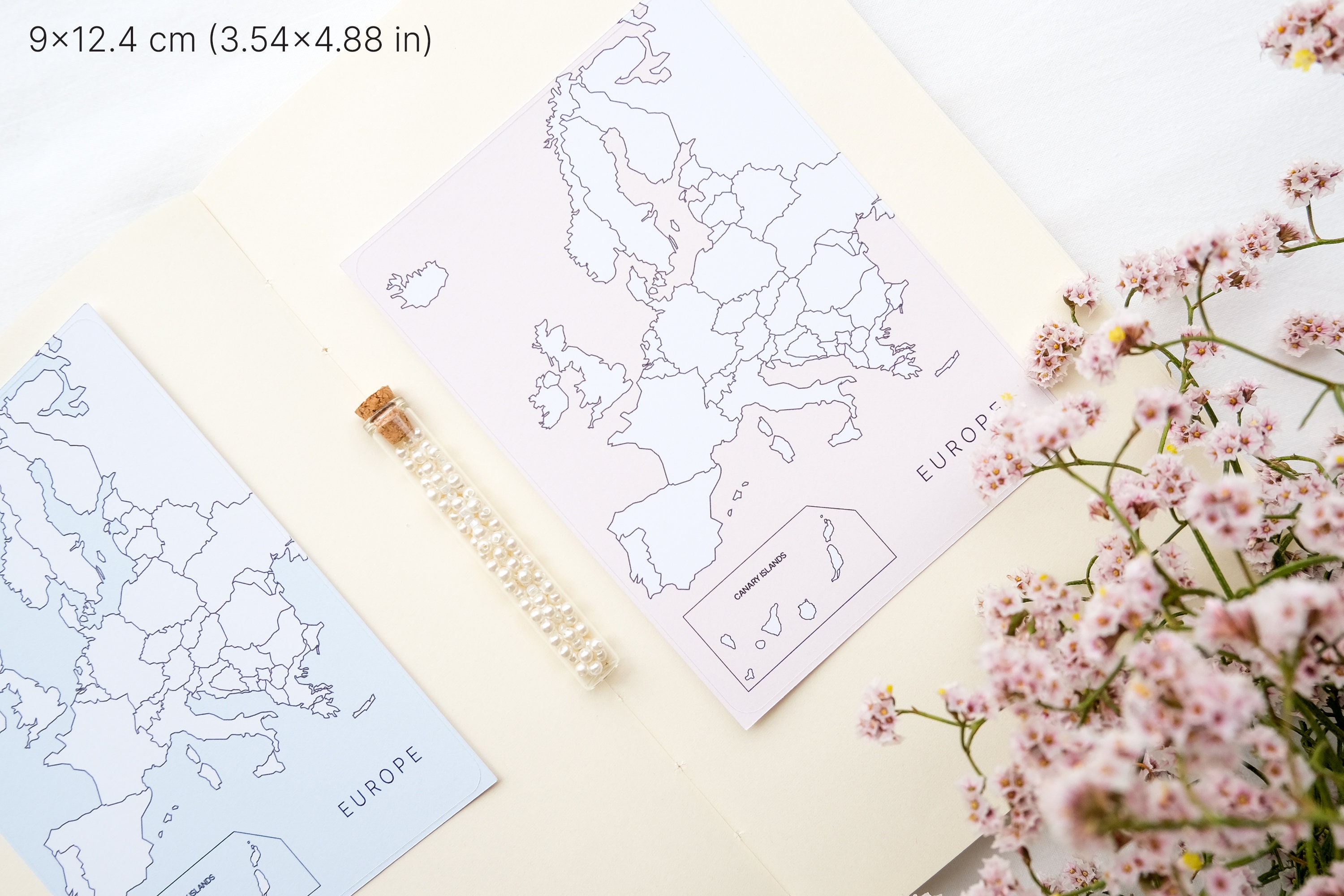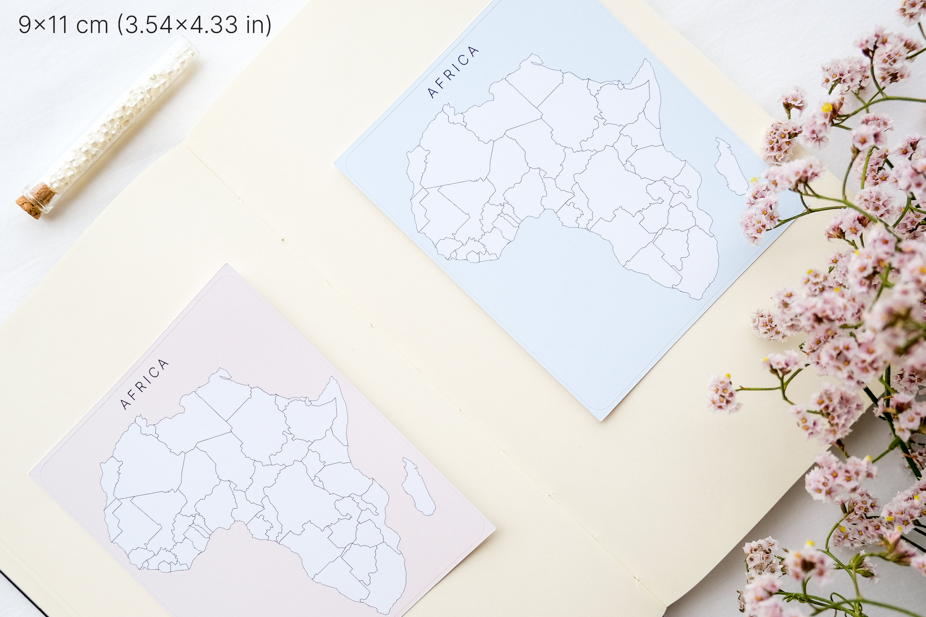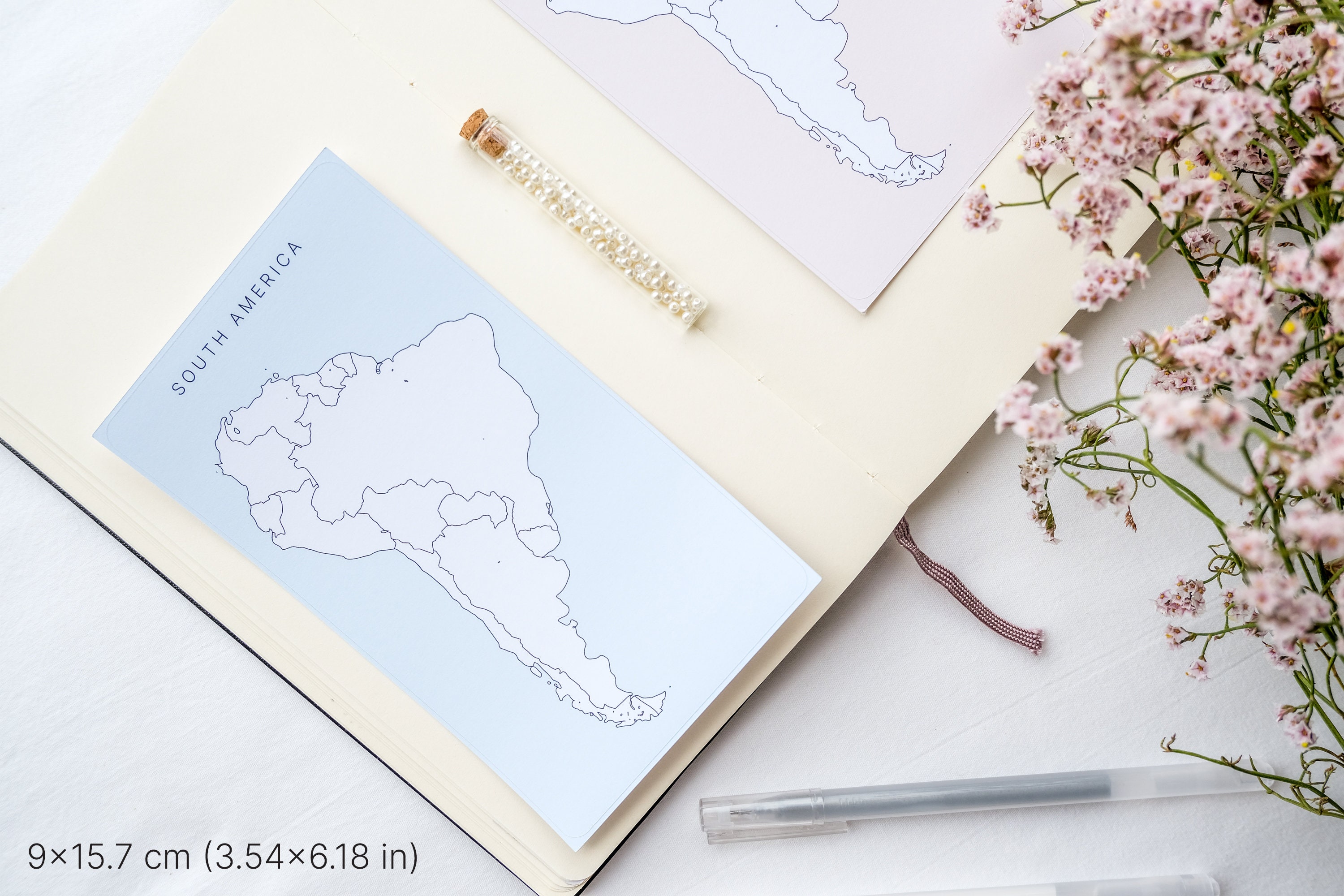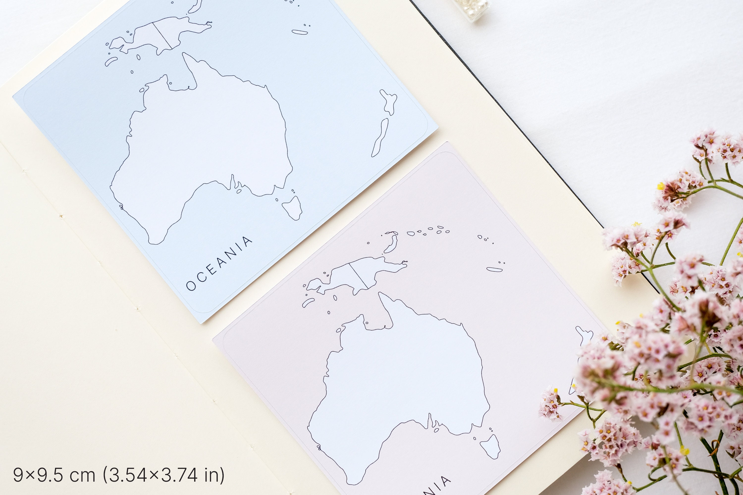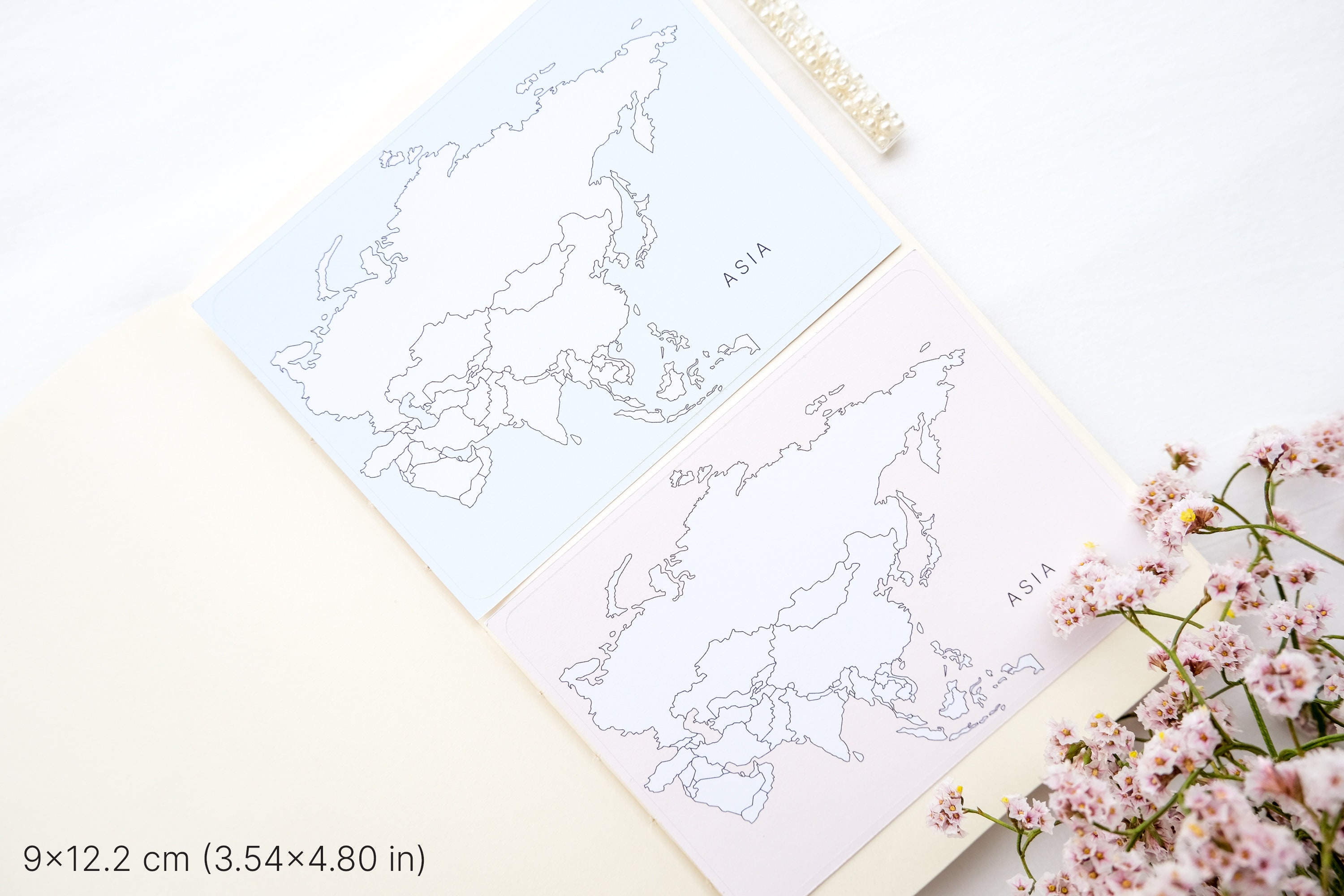 We have stickers with maps of all the world's continents. Orders include stickers for eight continents: World, America, Europe, Asia, Africa, South and North America, and Oceania.